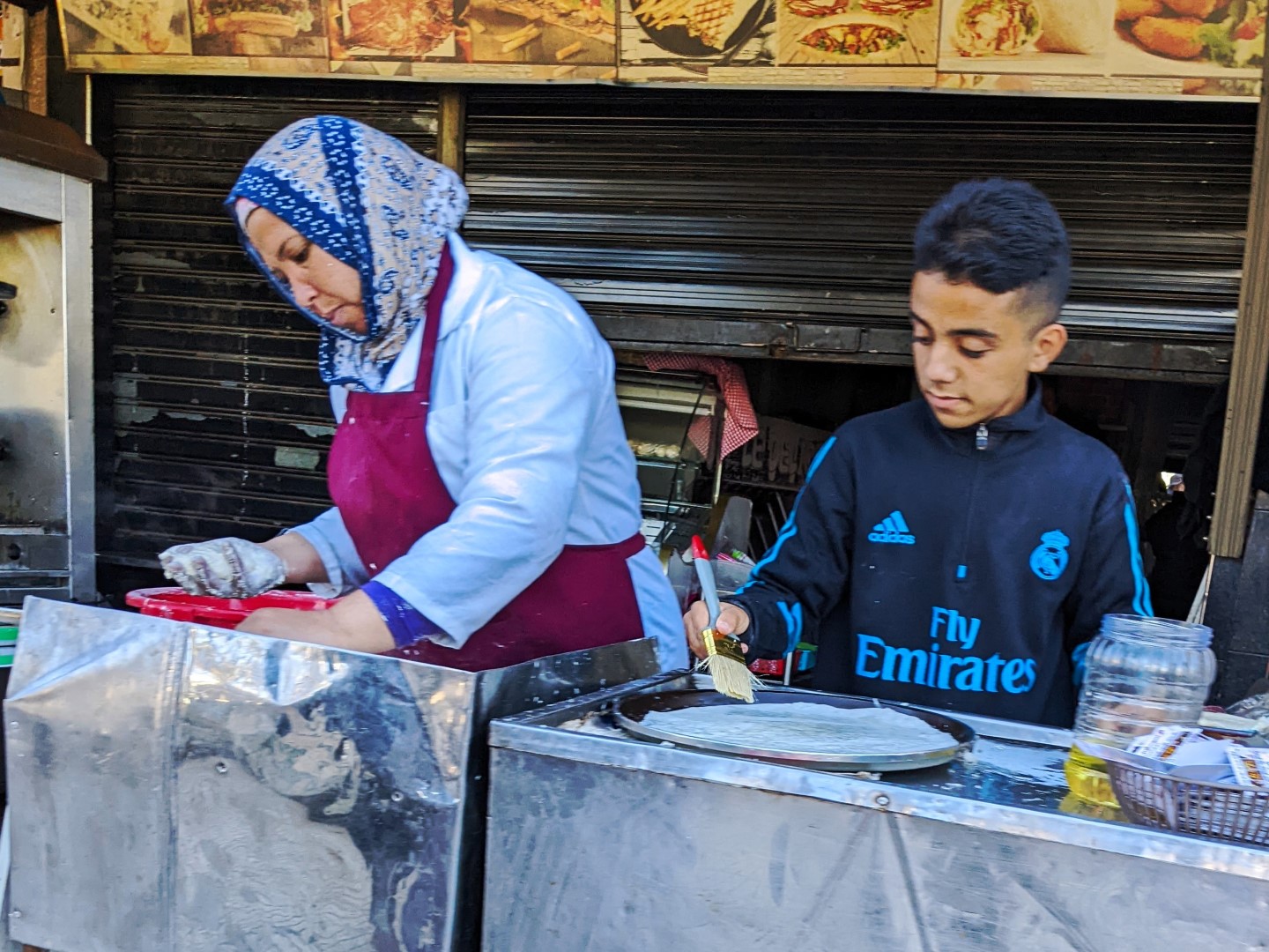 Initially, we thought that being there during Ramadan would be an interesting cultural exposure, but we’re not so sure that it was any more interesting than being there at any other time. The main difference was that many businesses were closed during the day, which was more inconvenient than interesting. It was a colorful sight, however, to see the streets come to life at about 5:00, when shops and restaurants started opening, crowds started gathering, and people on the sidewalks started preparing feasts to pounce on as soon as the signal from the mosques gave consent to consume. In some cafes and diners, male patrons would be just sitting in the chairs, staking out their spots with anticipation, sometimes an hour or two in advance.