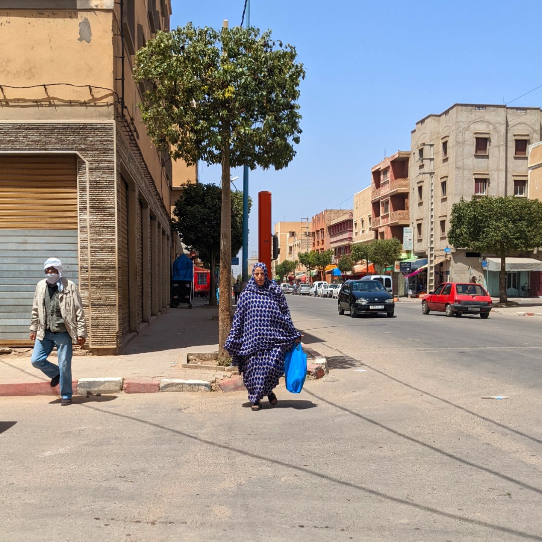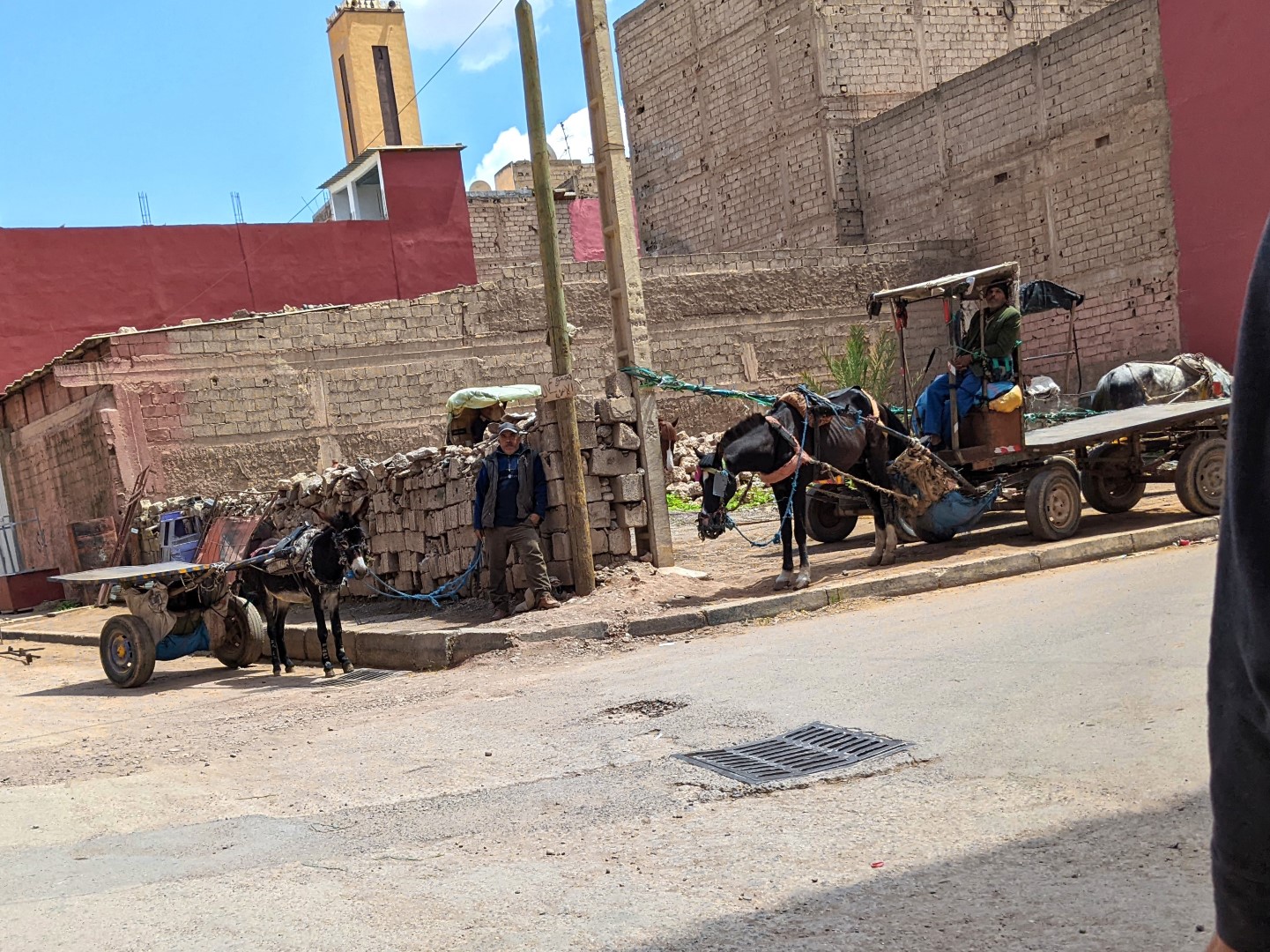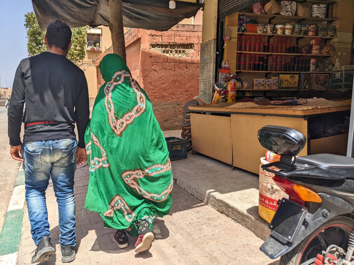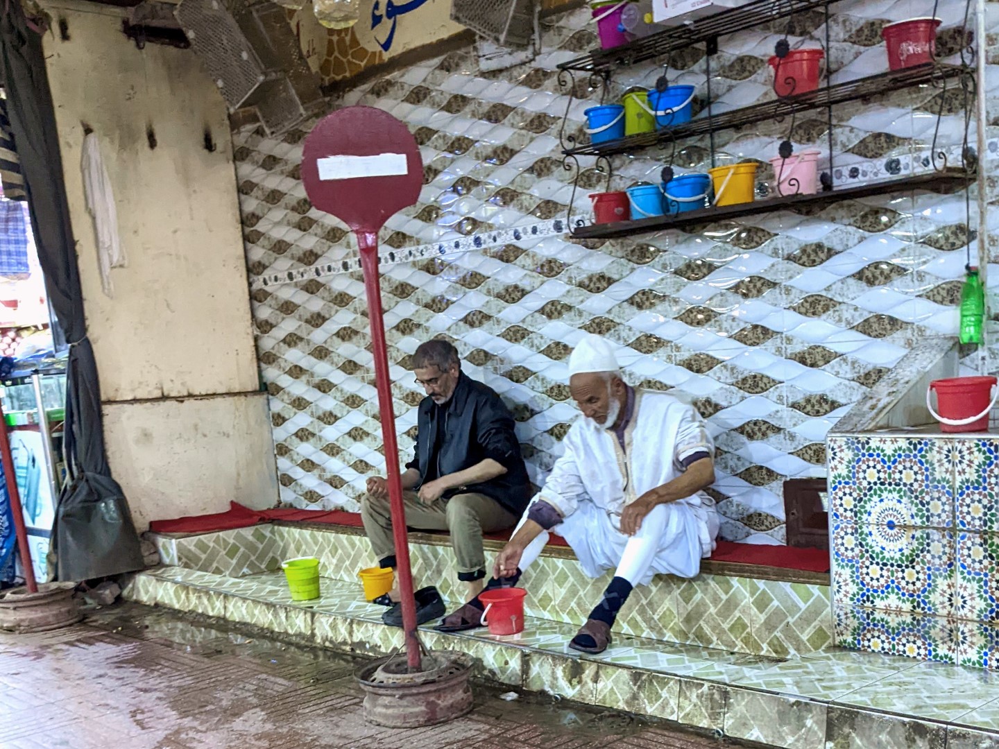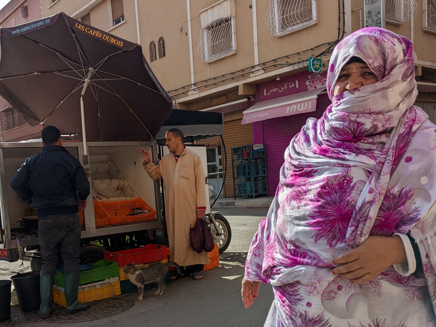 Almost nobody we saw in this town wore a COVID mask or used hand sanitizer. Since we were fully vaccinated and boosted, we usually didn’t wear a mask either (we did try to practice safe distancing, wore masks when the situation called for it and we used sanitizer when we could get our hands on it). From what we gather many Moroccans, at least in Ouled Teima, are still unvaccinated. One individual we talked to even asked us whether we “believe in” the virus – echoing the attitude, all too common in the States, that scientific and statistical fact are subject to verification by comparison to personal beliefs.