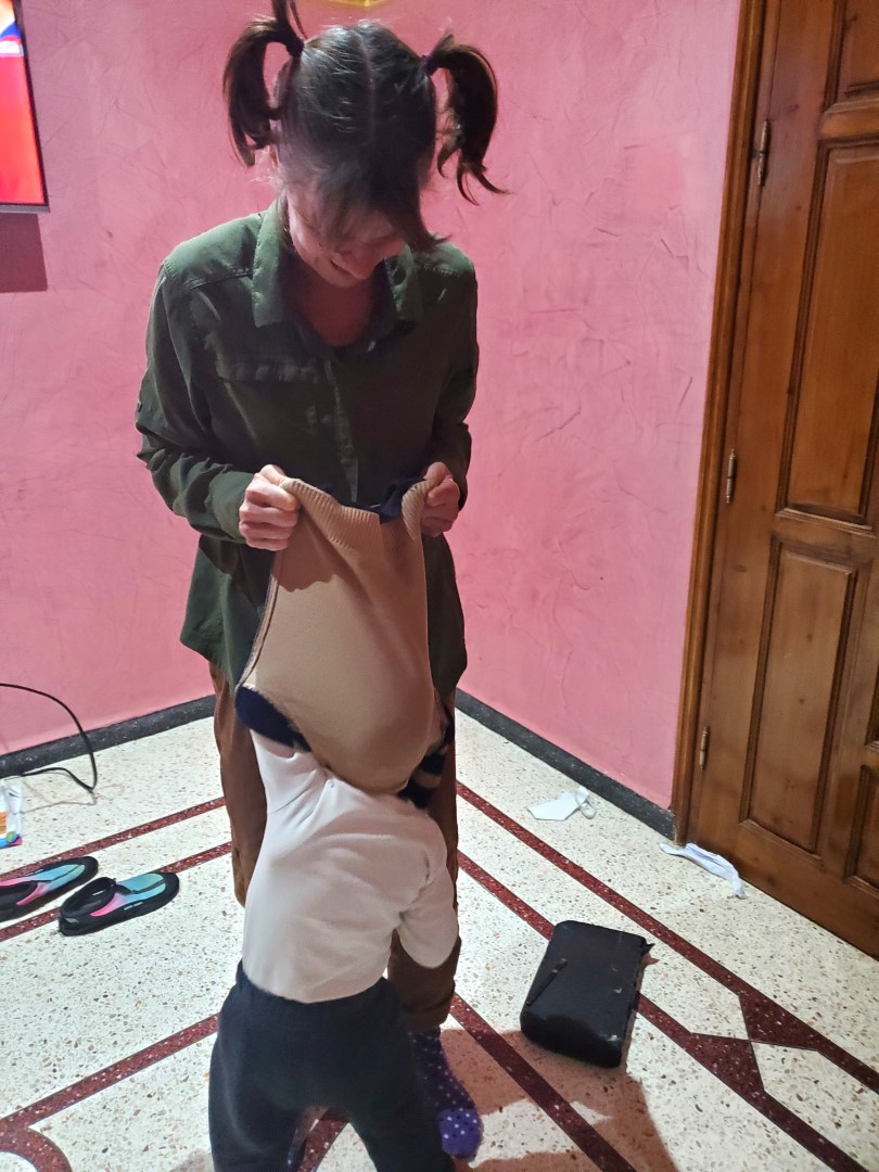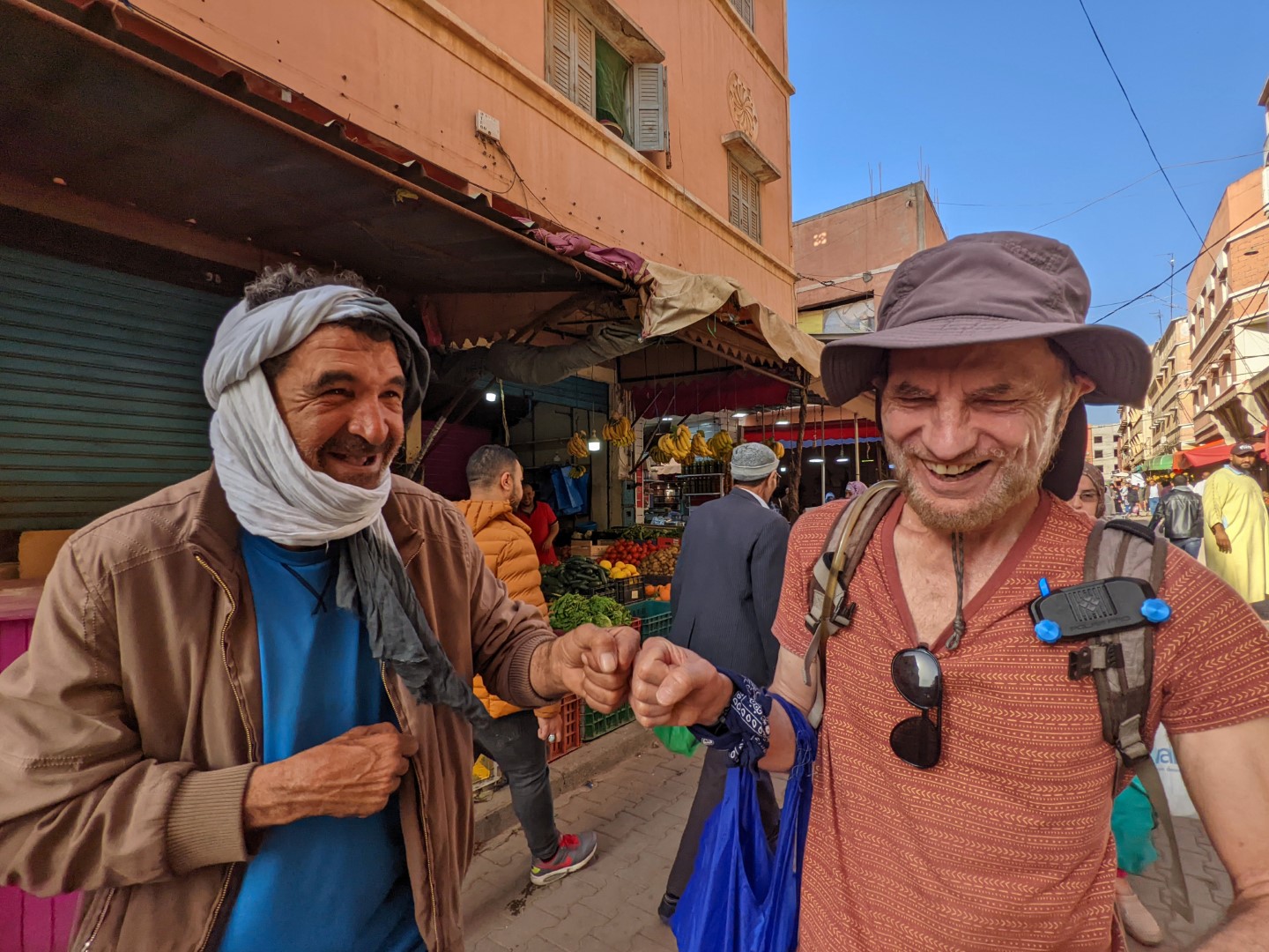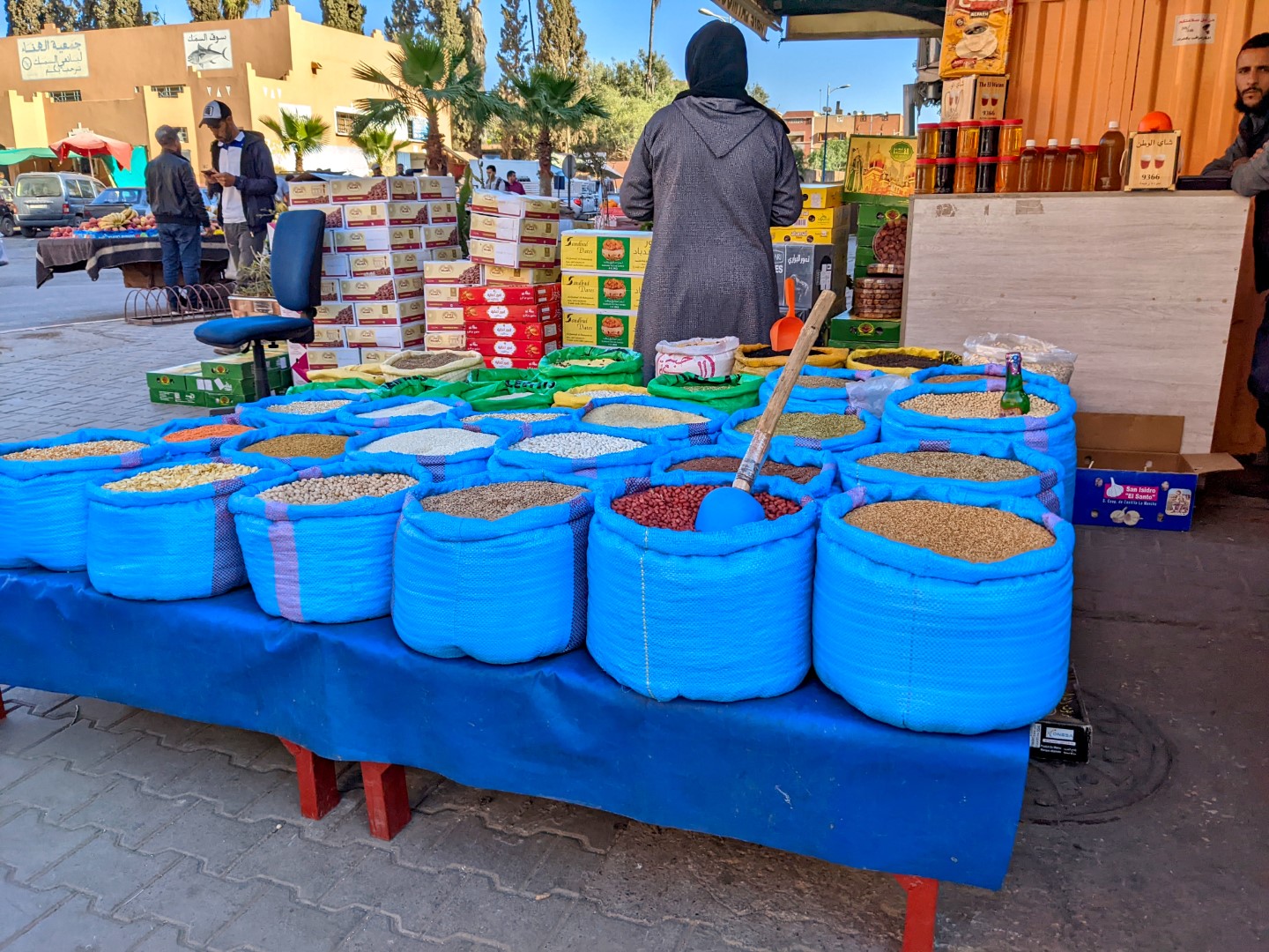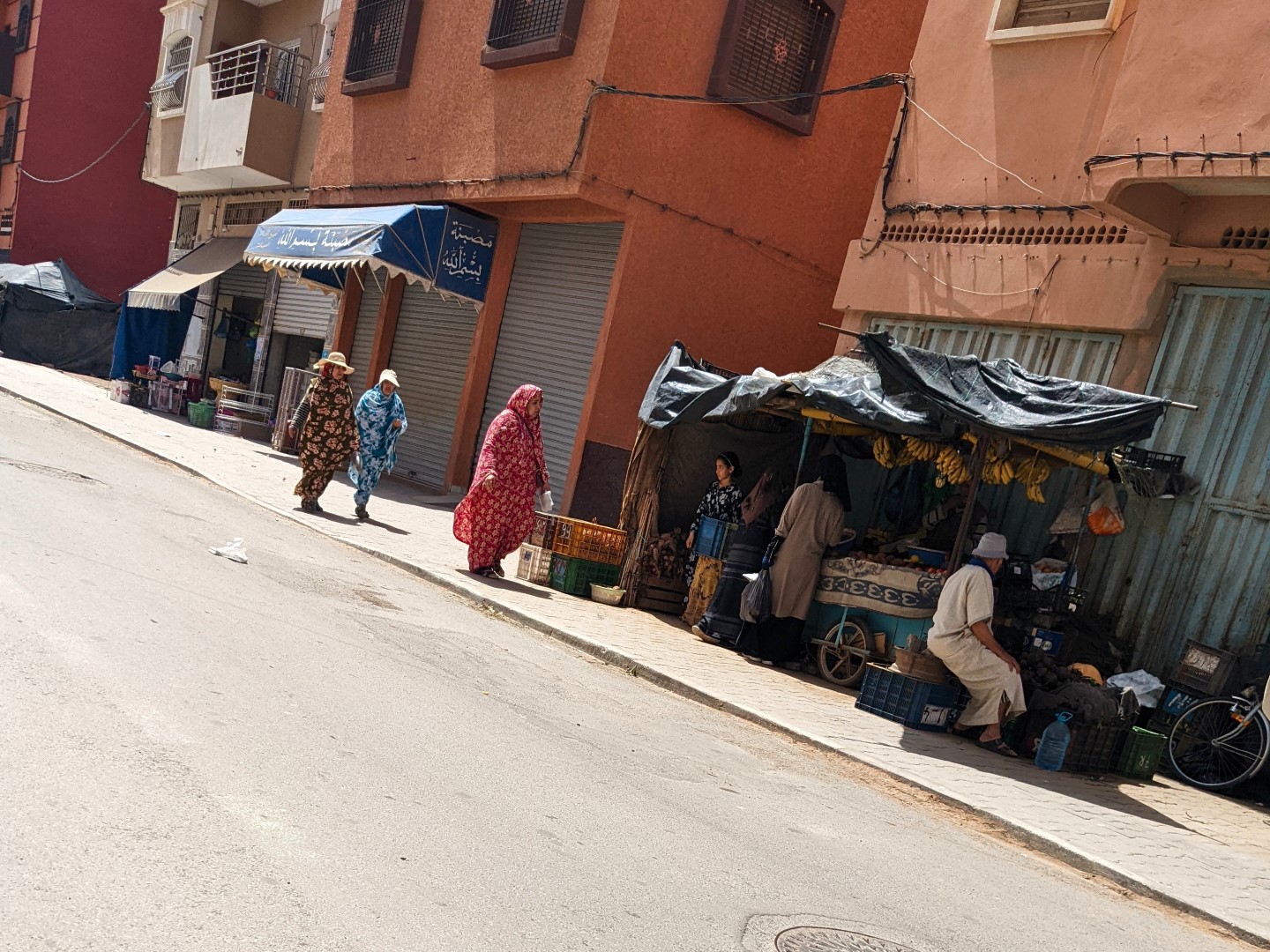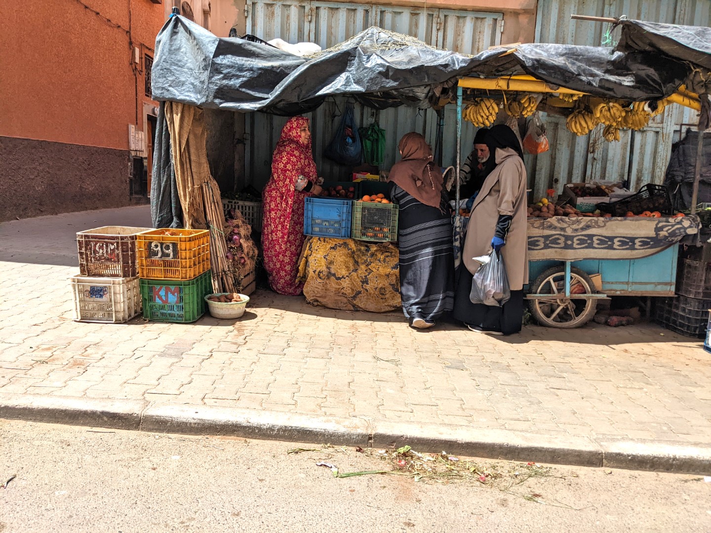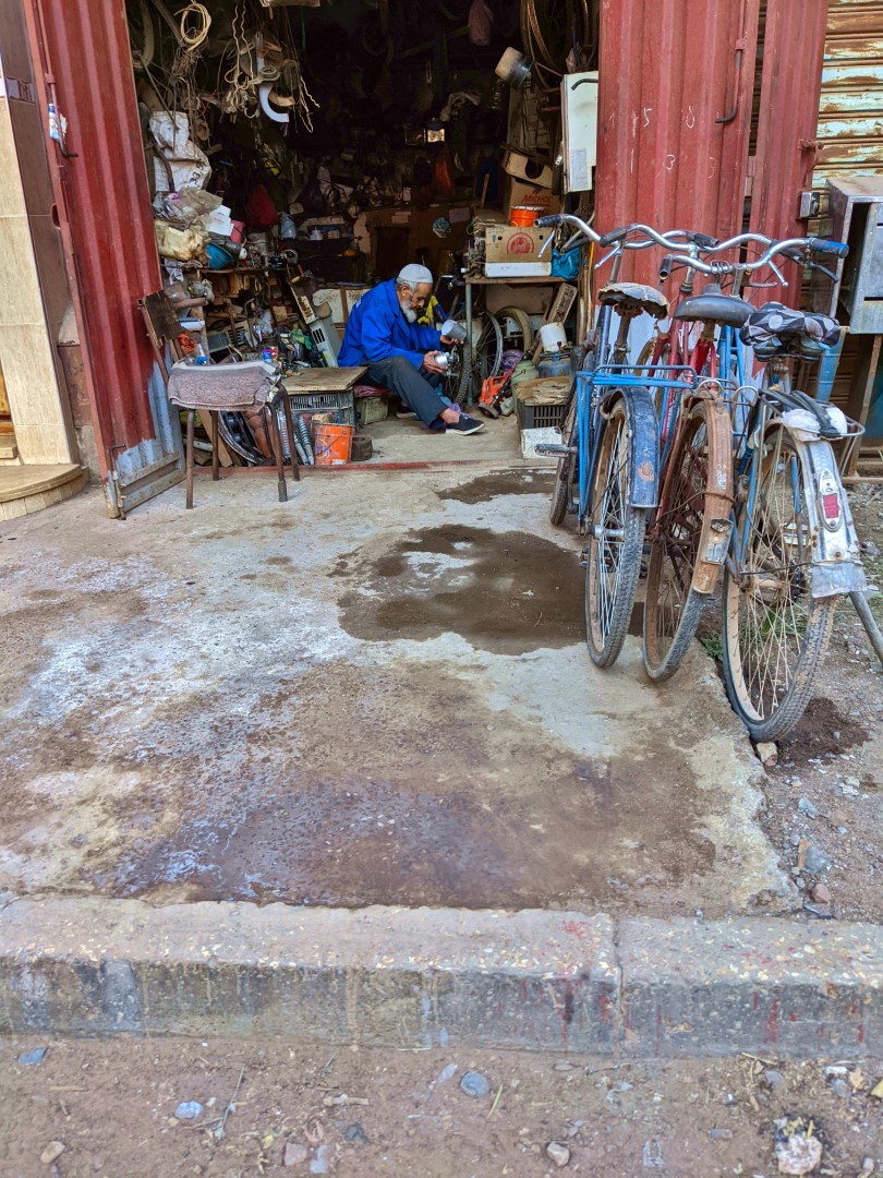 Almost nobody we saw in this town wore a COVID mask or used hand sanitizer. Since we were fully vaccinated and boosted, we usually didn’t wear a mask either (we did try to practice safe distancing, wore masks when the situation called for it and we used sanitizer when we could get our hands on it). From what we gather many Moroccans, at least in Ouled Teima, are still unvaccinated. One individual we talked to even asked us whether we “believe in” the virus – echoing the attitude, all too common in the States, that scientific and statistical fact are subject to verification by comparison to personal beliefs.