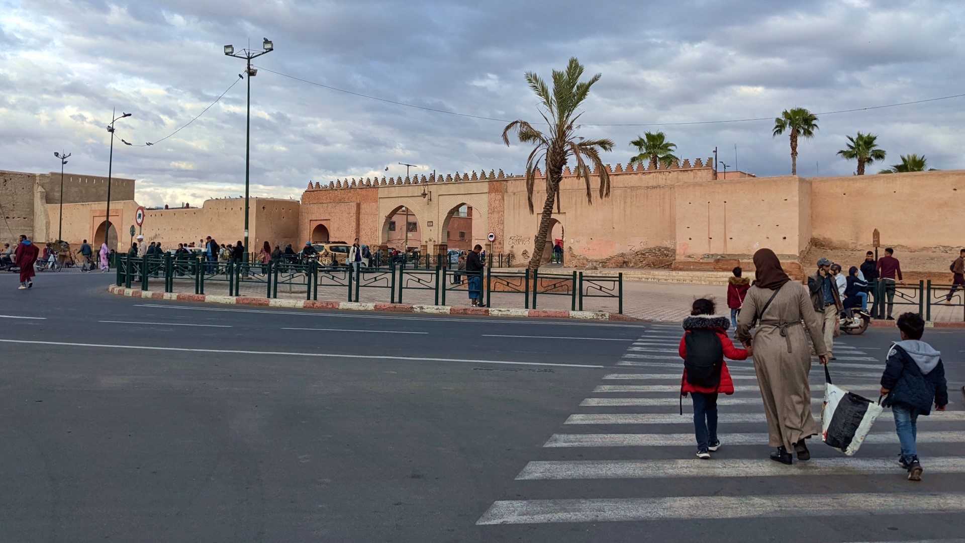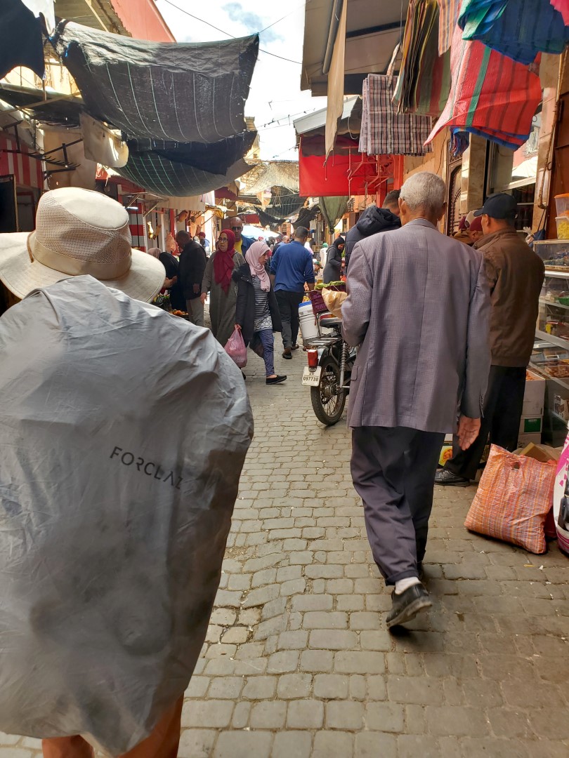 When we arrived, we had only about a mile to walk to our lodgings for the next three nights. Our trek took us through the modern part of the city, complete with McDonald’s, KFC and an affiliate of Bank Of America – since the latter is one of our banks, we stopped and withdrew a few dirhams without having to pay a hefty ATM fee.