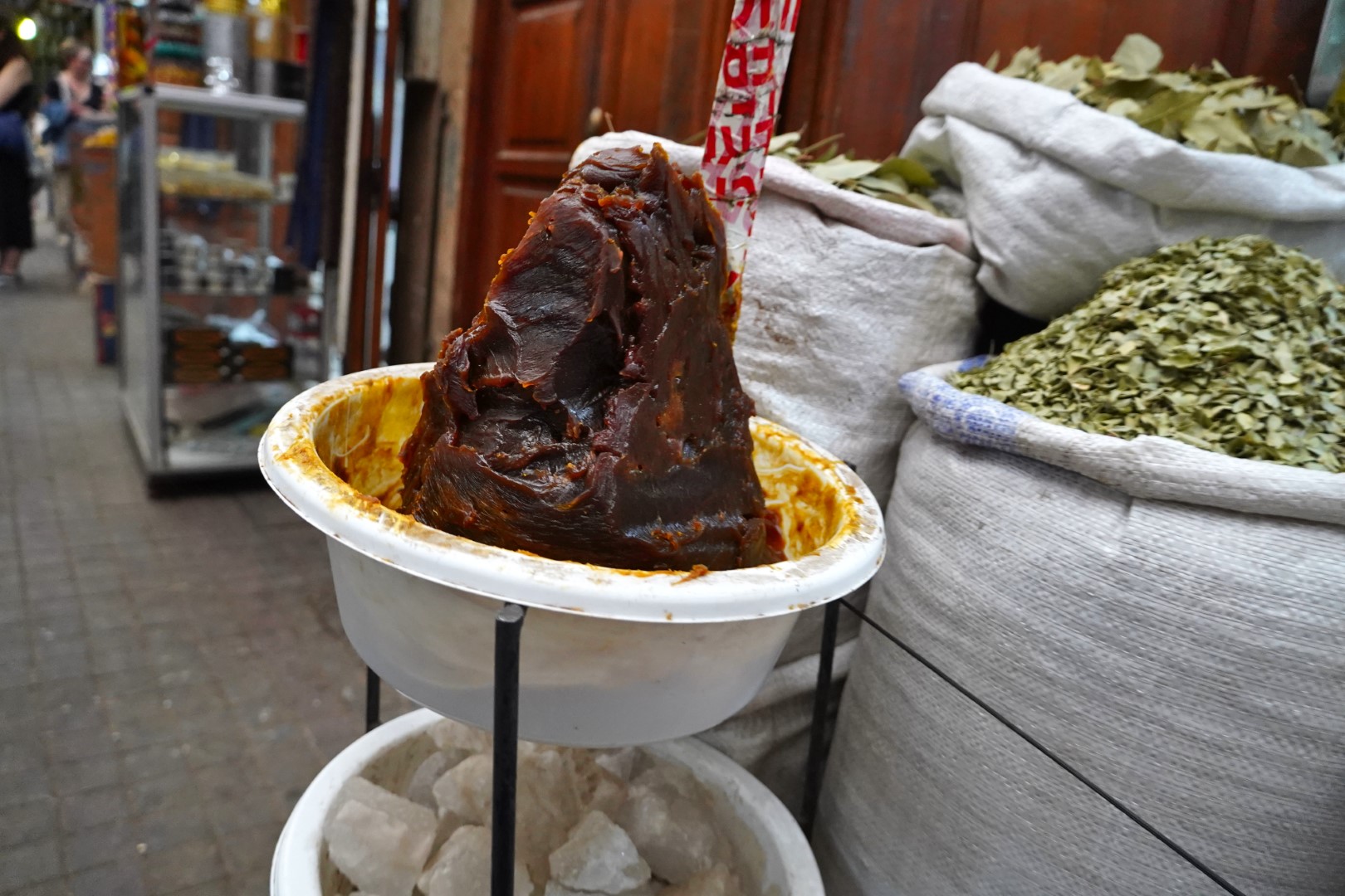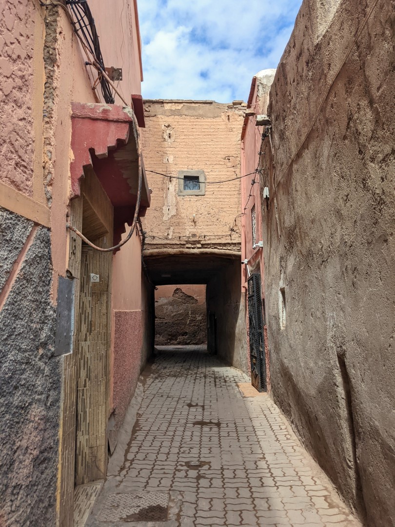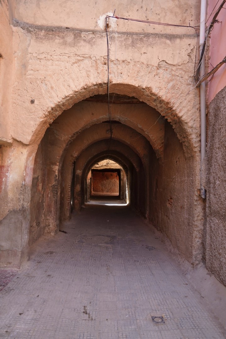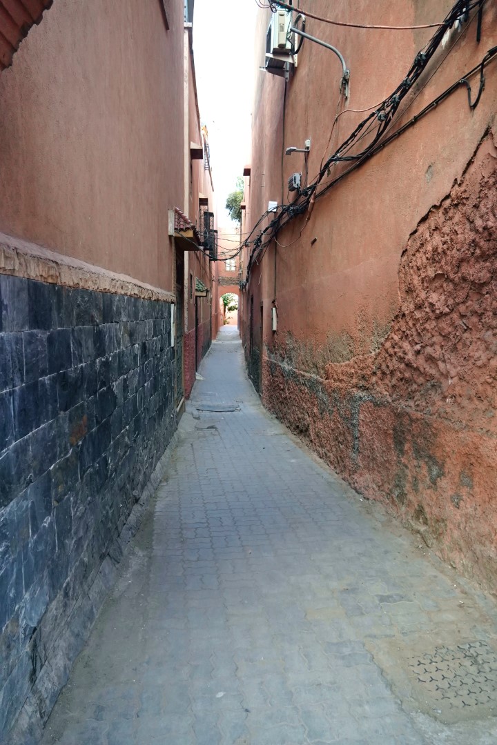 Anyway, “Mohamed’s” spiel was to introduce his marks to a friend of his who just happened to be passing by, and who’d generously offer to take them on a tour of a tannery. For some reason, tanneries seem to be a popular draw in Marrakesh. They don’t appeal to us at all; why should we take any pleasure in walking among the smelly hides of a bunch of dead beasts? We even peeked into one as we strolled past, and both the view and the stench confirmed our suspicions. So we ditched out on this friend of “Mohamed”, and went on our merry way.