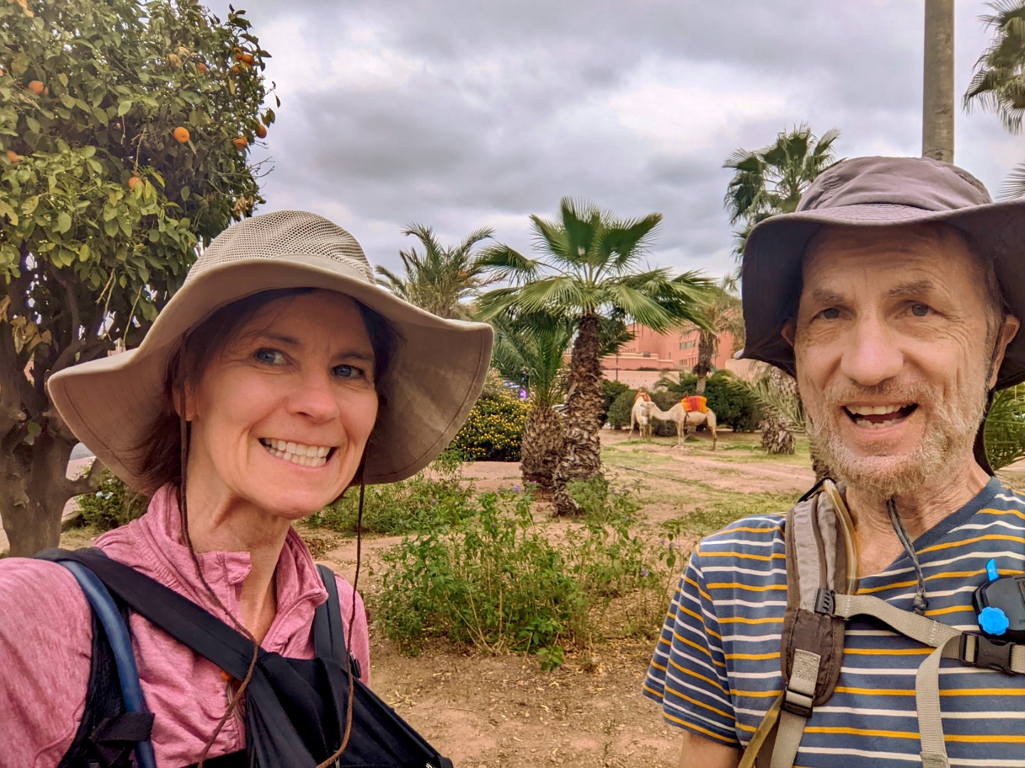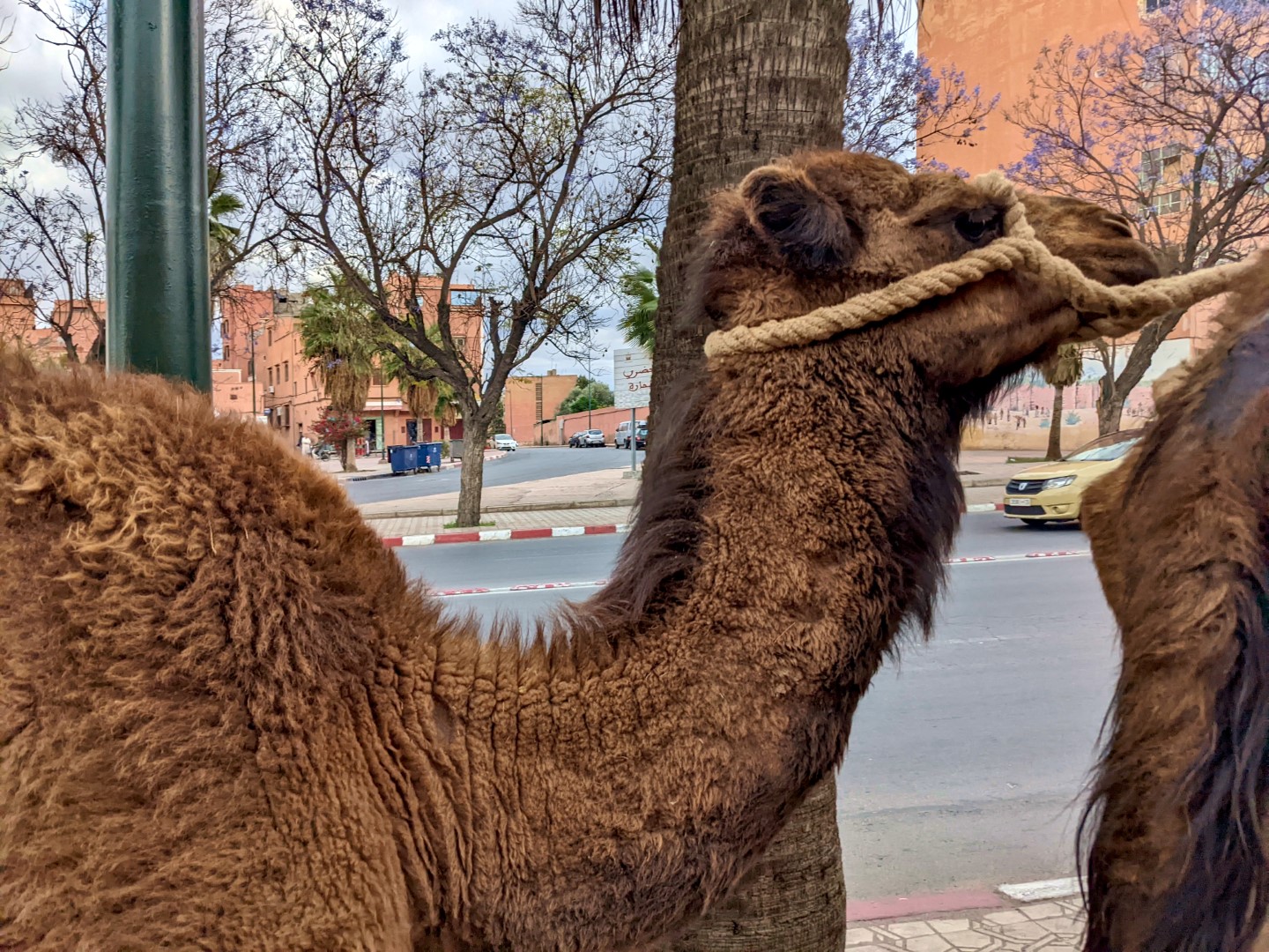 En route, we passed a few camels that were saddled up, or waiting to be saddled up. We’d really like to ride one, but when we do, we want it to be in the Sahara Desert to get the authentic camelization experience. Actually, we’d had an opportunity that would have allowed us to do just that – and on this very day. The director of the school where we’d next be volunteering frequently organizes weekend outings for his volunteers. And on this weekend, they were taking an expedition to the Sahara. He had contacted us and invited us to come along, and we’d very seriously considered it. But because of a number of factors, including not being familiar with him and the other volunteers yet, the cost, and the fact that we’d already made arrangements to explore Marrakesh, we reluctantly turned down the invitation, hoping that we’d get another one like it in the near future.