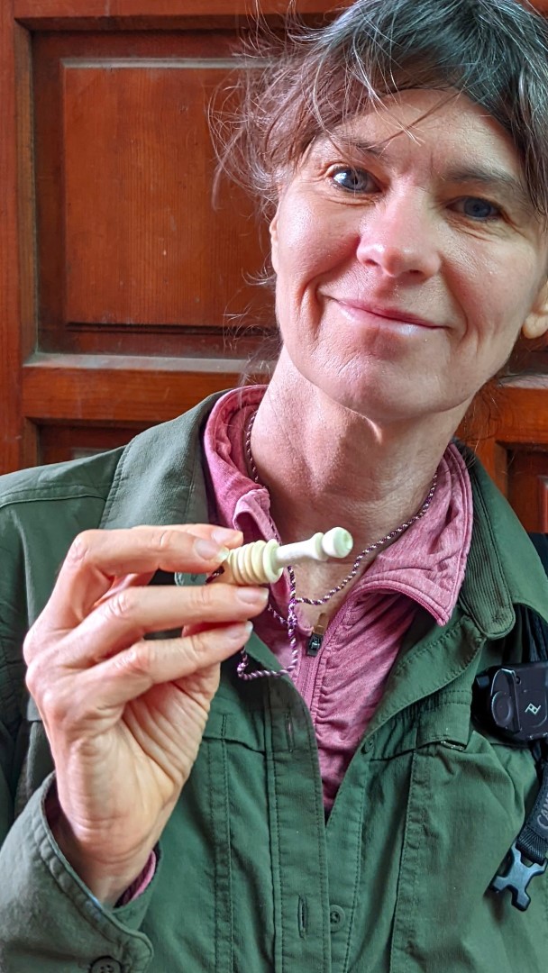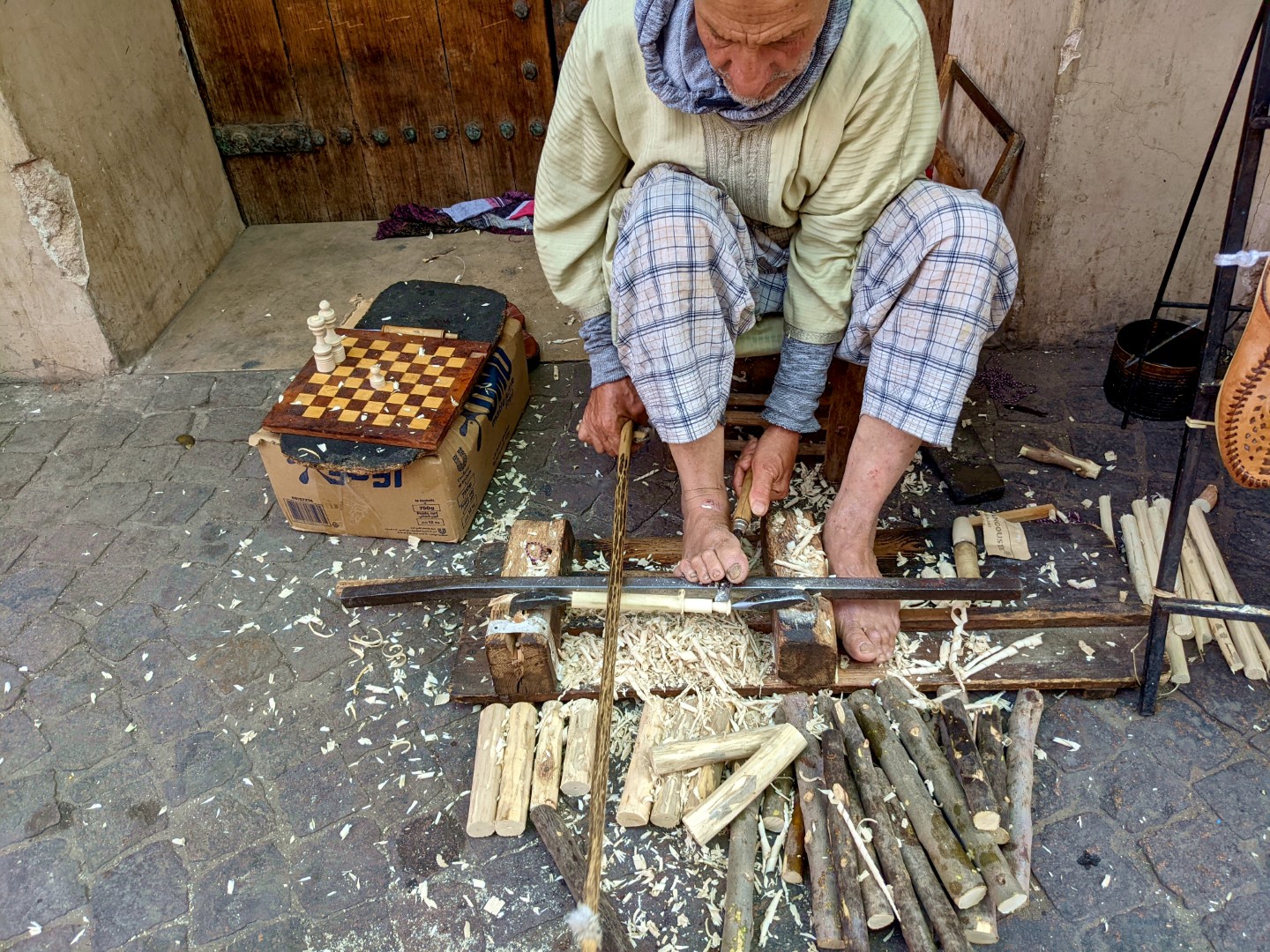 Then he took a fresh piece of wood and, before our eyes, created a special wooden trinket that resembled a chess piece, yet wasn’t exactly. And he punched a hole in one end, ran a string through it, and handed it to her to keep. We asked him how much he wanted for it, and he replied something like, “whatever you want to give”. So we handed him 10 dirhams, and he seemed as pleased as we were. Naturally, we’d realized when he invited us to take photos that he’d be expecting some cash. But we had no objection to paying a little for such an experience, especially when we got a unique souvenir out of it. And for the equivalent of only a dollar, it was all quite a bargain.
