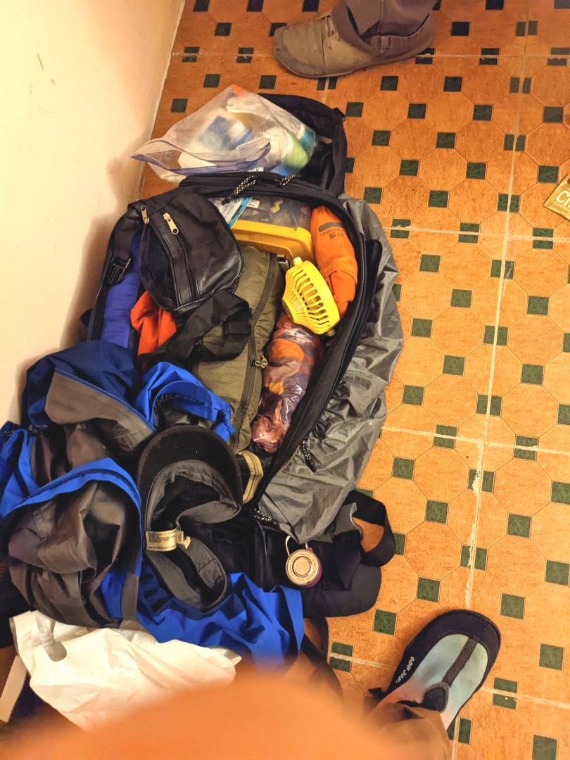 There were sheets on the beds, but only bottom sheets, and we were a bit leery of them. They may have been perfectly clean when installed, but we didn’t know how long they’d been there. What we did know is that people were accustomed to dumping dirty backpacks and all manner of other things onto them, right where people sleep. The housekeeper even stood on one of them to open a window. There were extra sheets in a cabinet, not only enough to change the ones on our beds, but to add a top sheet. And we resolved to wash them as soon as possible. (We also decided to purchase our own damn sheets as soon as we could, since we kept encountering this sort of problem.)