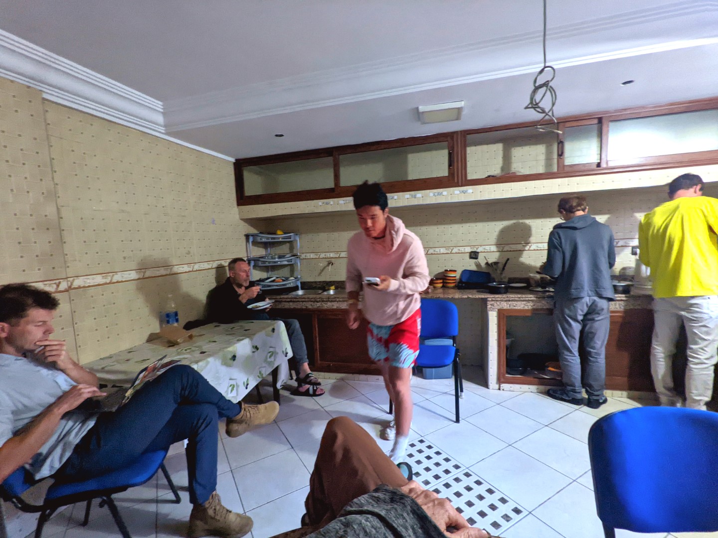 It was mid-afternoon when we pulled up in front of Berrechid BLA, where we were introduced to the staff, shown our quarters, and met our four fellow volunteers. These were Trevor, a sixty-ish Brit; Jason, a forty-ish New Zealander; Derek, a twenty-something from the San Francisco Bay Area (our former stomping grounds); and Vincent, a thirty-ish lad from Little Rock, Arkansas — about 100 miles from where Dennis grew up. We all got along great together and worked well together, and had some interesting conversations with a lot of laughs.