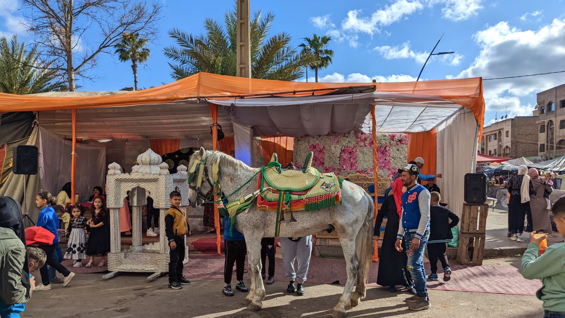 It was during this last week that Ramadan, which had been a presence in our lives throughout our presence in Morocco, finally came to an end. On the final day, people began gathering in the afternoon at a large park in the center of town, dressed in their finery, and bringing all manner of things to prepare for a grand feast and celebration – we gather that among other things, fireworks were on the menu. It was almost as if people fasted all month long just so they’d enjoy this grand shindig all the more. One interesting thing we observed was a number of little temporary photo booths made up to look like royal thrones, where little “princesses”, all decked out royally, could sit and have their photos taken. In some of these locations they also posed on horseback.