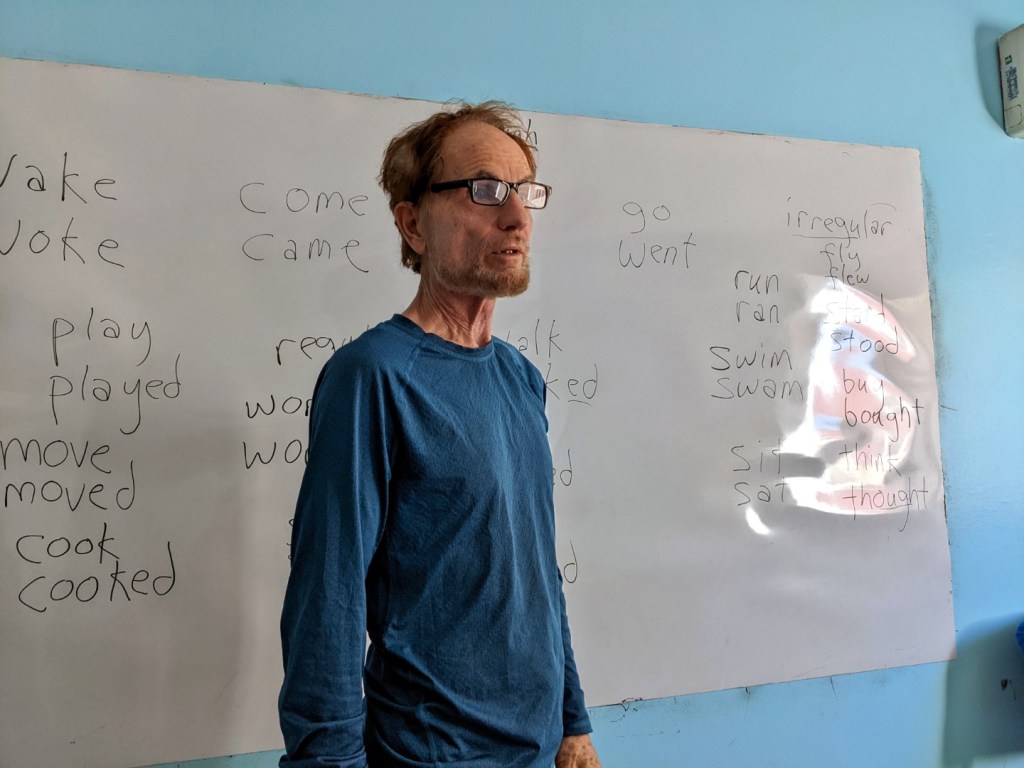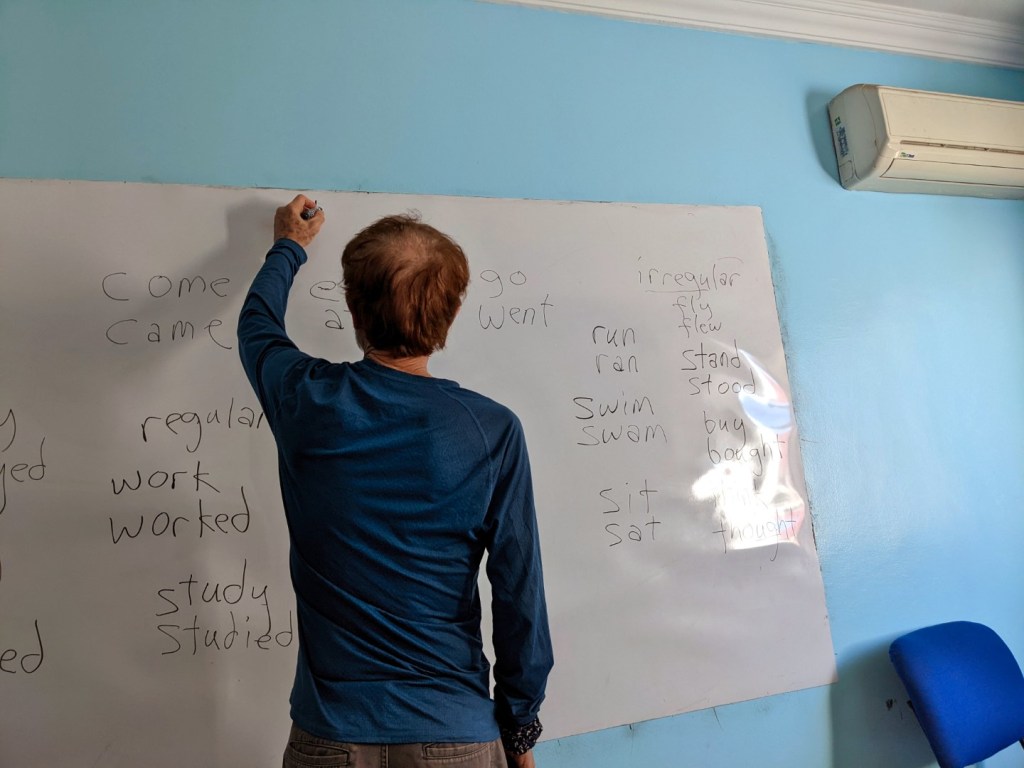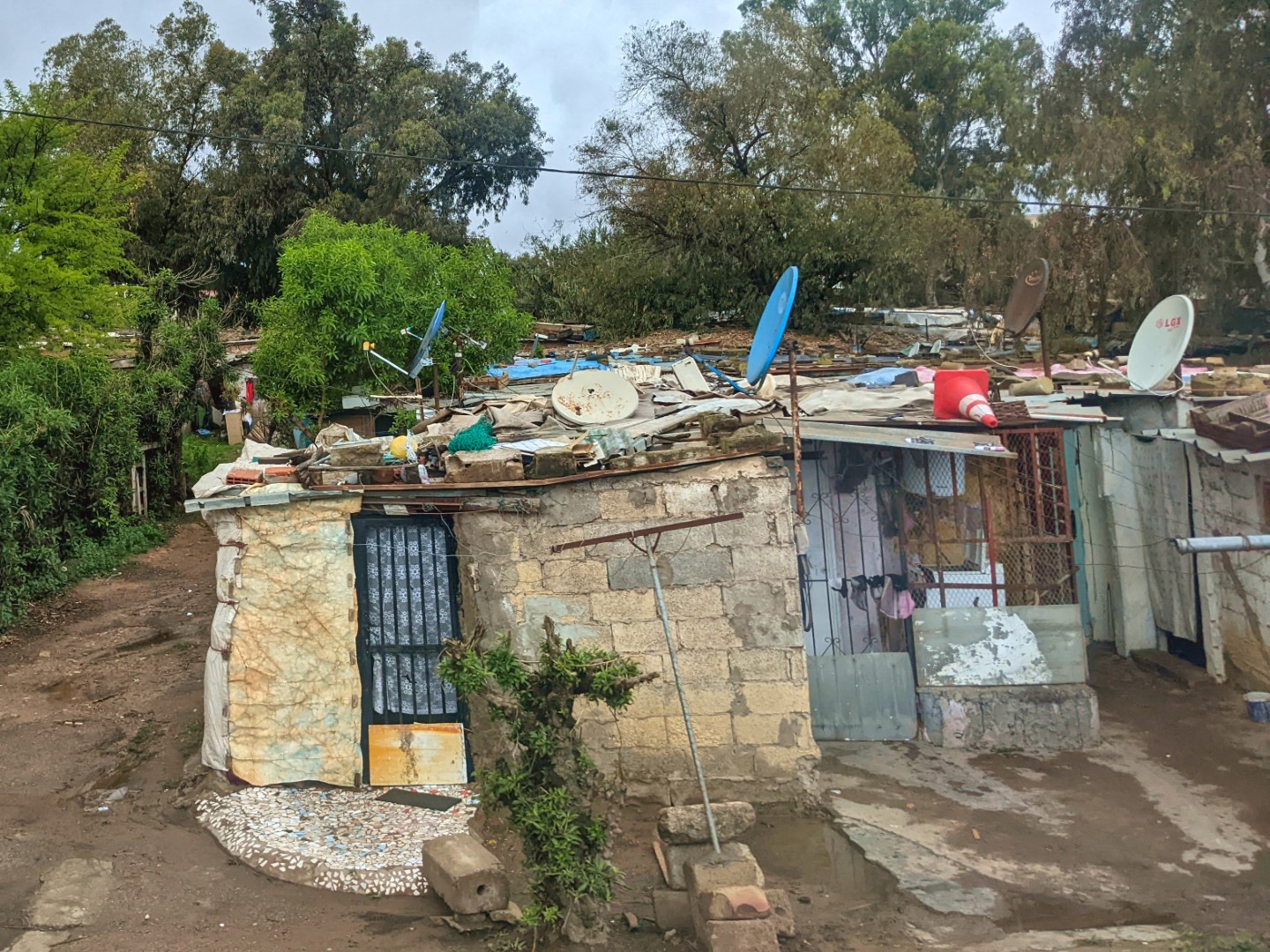 After an hour’s ride through open countryside and a shantytown or two, we hopped off at the bus station and walked the short distance to the school. Trouble was, there was no one there to let us in. And we did need to be let in, because of the three keys Kahlil had given us – one for the entrance to the building, one for the entrance to the school office, and one for the back part of the school where we’d be teaching and staying – only the latter was fully functional.