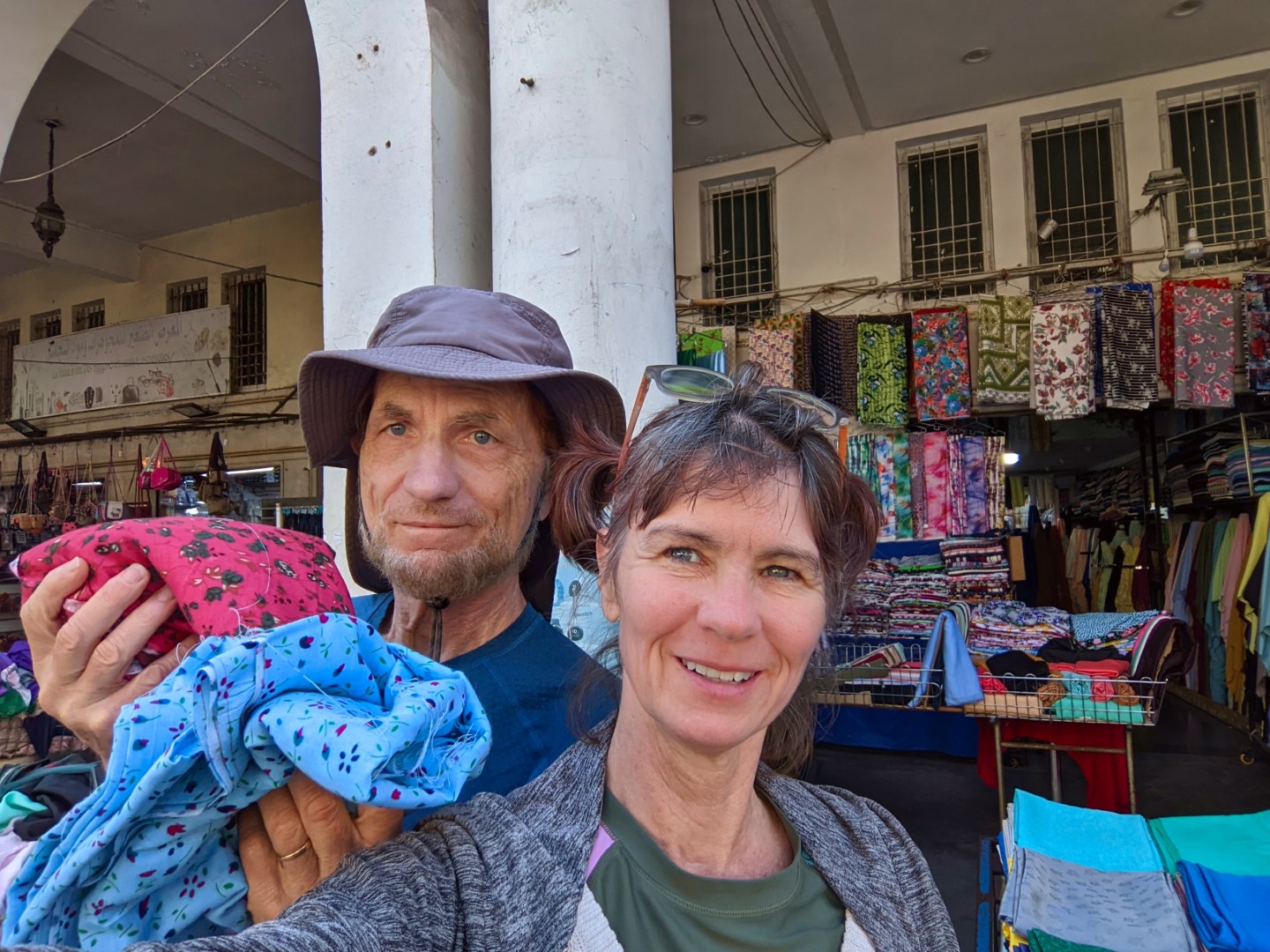 We also continued our futile search for bed sheets, which have proven just about impossible to find. But we did come up with a short-term solution that has turned out to be quite long-term. We simply bought two strips of cloth of appropriate size; and ironically, after we’d searched all over town for sheets, we ended up purchasing this cloth from a vendor right next to our building.