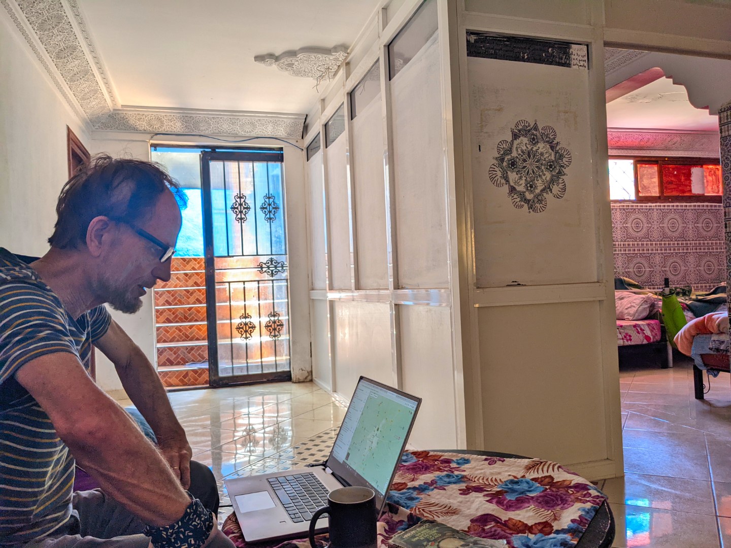 He’d been in Morocco for several months, a stay that soon was coming to an end, and he was becoming quite frustrated with the lack of opportunity to get good photographs of the people. Moroccans are often reticent about being photographed in public – as we’d just learned ourselves. And he’d run into all kinds of problems arranging a space to hold a photo shoot and models to participate at the same time. Once, he thought he’s set up a good shoot, but one of the parties just flaked out on him. Another time, he was going to do a shoot with a male and female model in her apartment, but learned at the last minute that this was strictly taboo in Morocco.