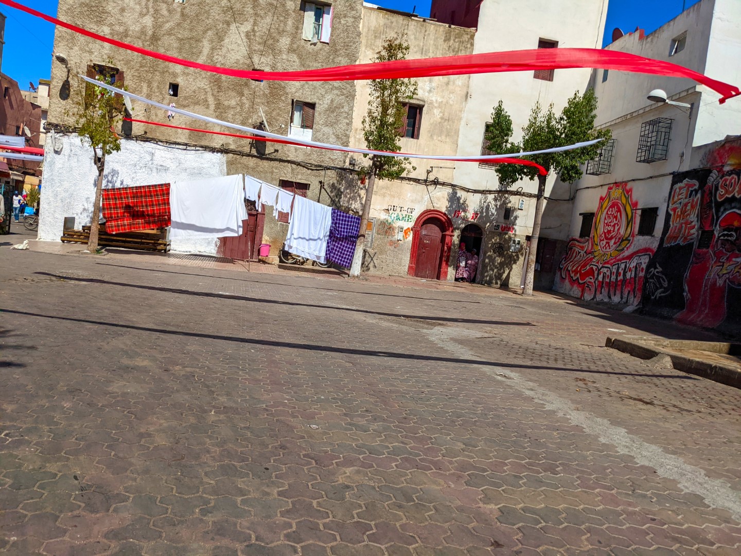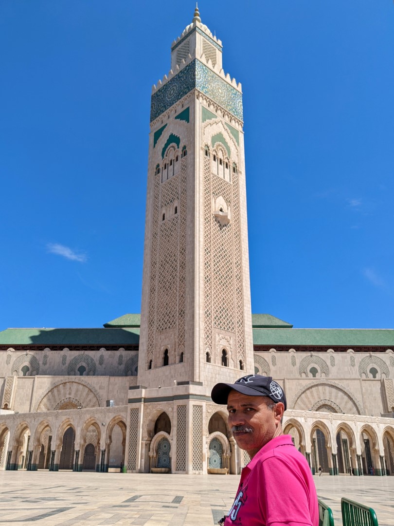 We came to Casablanca from Berrechid, where we’d been volunteering through WorkAway the better part of two weeks. The school’s driver, Khalil, picked us up in Berrechid – fortunately after Kimberly had found her missing case for our power adapter, which also contained the miniature worry doll she’d bought in Guatemala. Can’t continue the tour safely without the Guatemalan worry doll.