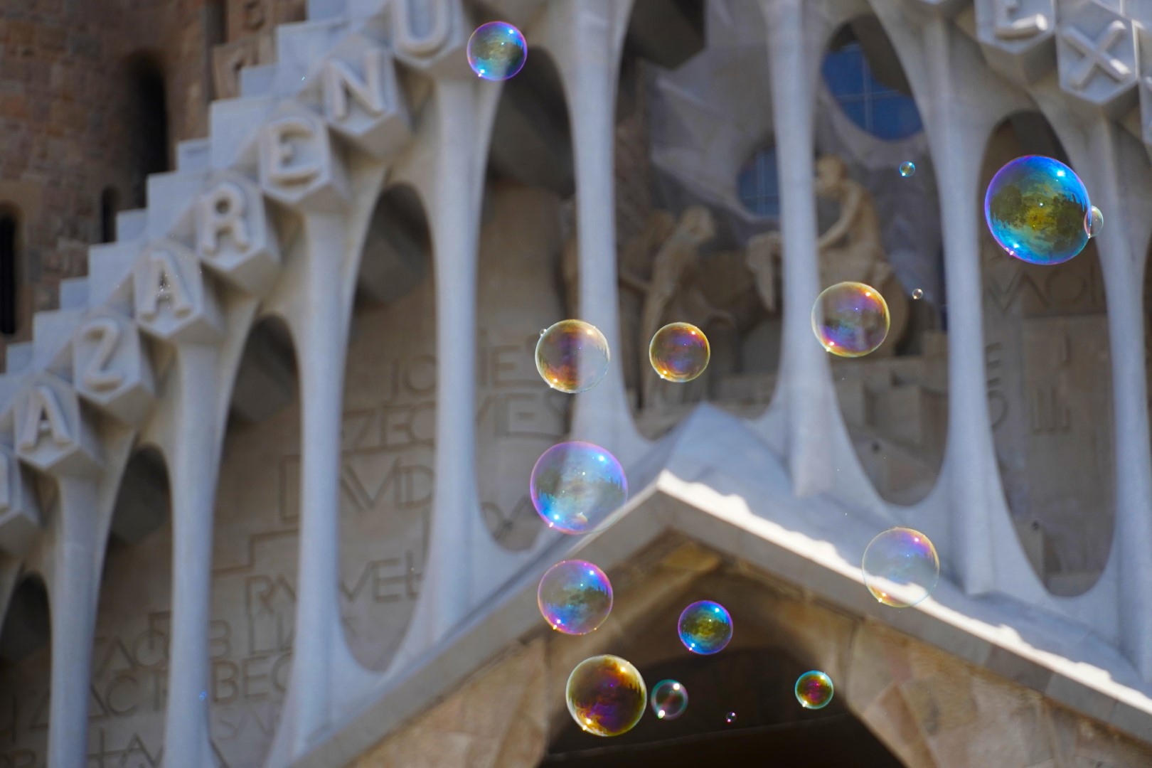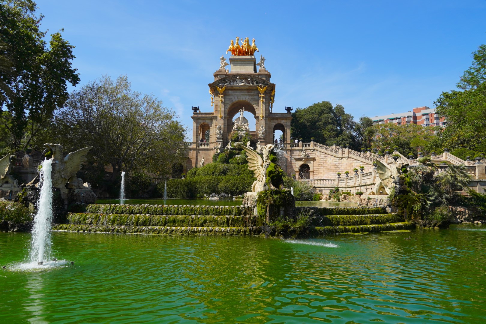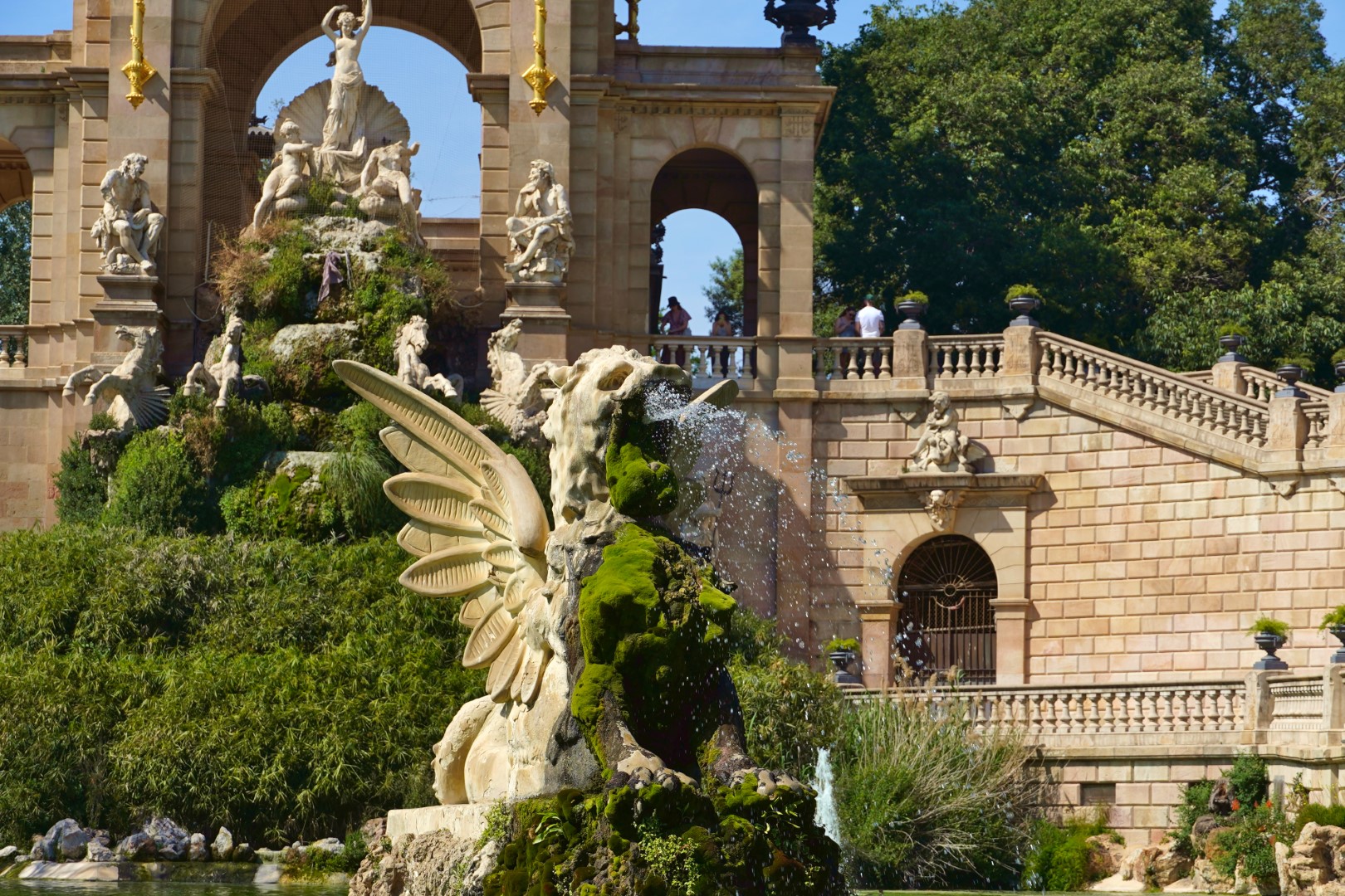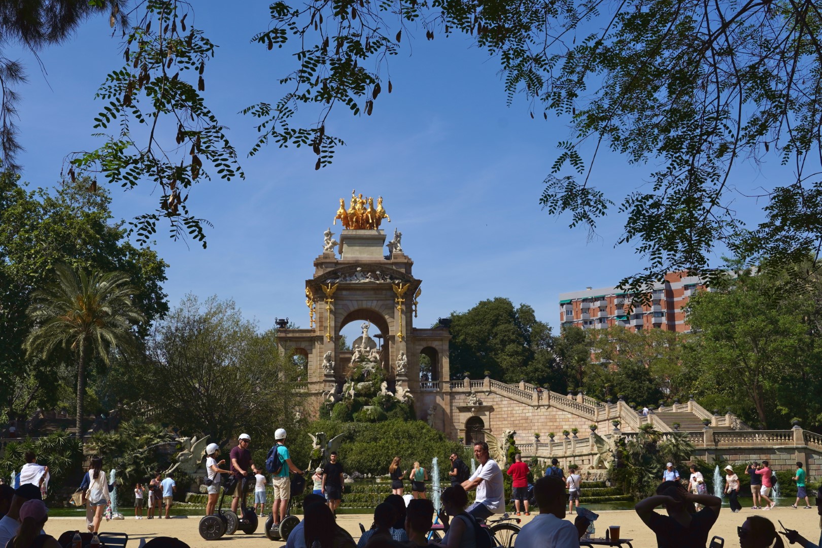 From there, we headed to Cuitadella Park, which was the site of a royal fortress a couple of centuries ago. Now it’s where Barcelonans go for R & R, and tourists go to get in some great photos. One feature worth snapping is the old bandshell, with gold-colored neoclassical sculpture, modeled somewhat after Trevi Fountain in Rome. In the park, in a couple of different locations, we encountered fellows blowing huge bubbles that people would do selfies with, and of course they expected or hoped for donations in return.