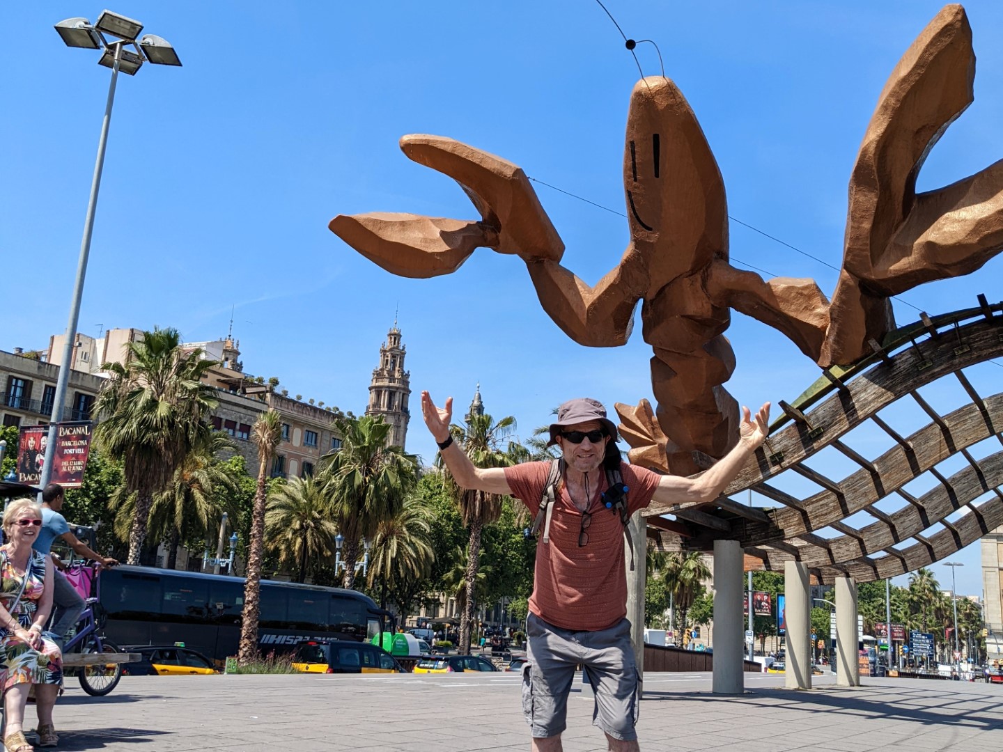 After the Gothic Quarter, we continued down to the waterfront, where we spotted two prominent pieces of sculpture: One is called Gambrinus, and it depicts a giant lobster, though it almost looks more like an interplanetary invader. The other is Face Of Barcelona, a really cool pop-culture inspired work by noted artist Roy Lichtenstein.