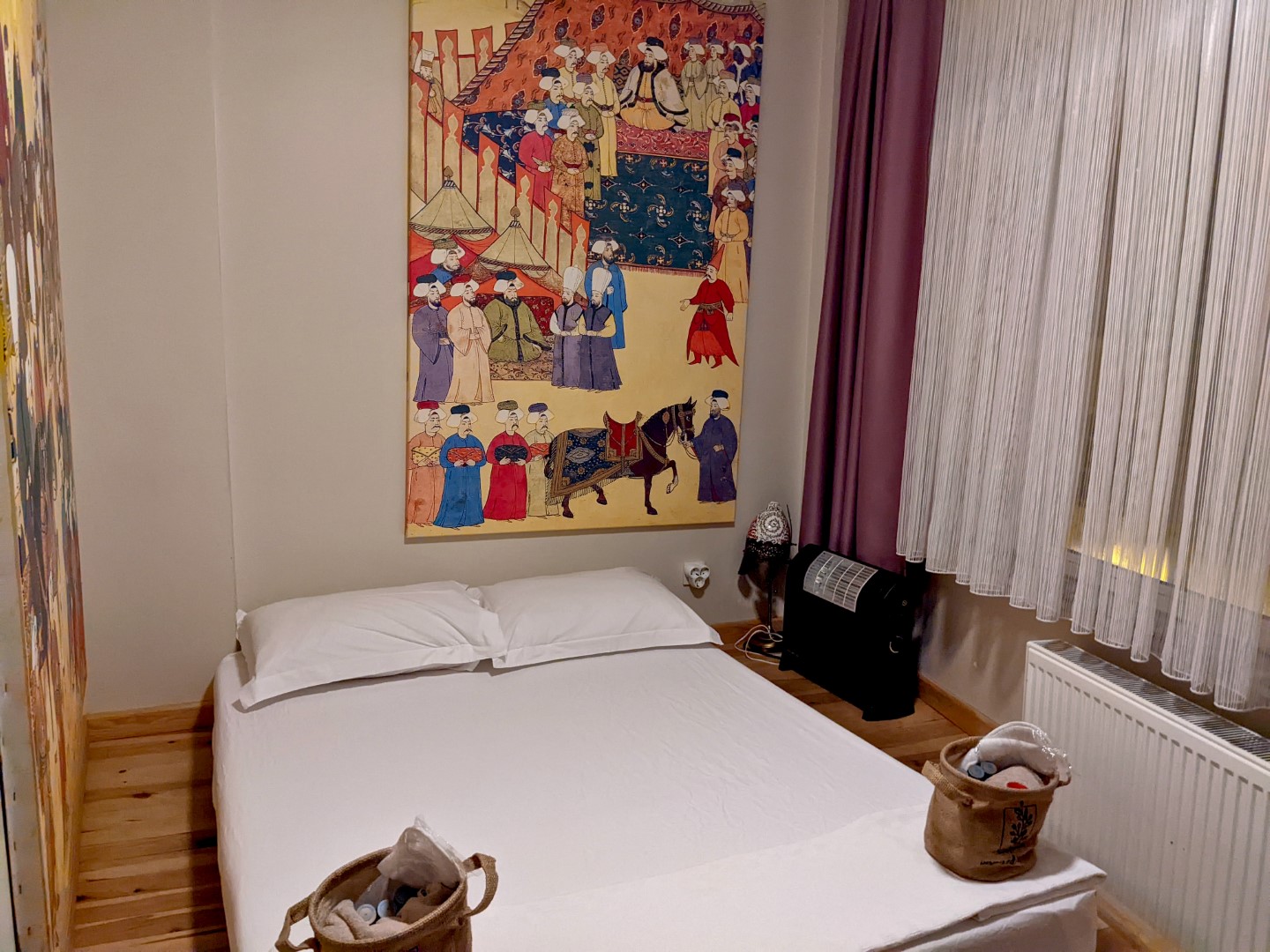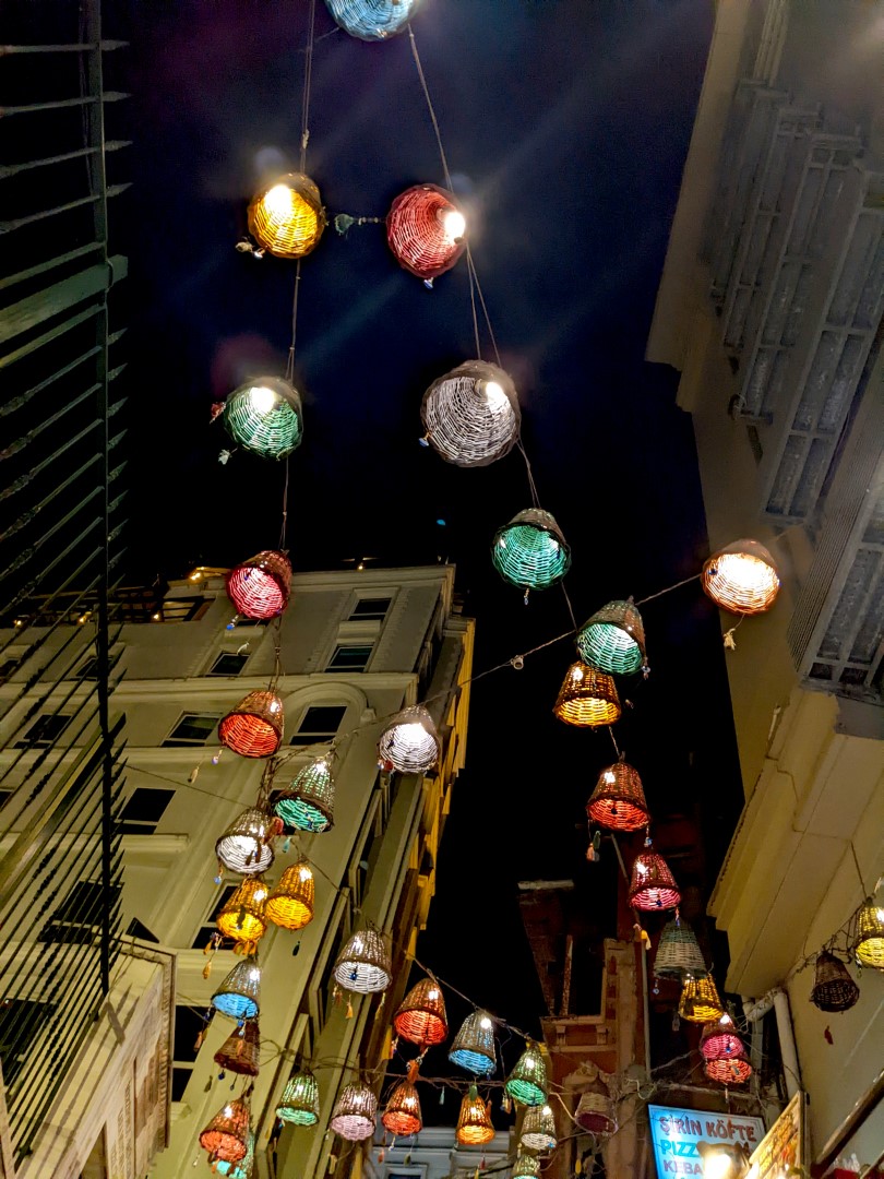 This hostel, called Social House, was one of the best places we’ve ever stayed. It was clean, quiet, well-equipped and meticulously managed, with every little detail thought out. We had a private room with a comfortable bed, rather like a hotel except that the bathroom and shower were across the hall. There was a refrigerator on each floor, with a clever system for designating a space for each room. There was a fully equipped kitchen, and a nice lounge area with a view of the city, as well as free coffee and tea at any time. And the tea wasn’t the green stuff that was so ubiquitous in Morocco; it was dark, high quality, genuine Turkish tea — and Turkish tea is even better than Turkish coffee. There were even (oh joy oh bliss) a washer and dryer. And we were within a short walk of many historical points of interest. Oh, and the price tag for all of this was a princely 20 bucks a night.