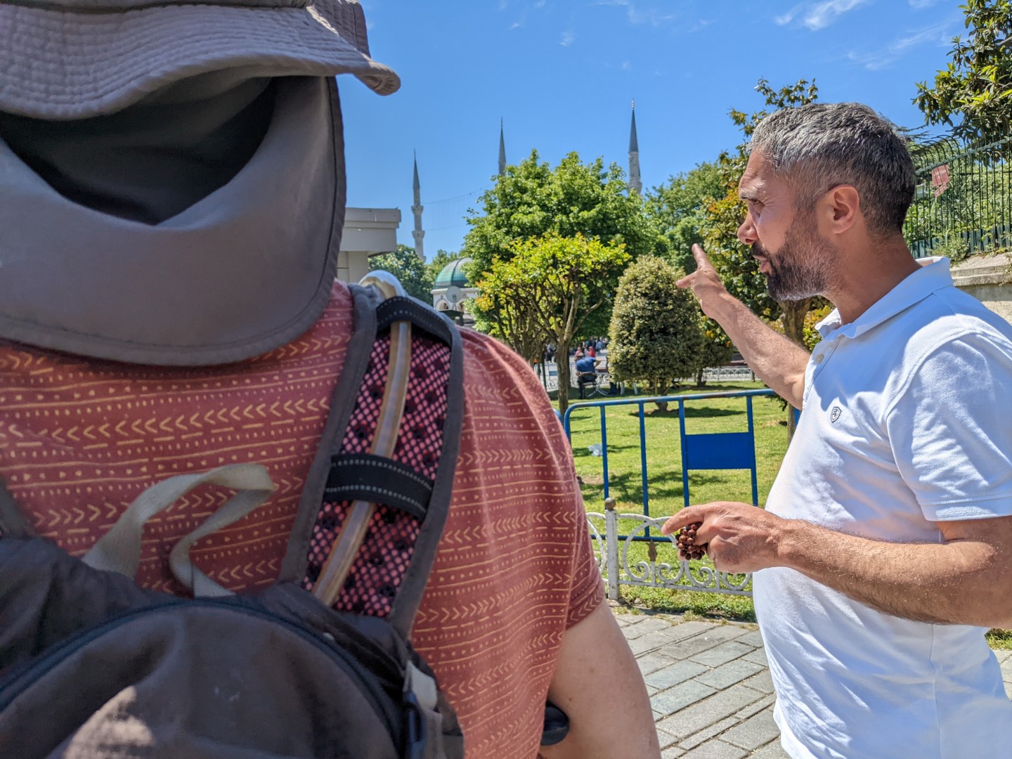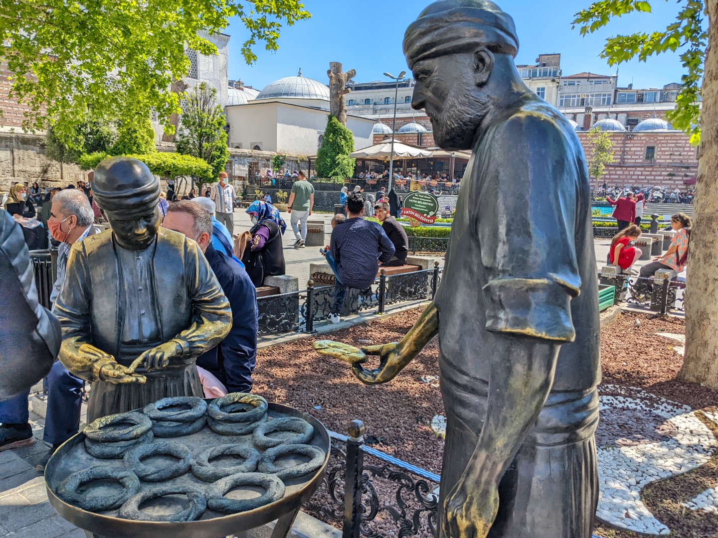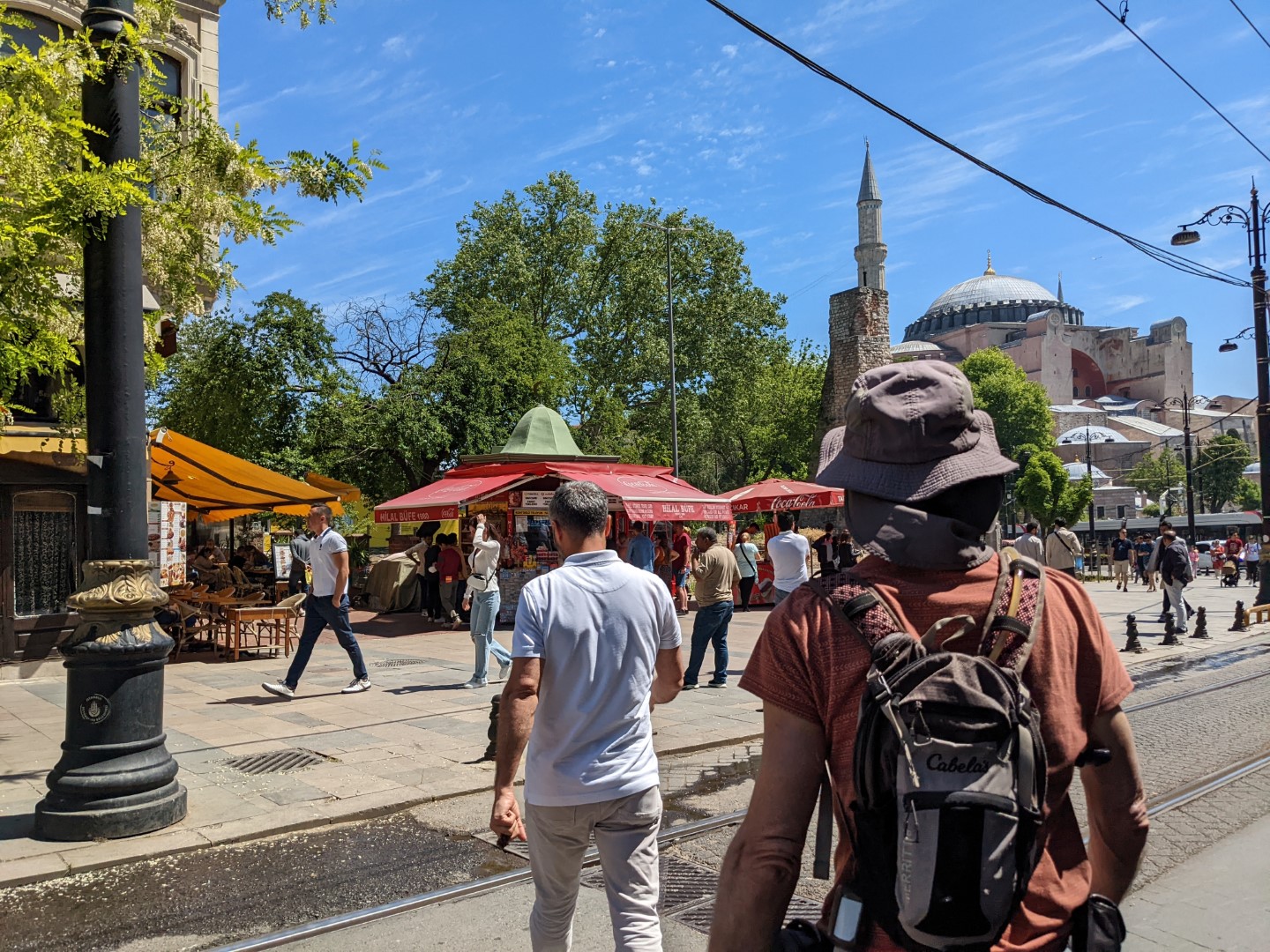 So the next day we returned right after breakfast with the intent of entering Hağia Sophia, which is pronounced something like Aya Sofya (with the “y” in Sofya like a long “i”) — sometimes you’ll even see it spelled that way on signs. It is, more than anything else, the iconic landmark that immediately proclaims you’re in Istanbul. It’s the one feature that filmmakers shooting a scene that takes place in this city inevitably frame in an establishing shot. And on this day, it was also something else: closed when we arrived. And wouldn’t open for another hour or so.