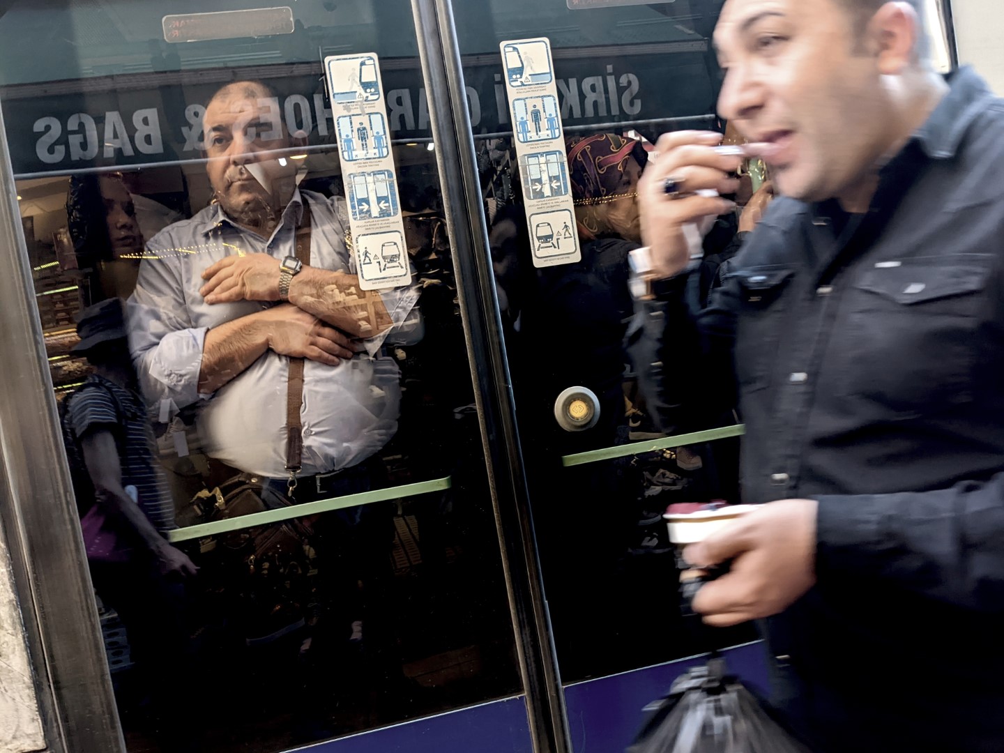 Finally we were on the bus, and after a ride of about an hour and some assistance from a couple of fellow passengers, we got off a couple of blocks away from a subway station. And entering this station, we found more ticket machines that were problematic — not because the instructions were hard to understand, but because we didn’t have, and could not obtain, the proper change. ATMs tend to dispense big bills by default; so it’s a good idea to withdraw an oddball sum so you’ll have a mix — which is exactly what we neglected to do.
