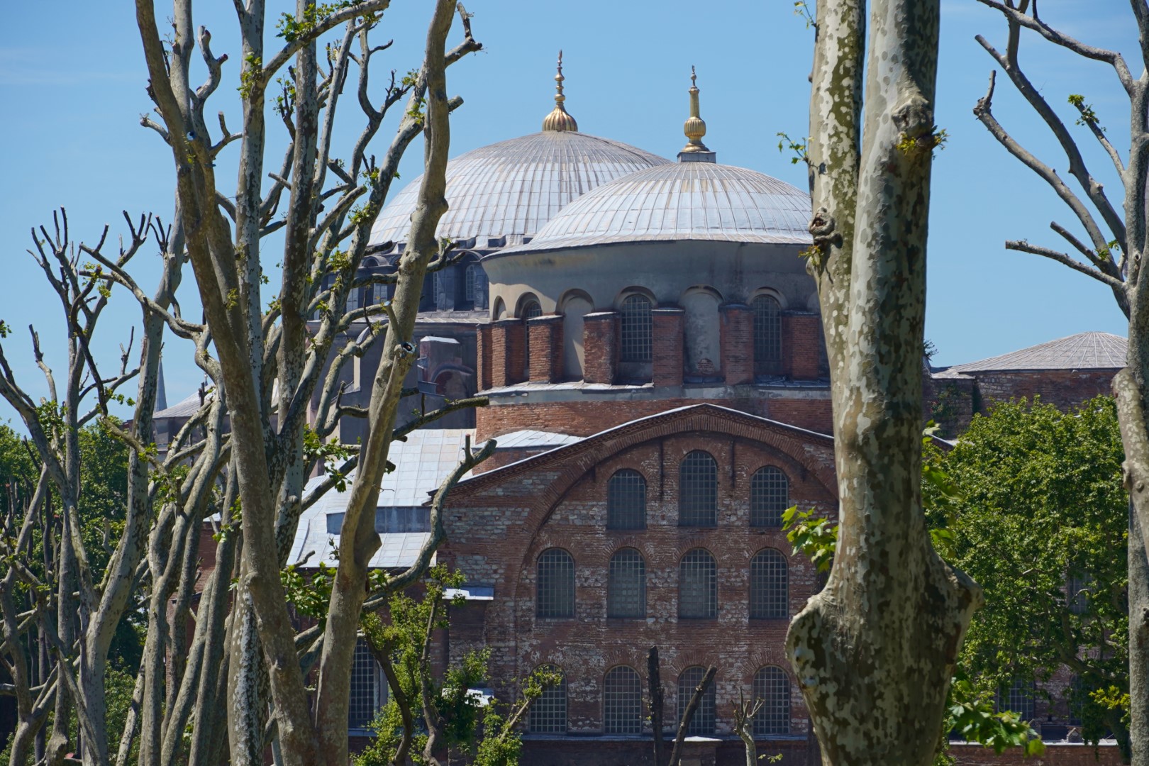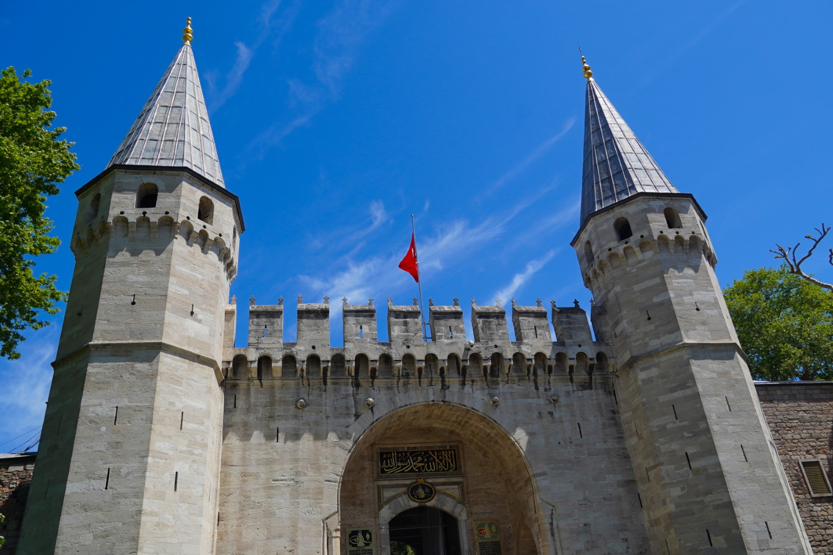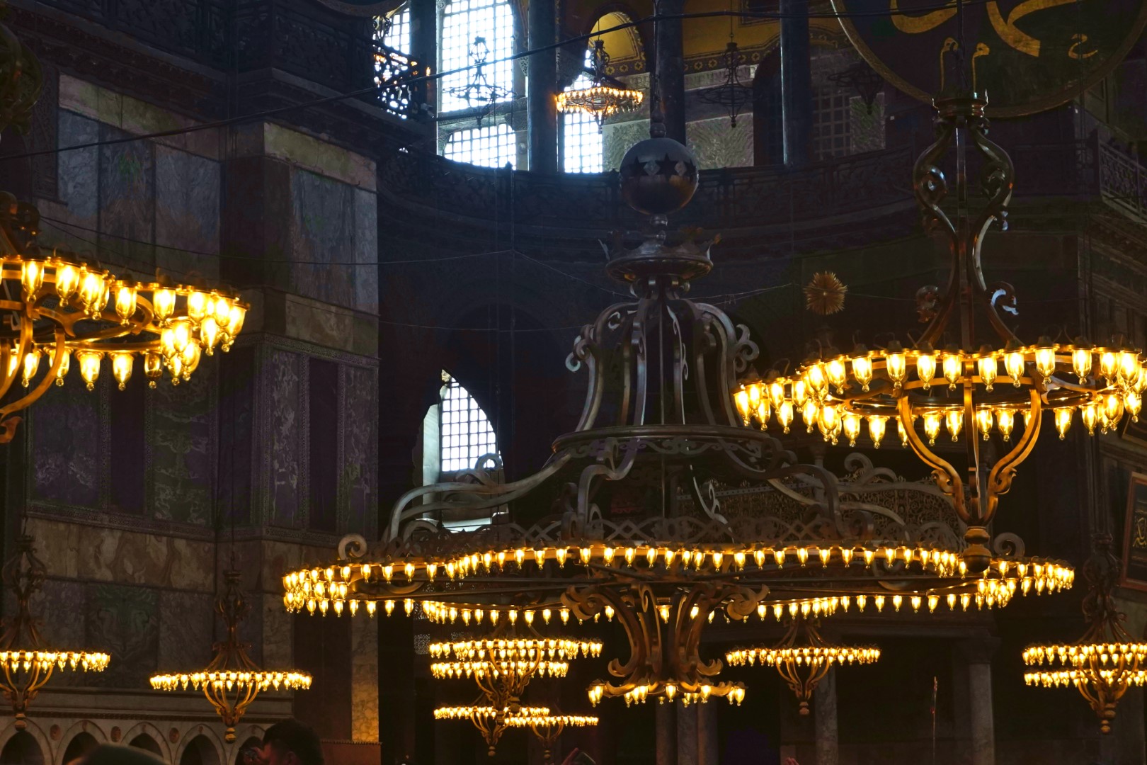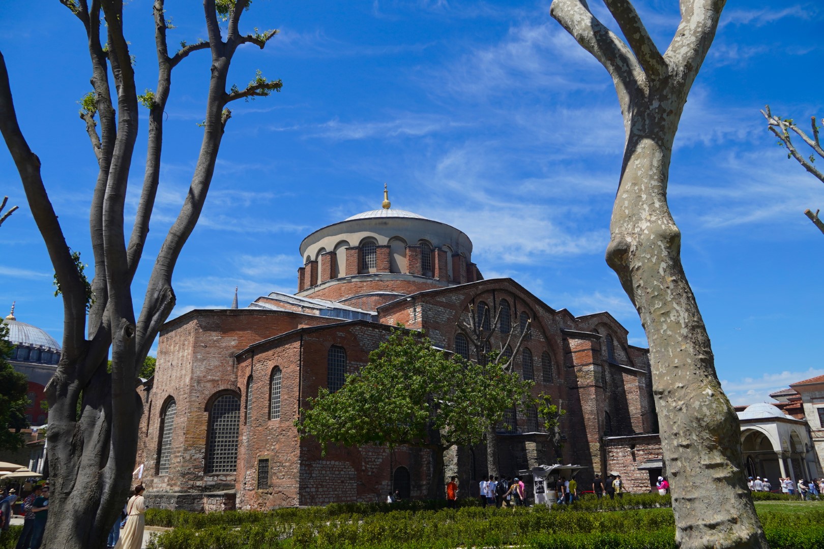 Finally, we headed across to the big enchilada. The central dome of the Hağia Sophia was constructed as a church around 537, and at the time it was of unprecedented proportions; it had a profound influence on the history of architecture. In 1453, when Muslims took control of the city, the church was converted into a mosque. Not long afterward, the distinctive spires were added, lending this majestic edifice the finishing touch it needed all along. It served as a mosque until 1935, when it was converted into a museum, which existed until 2000; and in 2018 it resumed its function as a mosque — and an extremely popular tourist destination.