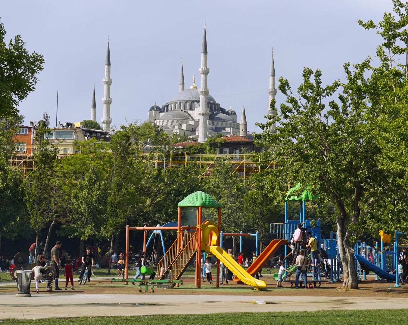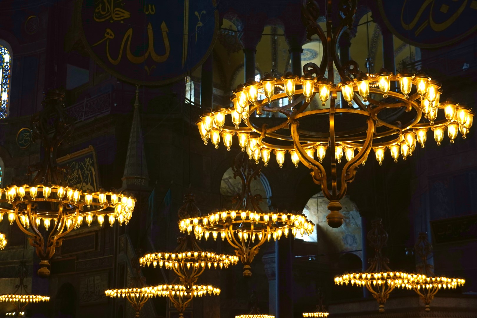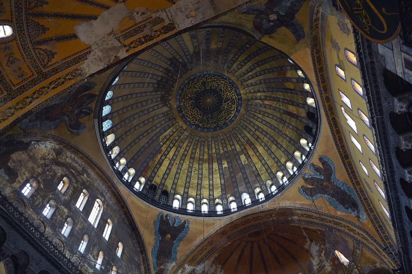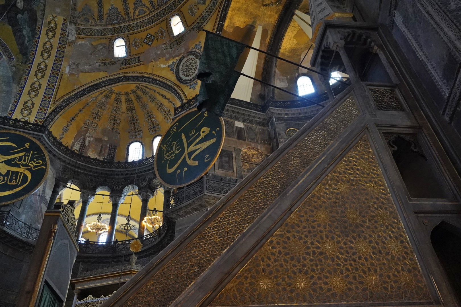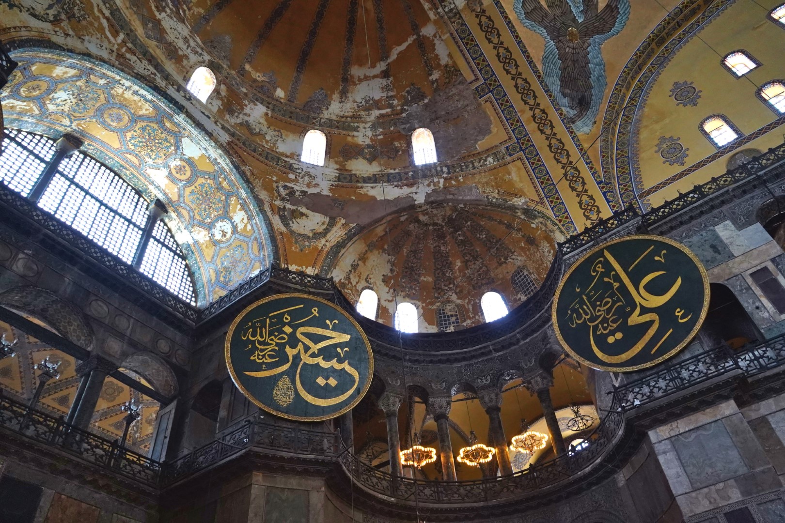 Finally, we headed across to the big enchilada. The central dome of the Hağia Sophia was constructed as a church around 537, and at the time it was of unprecedented proportions; it had a profound influence on the history of architecture. In 1453, when Muslims took control of the city, the church was converted into a mosque. Not long afterward, the distinctive spires were added, lending this majestic edifice the finishing touch it needed all along. It served as a mosque until 1935, when it was converted into a museum, which existed until 2000; and in 2018 it resumed its function as a mosque — and an extremely popular tourist destination.