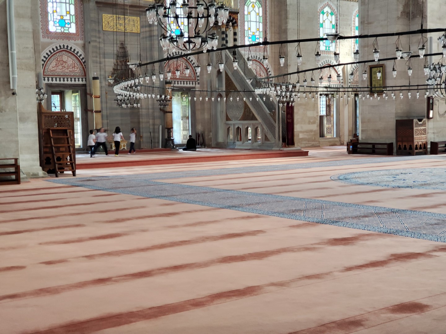 The mosque was extremely crowded, though not as crowded, apparently, as it had been the day before, with plenty of tour groups bumping into each other. At one point, Kimberly was requested to snap a photo of a young couple with all the ancient splendor in the background, so she obliged..