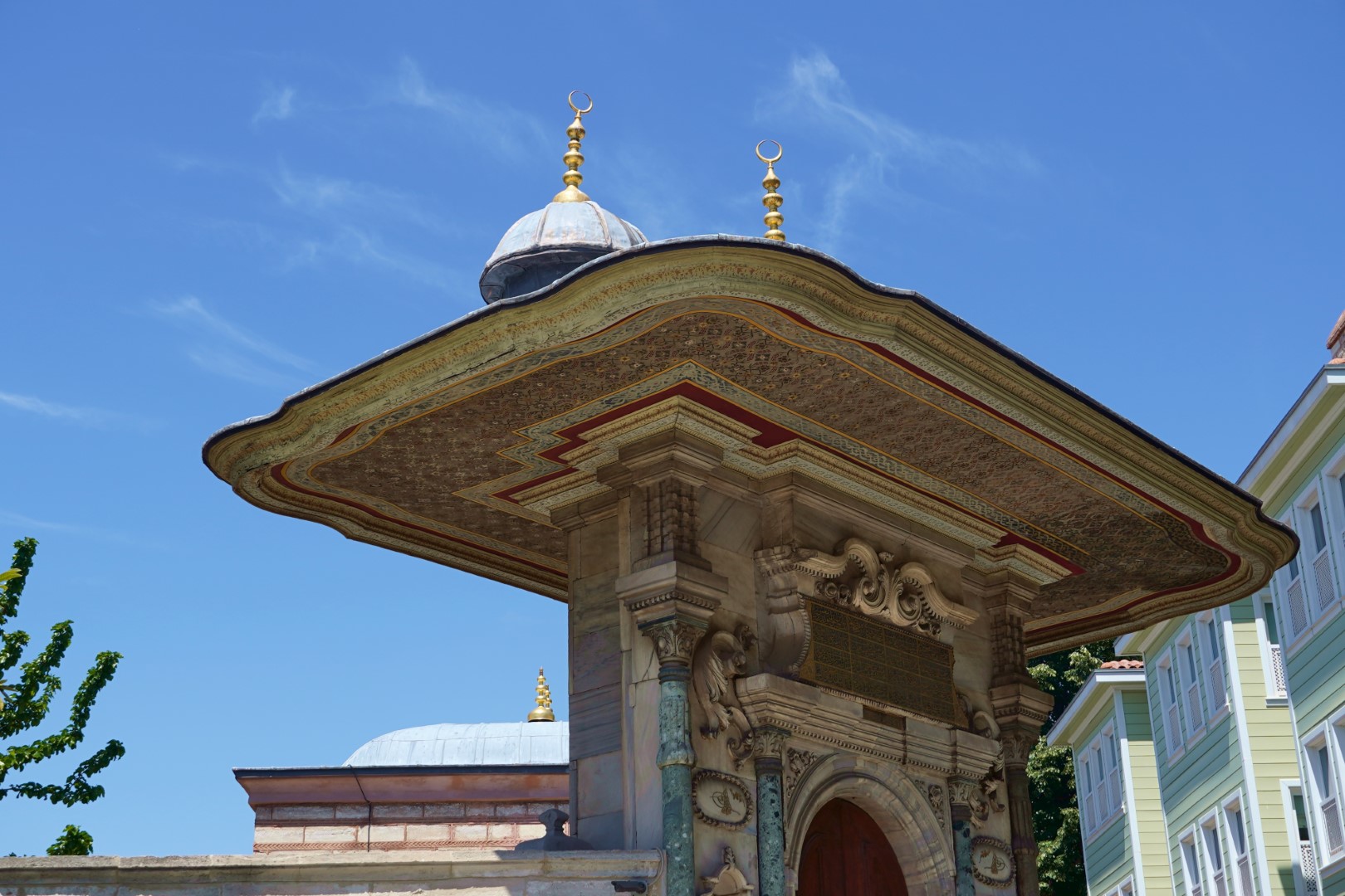 Having seen the gem of the city (and resolving to return –admission is free), we strolled down to the waterfront and just did some aimless rambling through the city. And Istanbul is a great town for aimless rambling. At one point we passed an ancient aqueduct that we didn’t know existed. And then there was the green marble pillar, subtly embedded into a wall, with a plague stating that it was stuck there in the Sixteenth Century or thereabouts to mark the geographical center of Istanbul at that time. We’d discovered the center of Old Town without even trying. It is indeed a city full of surprises.