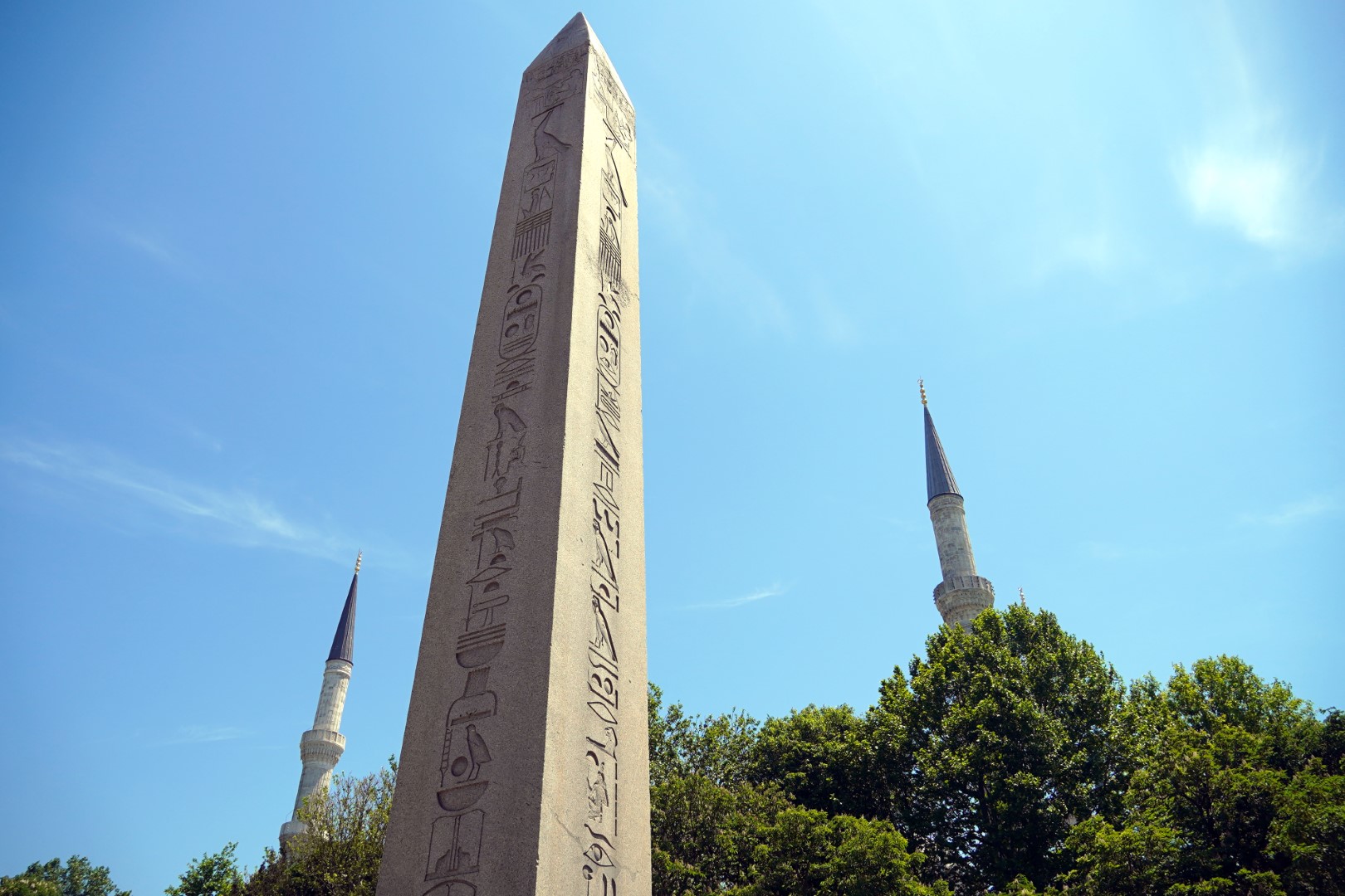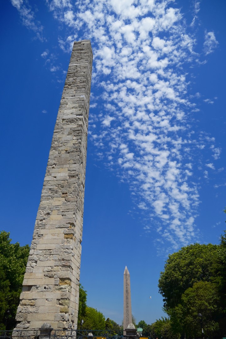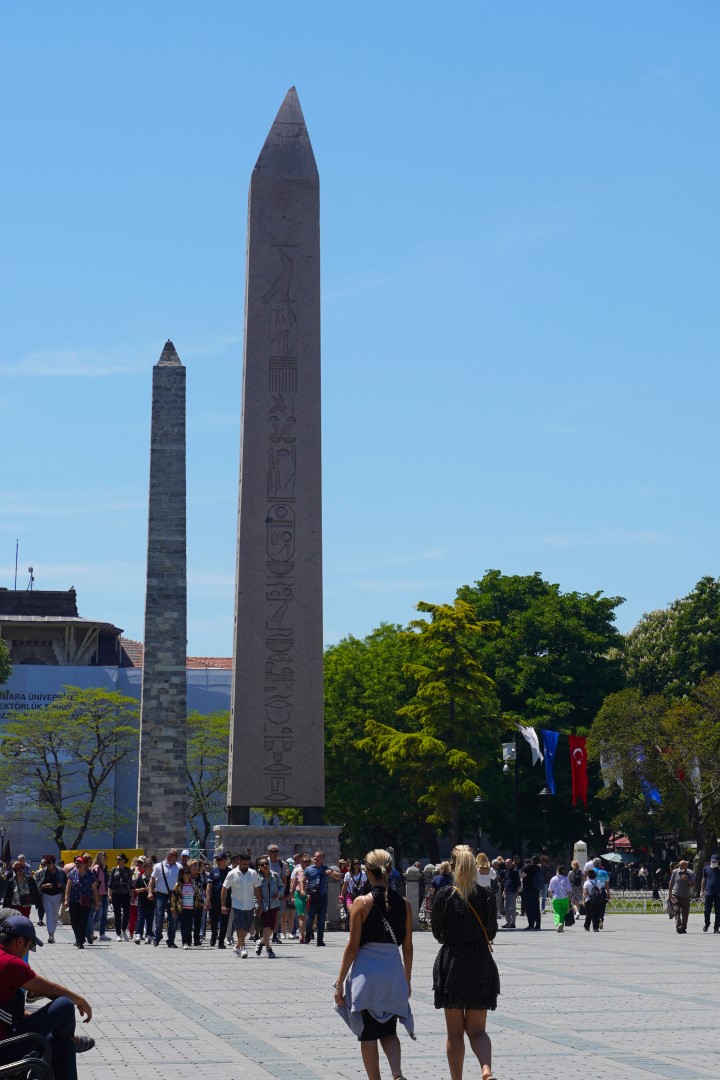 Then it was on to the mosques. But would you believe there were a lot of other people there who wanted to see them too? Far, far too many, we decided, to make for a comfortable visit, so we decided to postpone it until the next day, which would be Monday, and we could get an earlier start at it. We did, however, stroll around the plaza and found an Egyptian obelisk, which looked much newer than anything else in the vicinity. We guessed that it was a modern replica. But upon reading a nearby plaque, we were surprised to learn that it dates back to the year 390, and was actually transported to Turkey from Egypt.