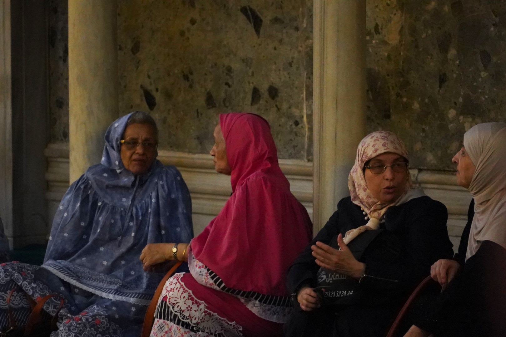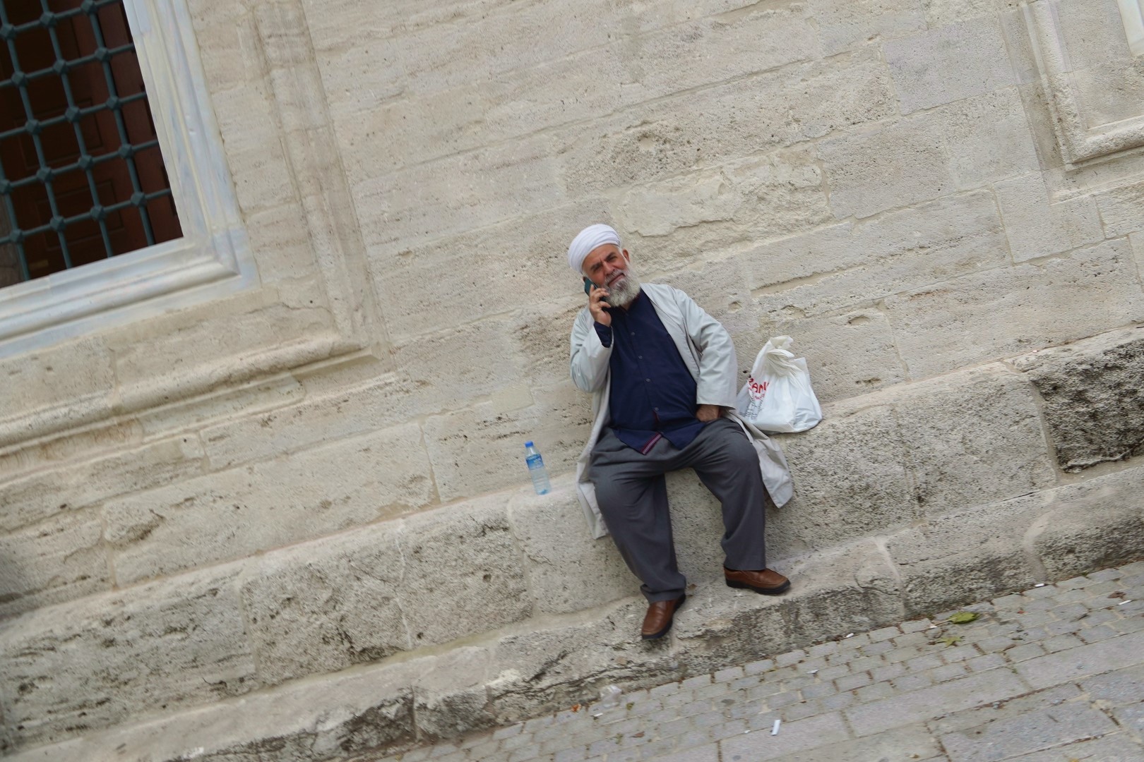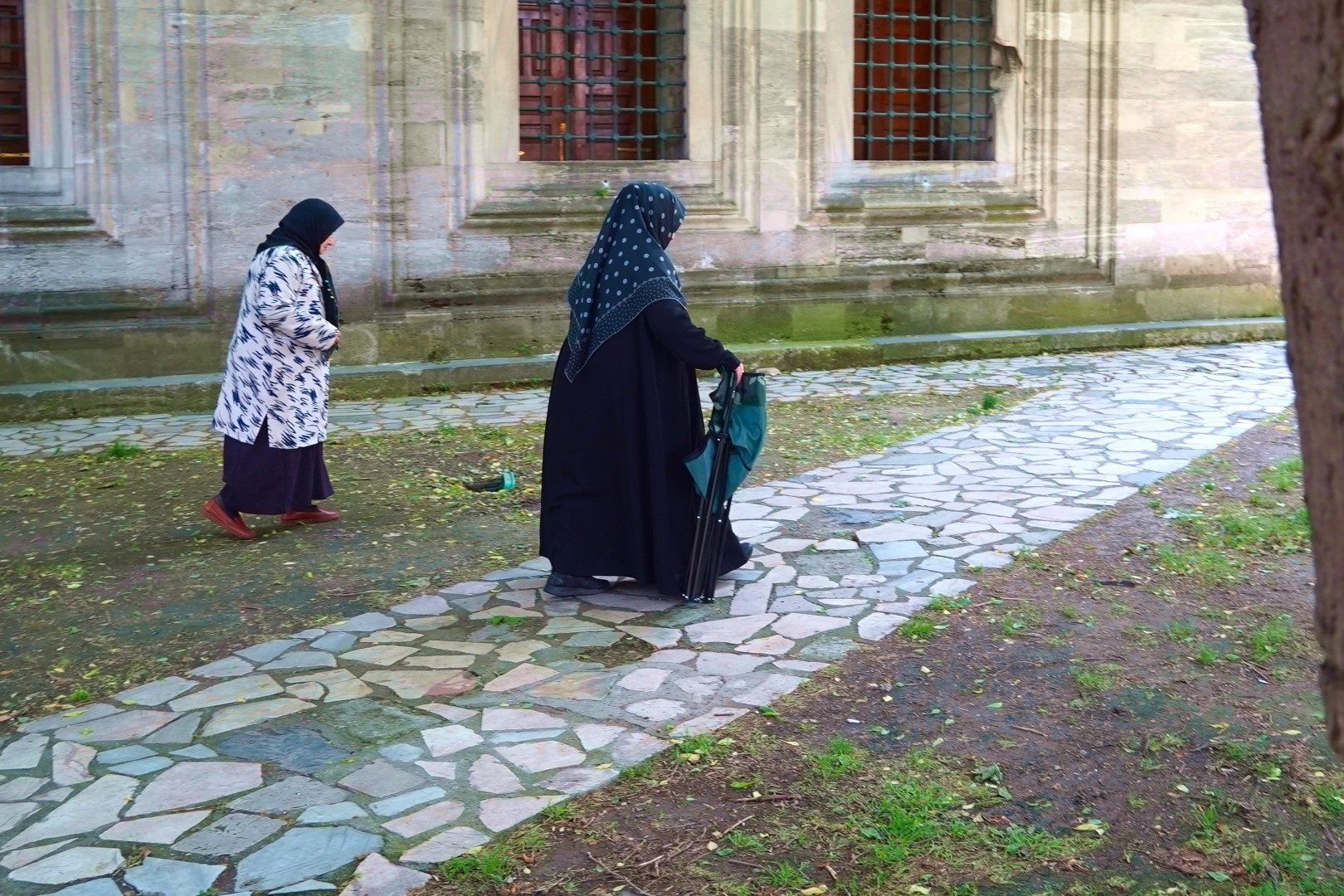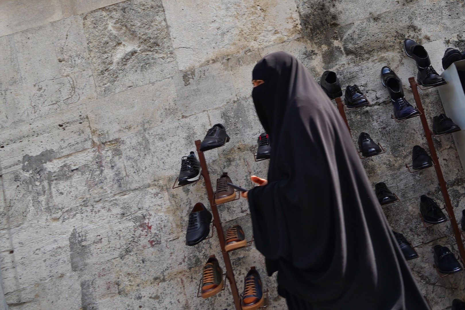 Upon entering a mosque, of course, you must deposit your shoes at the entrance. (When a mosque is really crowded you can whiff the toe jam.) And if your legs are not covered you’ll be issued a poncho. Women will be issued a head covering if they don’t have their own.