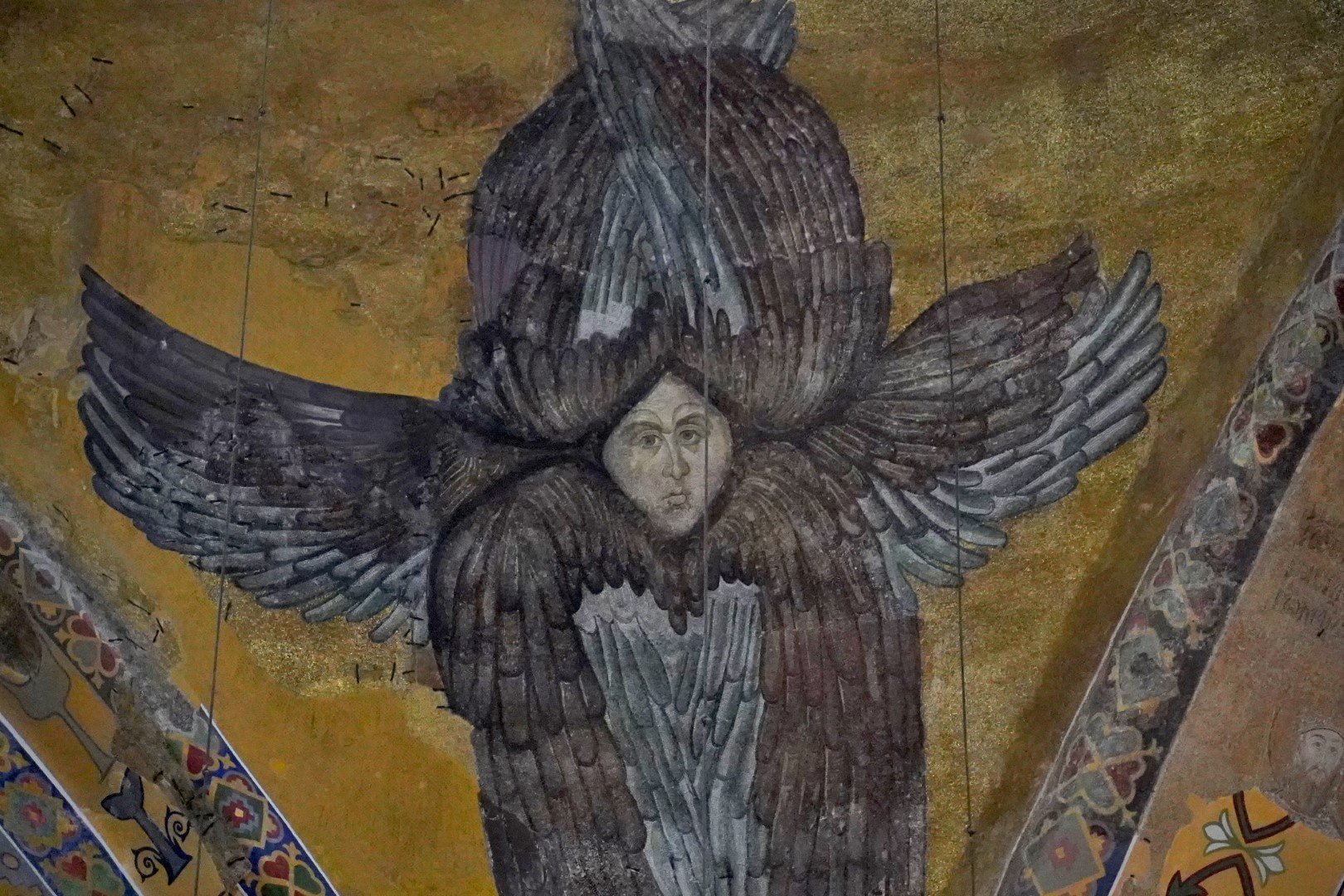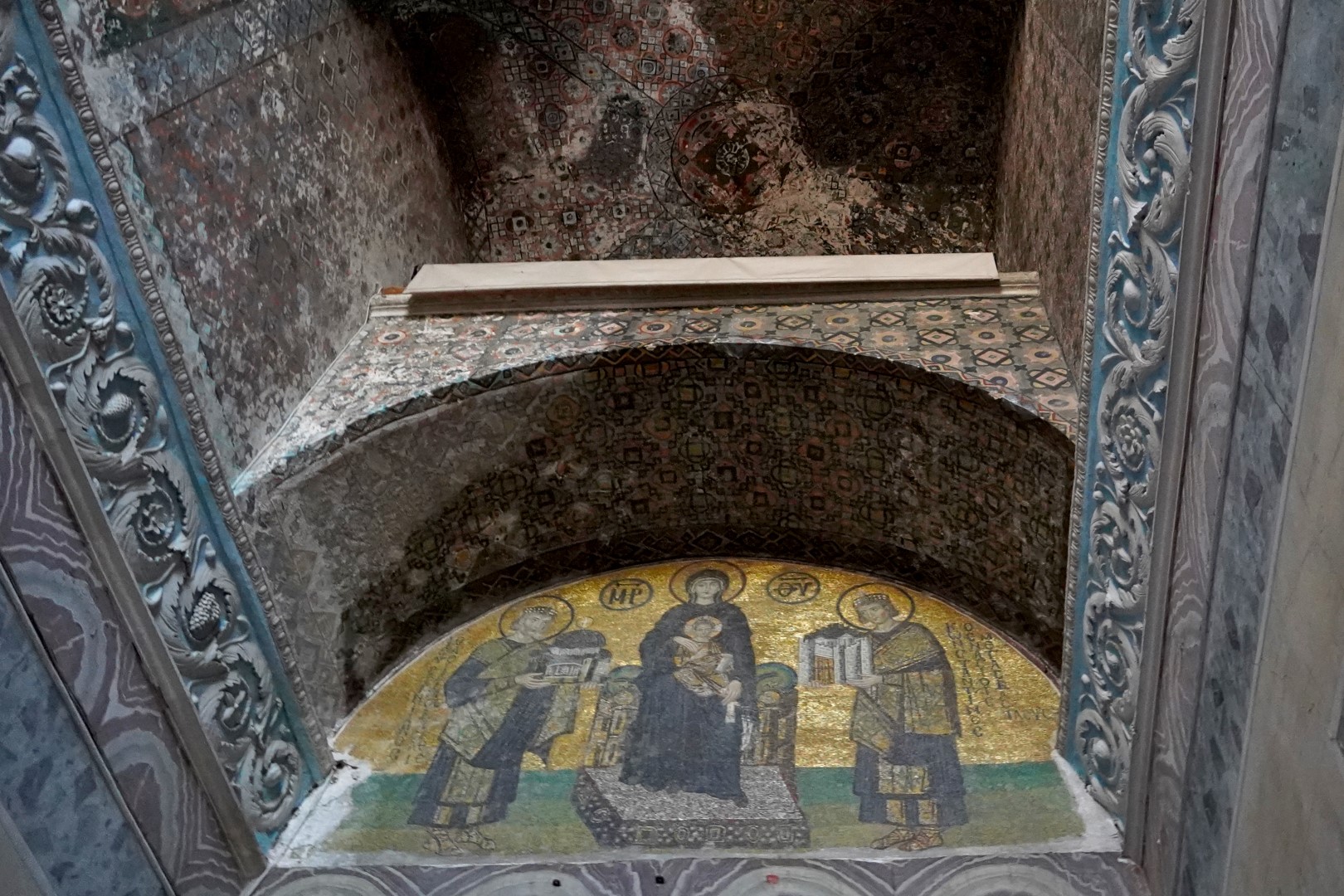Many of the Christian elements inside the dome were long ago removed, plastered over or covered up, but some of them later were restored, though some of them you have to look for closely. Among the more conspicuous features are mosaics of the archangels Gabriel and Michael. There’s something called the Nice Door, which was added in the year 838, but is actually much older, having been reportedly ripped off from some pagan culture in the Second Century BCE. The largest entrance is called the Imperial Gate, dating back to the Sixth Century; but its wood is claimed to be much older, and reputedly was once part of… drum roll…Noah’s ark. And there’s something called the Wishing Column, the touch of which is supposed to heal you. (If nothing else, it might cure you of gullibility.) All over the place, if you stare at the walls long enough, you see some curious detail pop out at you, and you wonder what it is, and almost wish you’d caved in and paid ten bucks to one of those tour guides hustling you outside the entrance.