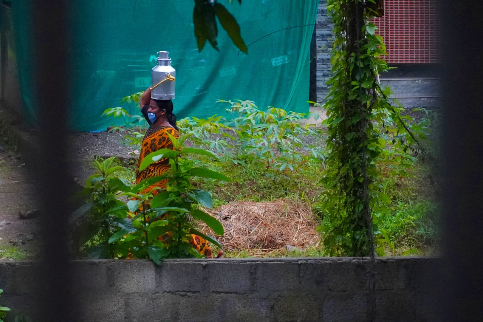 Lunch for students, teachers and volunteers was provided by the school. The first day we were able to serve ourselves, but we suspect that we served ourselves a bit too much of certain items and not enough rice. In southern India, rice itself is the meal, just about every meal, and other foods are just garnish. This is exactly the opposite, of course, of what we were accustomed to. For us, rice is a side dish that we might have once a month rather than three times a day. In any case, on most subsequent days the meal was dished out and laid out for us.