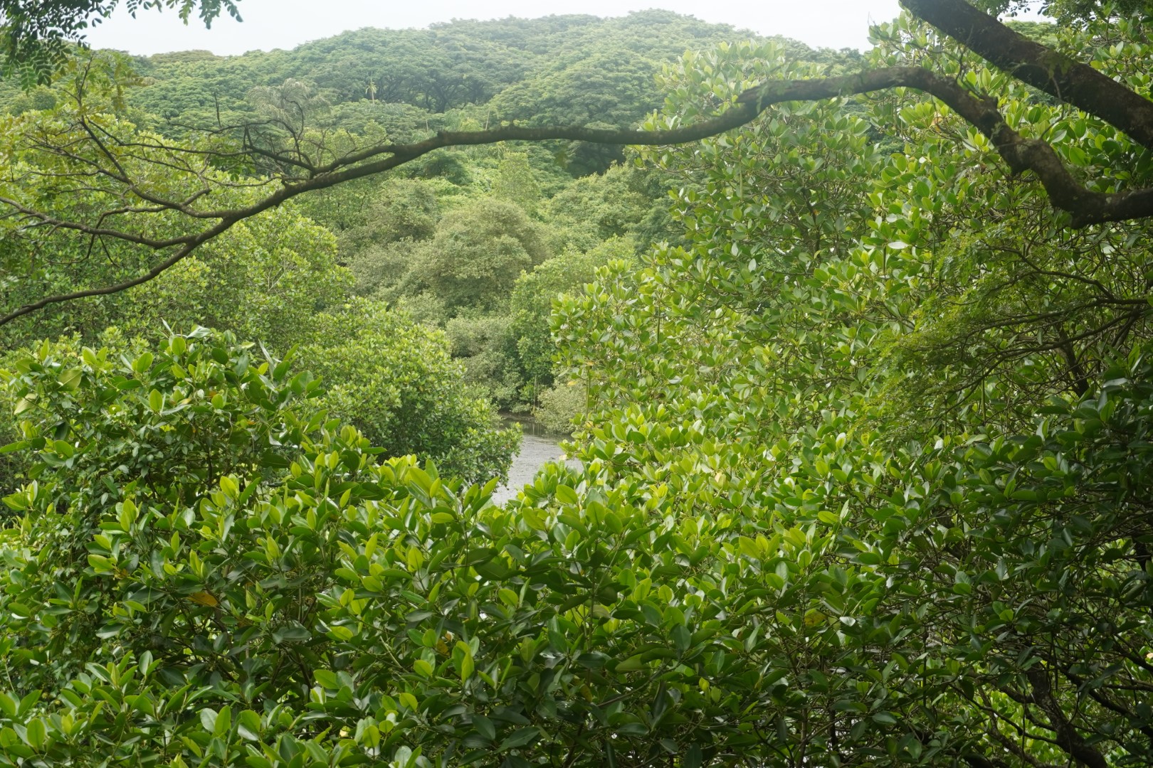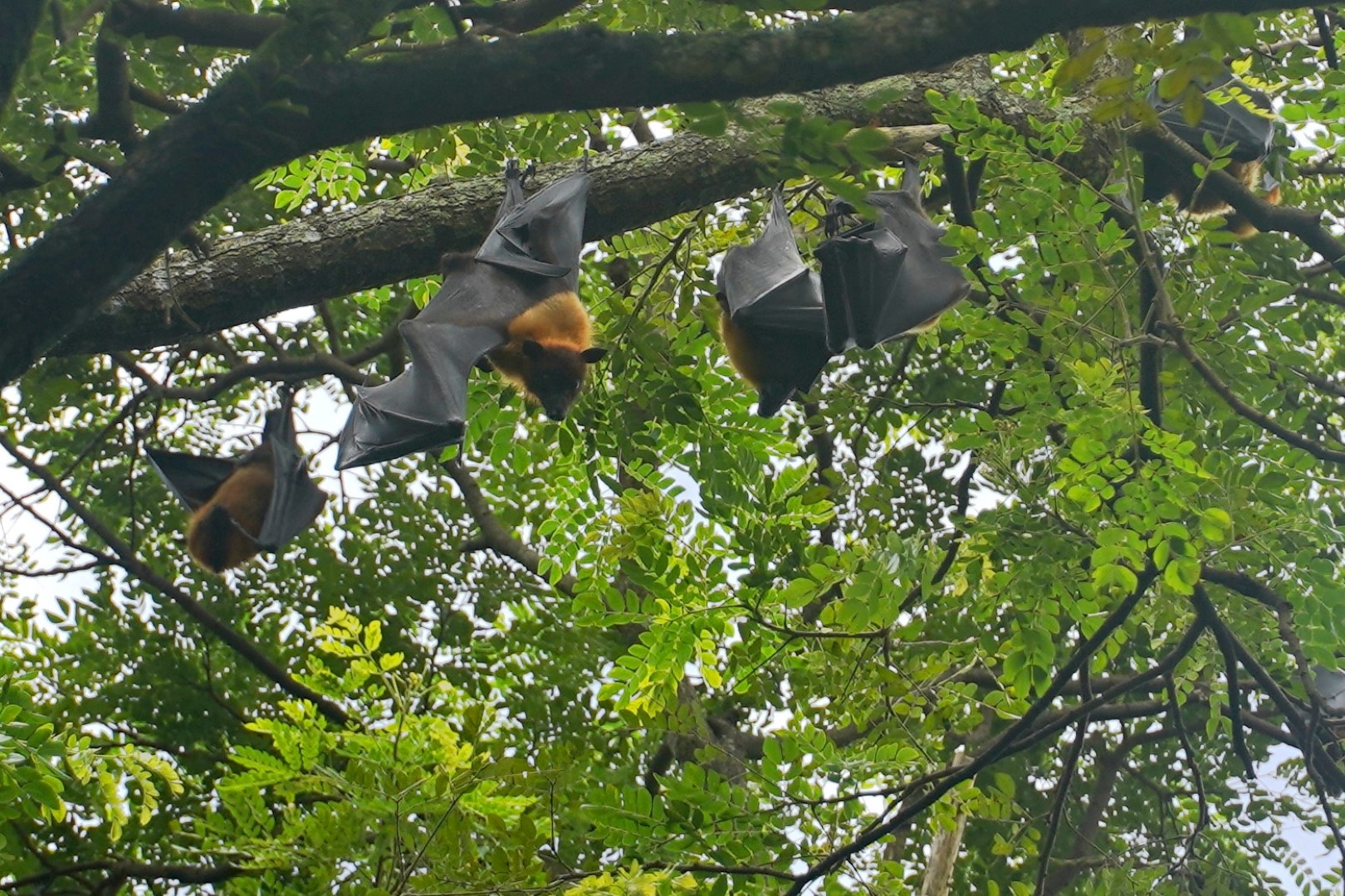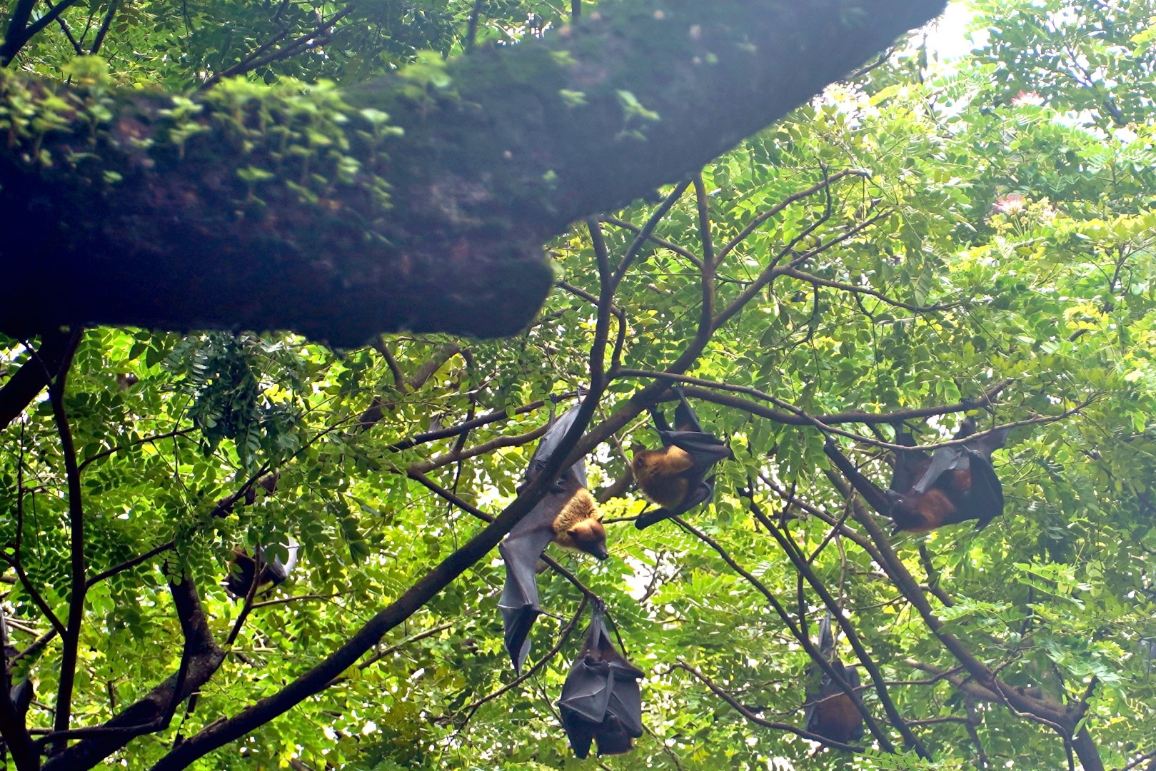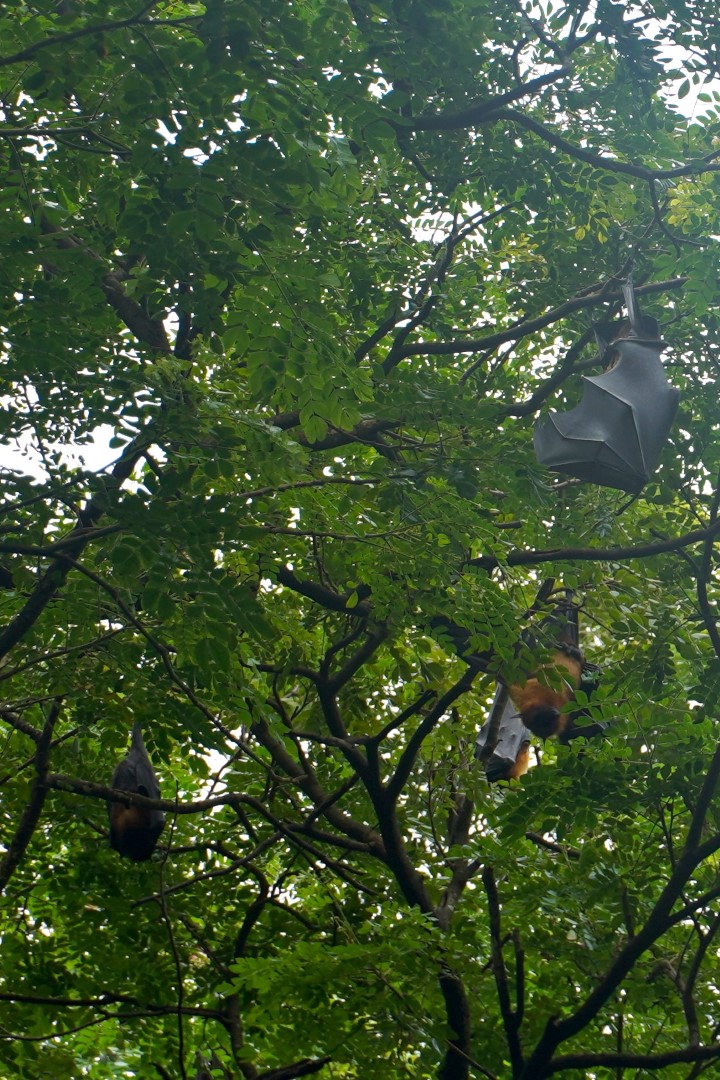 The most interesting life form we saw was a large, busy bee-like critter who kept flitting around us. At least the most interesting until we saw the bats. Dozens and dozens of bats, hanging from the trees. And huge bats they were too, not like the rat-sized mammals we normally see. And rather colorful bats too, with yellowish patches on them — apparently they are a variety known as painted bats. They made the expedition worth it. Now why couldn’t they have done their duty and devoured all those mosquitoes?