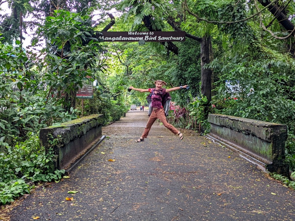On our first full day in Kochi, India, we decided to take a tour of the Mangalavanam Bird Sanctuary, which is, among other things, a sanctuary for migratory birds. And one of us has a passion for shooting birds — with a camera, of course — and combing through thousands of photos of them to find the most interesting ones to post on this blog. The sanctuary is a forested, swampy area full of mangroves that is also home to many other kinds of wildlife.