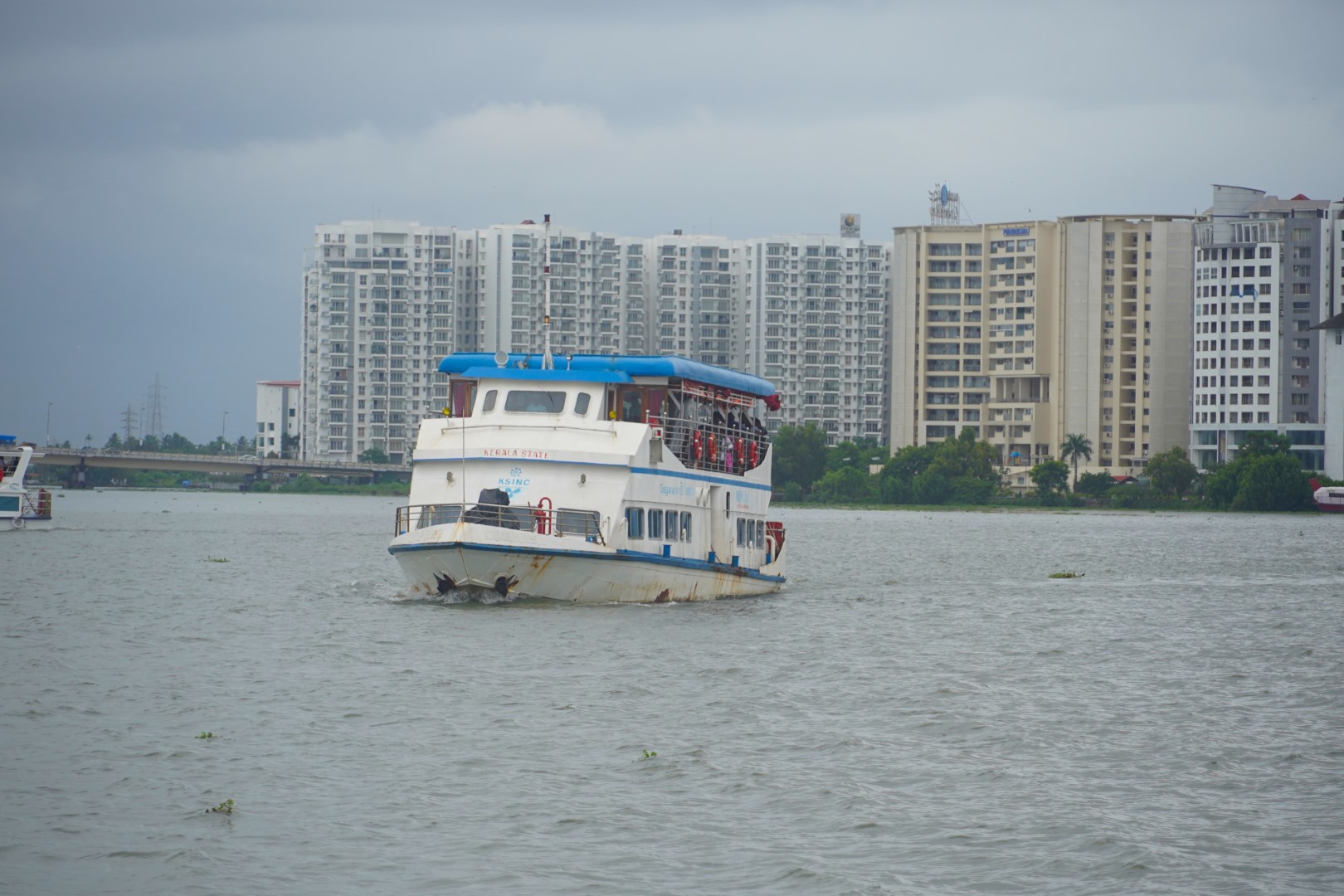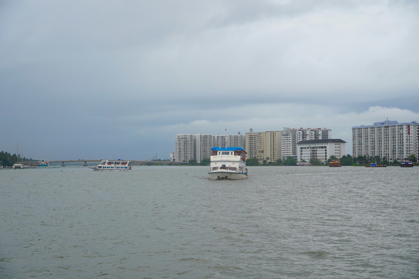 With so many boat tours being offered, we decided to spring for one — the tickets were quite cheap. So we took a little cruise out into the bay, and around the island where Bolgatty Palace is located. Built in 1744 by the Dutch to be a governor’s palace, the structure later became the local seat of British government, and is now a lavish resort.