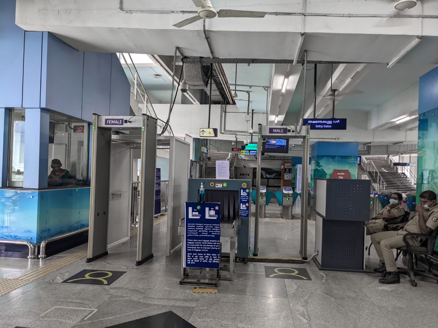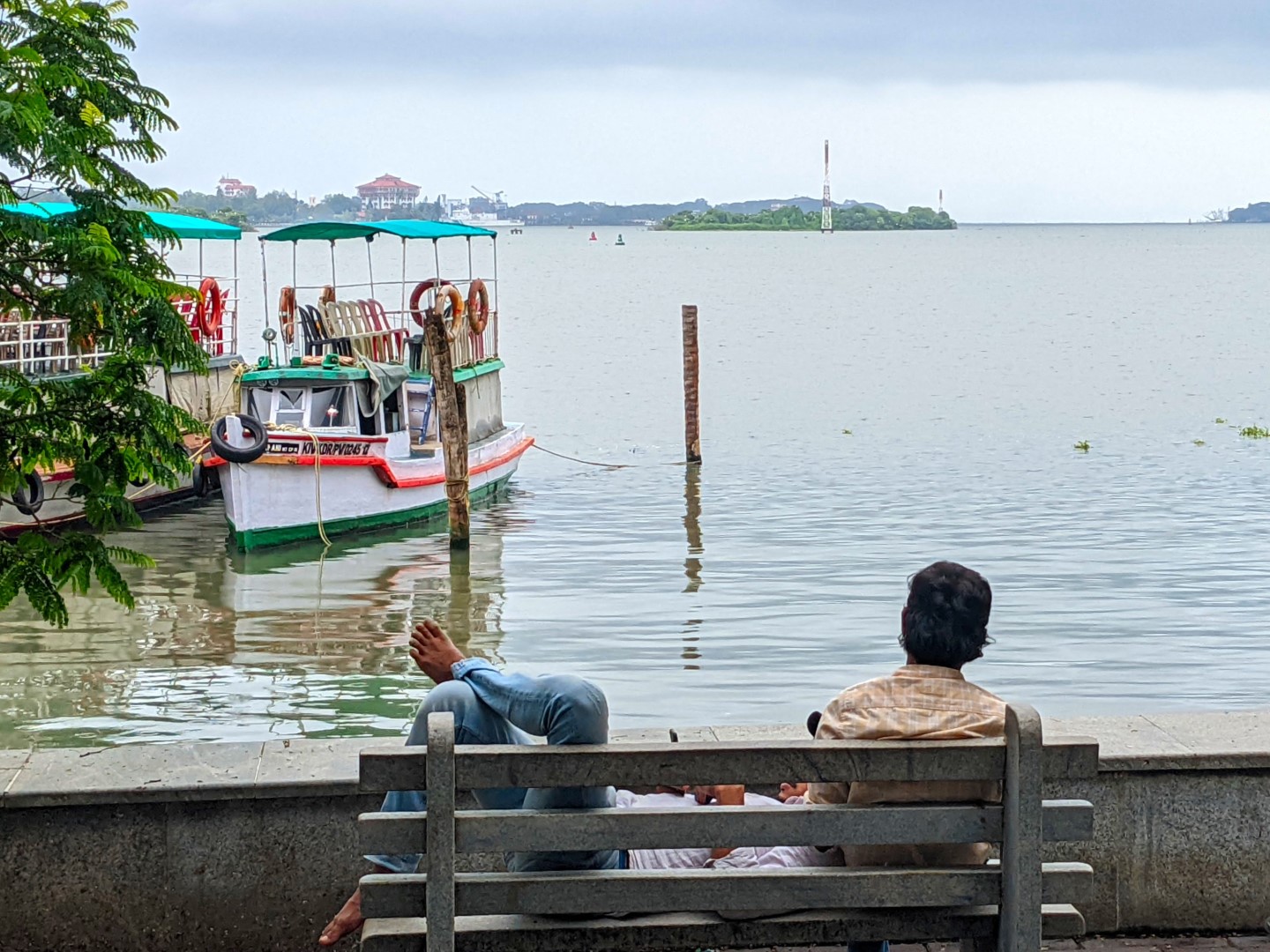 As already mentioned, the first part of the day was consumed by a trip to a bird sanctuary, where mosquitoes almost consumed us. In the afternoon, we elected to head down to the waterfront. Getting there required navigating Kochi’s extensive and impressive light rail system. One of the most memorable things about it, however, was that getting through the turnstiles required splitting up — there are separate entrances for men and women. (This wouldn’t be the last time we’d see such a thing.)