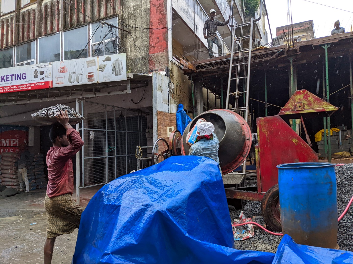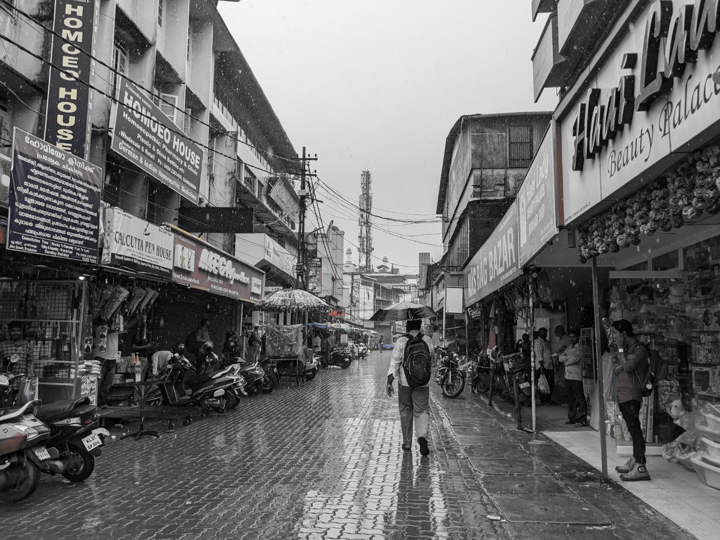 Finally we decided we’d have to take matters into our own hands. Dennis went out into the rain to scout out a coffee or tea shop where we could buy a cup to go. As it happened, there was one just around the corner, selling authentic Indian chai in those little cardboard cups that look like flower pots, for a measly 20 cents a cup. He purchased a couple of these, and then pondered how to get them home, as they were a bit hot to handle, and easily sloshed. The tea shop offered them on a platter, but we didn’t want to have to return it later. So they offered to deliver the cups of tea to our hotel. India boasts an astounding combination of incredibly low prices and incredibly high service.