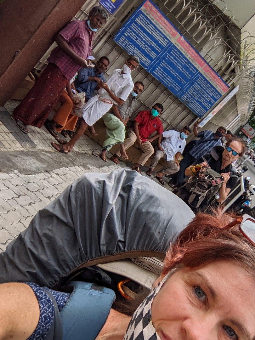 Then we were off to try to find a tuk-tuk. Except there was none to be found that wasn’t already full. Normally you can’t walk a block in India without at least one tuk-tuk driver asking if you need a ride. So we ended up walking all the way, a distance of several blocks in the heat and toting all our bags. This would leave us drenched in our own sweat, and needing a trip to the head for a sponge bath and change and clothing once we got aboard.