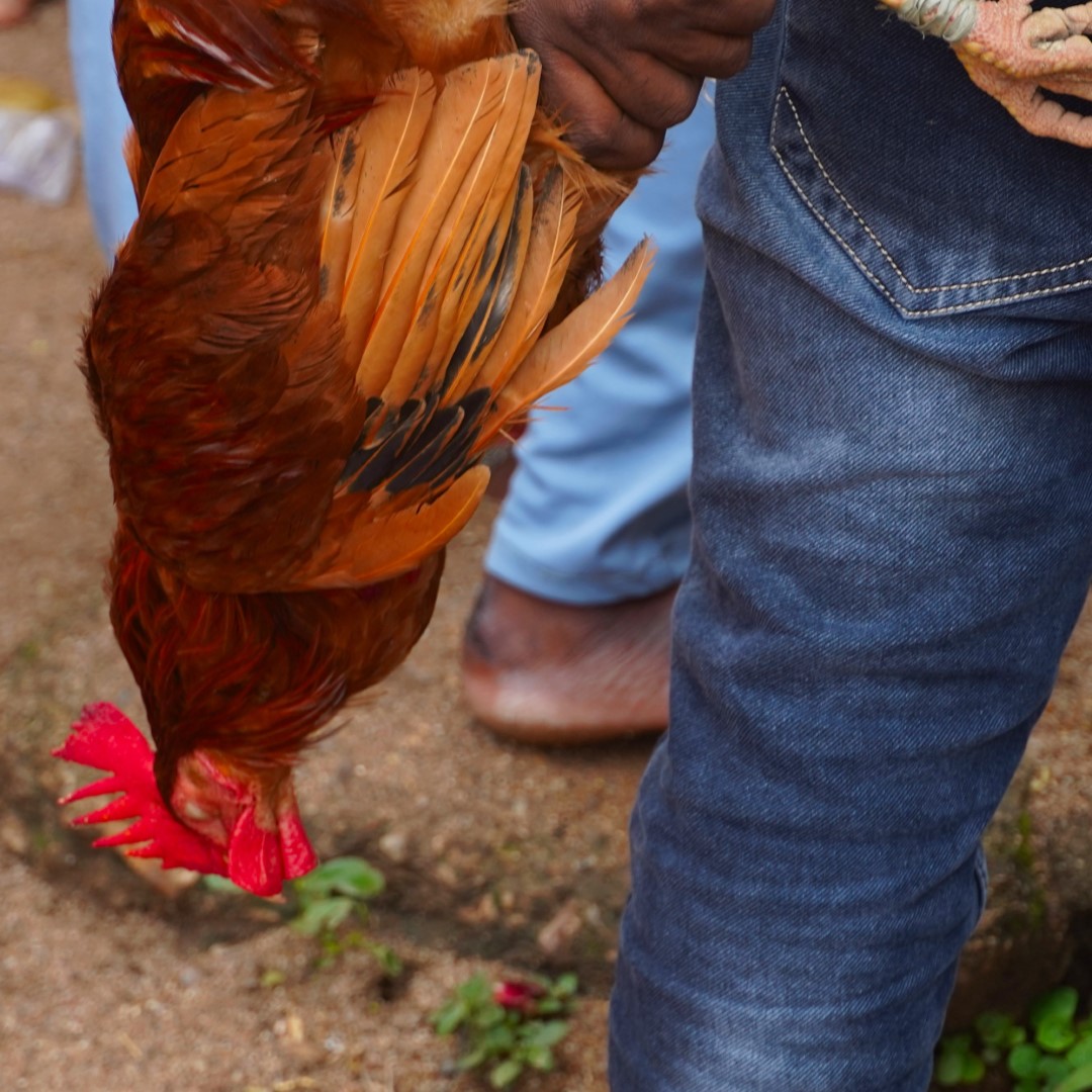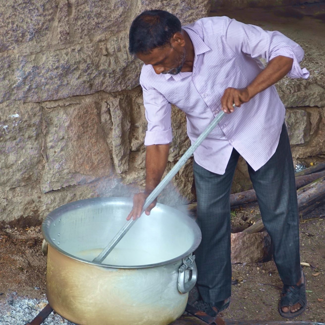 As we made our way toward the exit, we saw several groups of people preparing for a big feast that evening. Fires were blazing and cauldrons bubbling. And in a couple of places, poor little goats were being butchered. One fellow deftly yanked the hide off a hanging goat in one fluid motion, as if pulling off a coat. Evidently, vegetarianism was not as big a thing in these parts as it was down in Kerala.