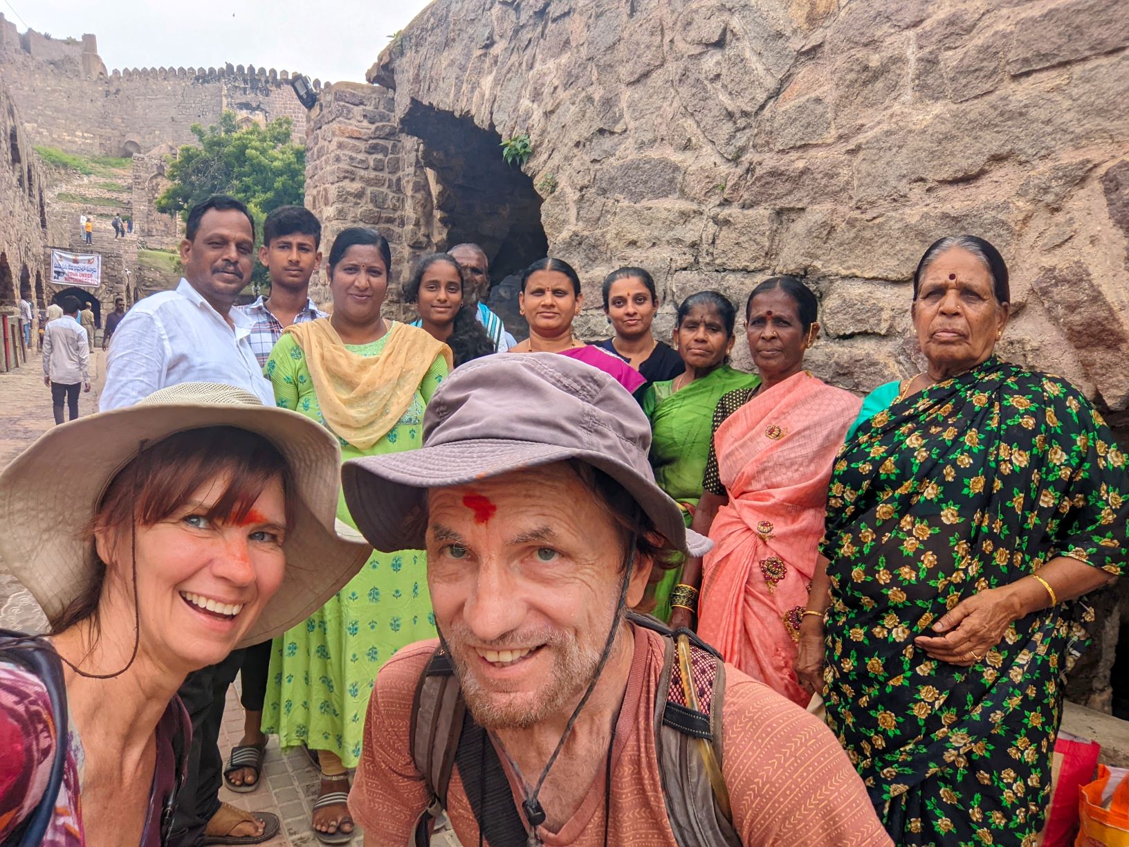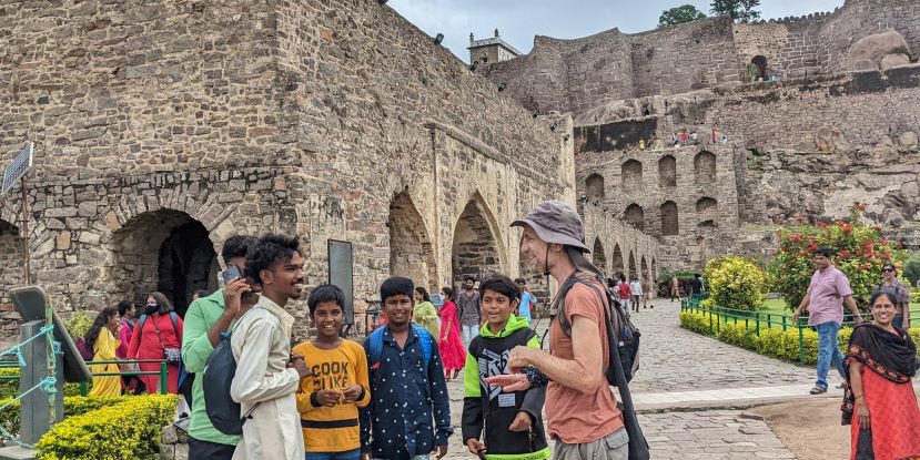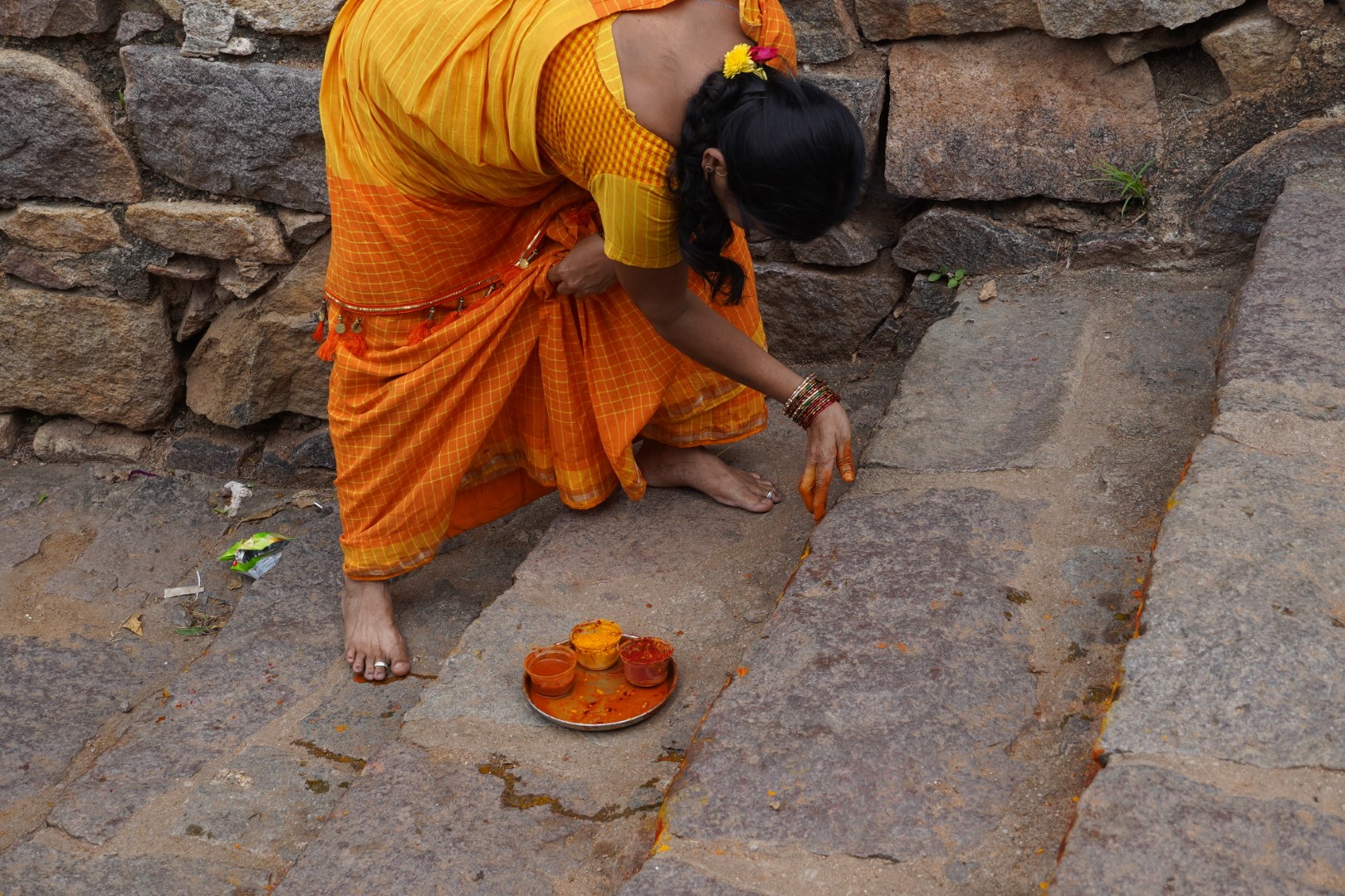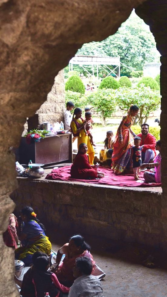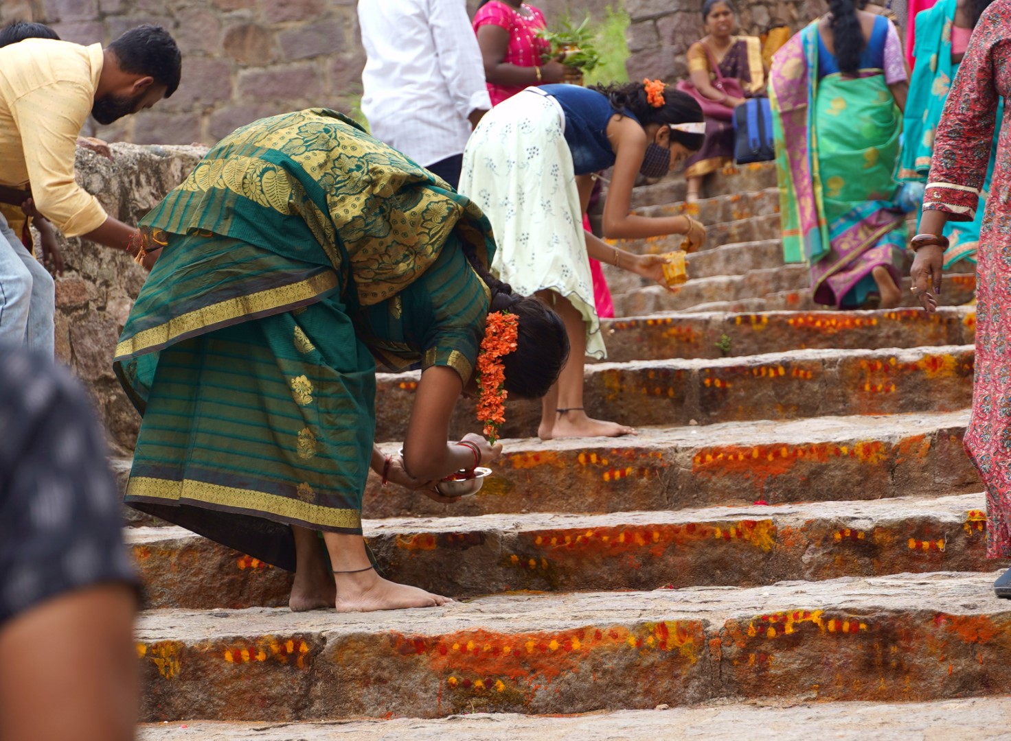 Having ascended to the summit of Golconda Fort — the temple at the top of the hill where the Hindu faithful seek the summit of spiritual bliss — we started making our way back down to the lower elevations. The descent was just as epic as the ascent, with a rather different set of sights and sounds.