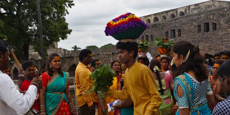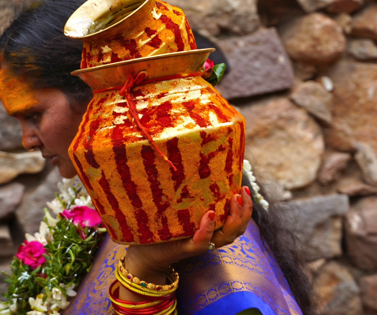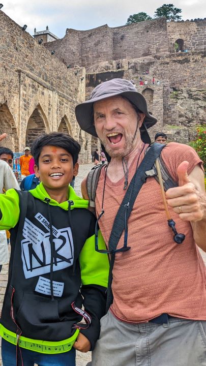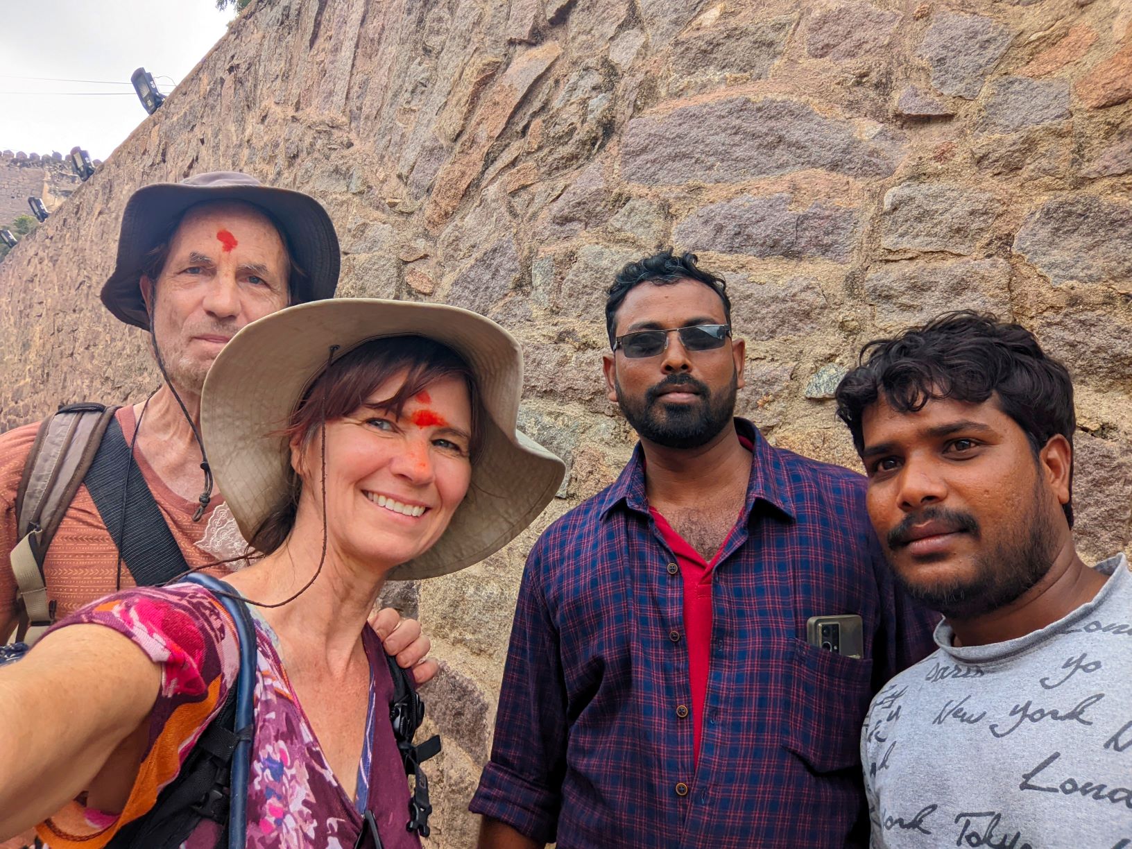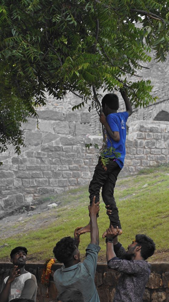 Having ascended to the summit of Golconda Fort — the temple at the top of the hill where the Hindu faithful seek the summit of spiritual bliss — we started making our way back down to the lower elevations. The descent was just as epic as the ascent, with a rather different set of sights and sounds.