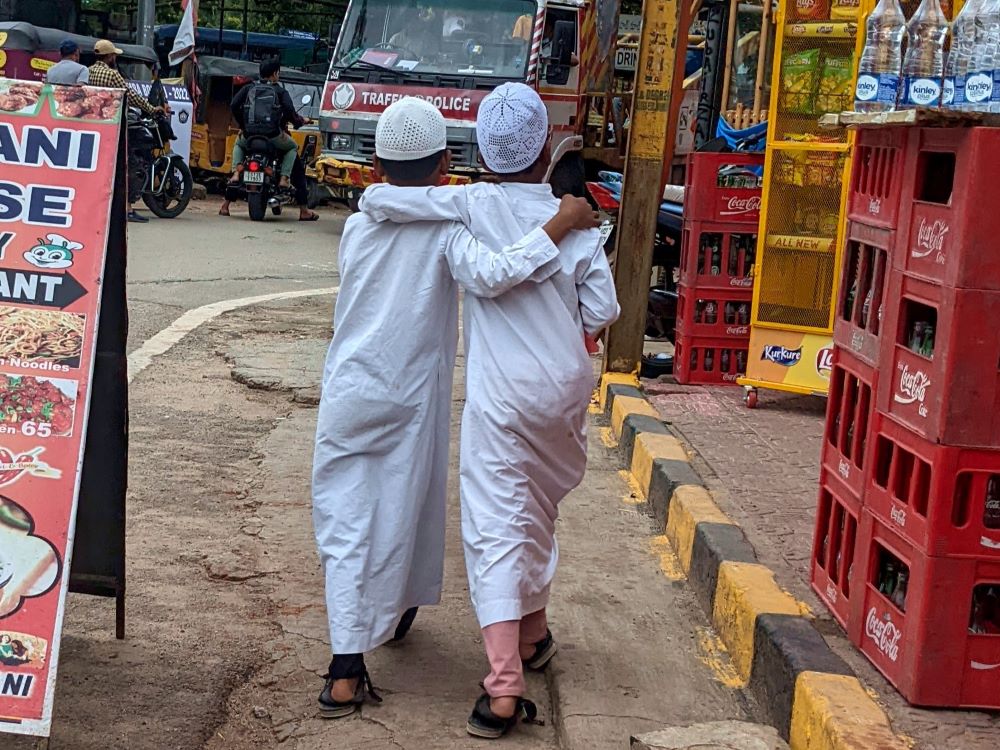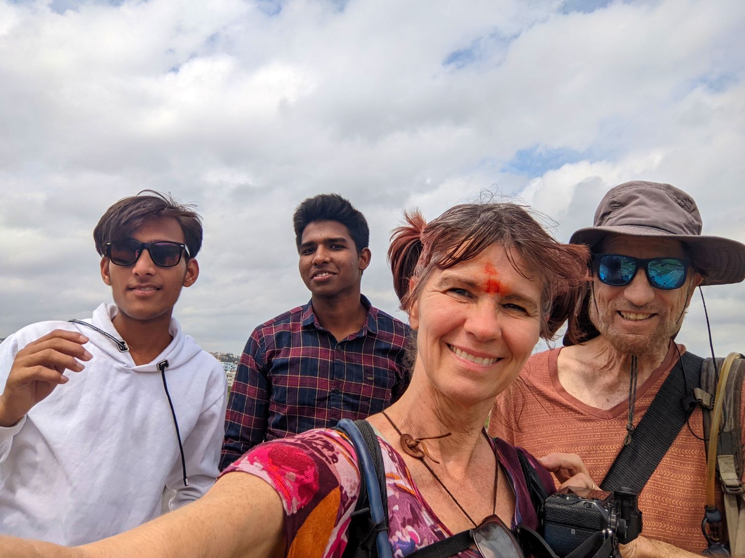 While we were exploring this, along came two young Indian fellows (one of whom, heaven help him, is an aspiring actor), and like many of the other locals we’ve encountered, they wanted to pose for photos with us. But we were uncertain as to exactly how they wanted to proceed. And they seemed quite confused themselves.