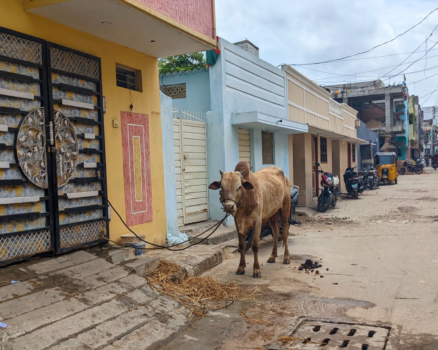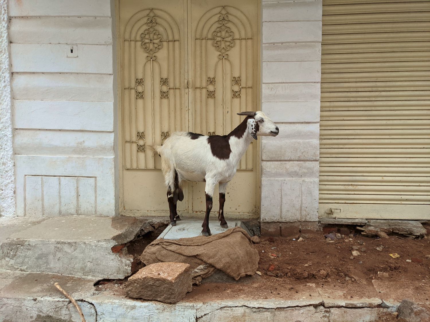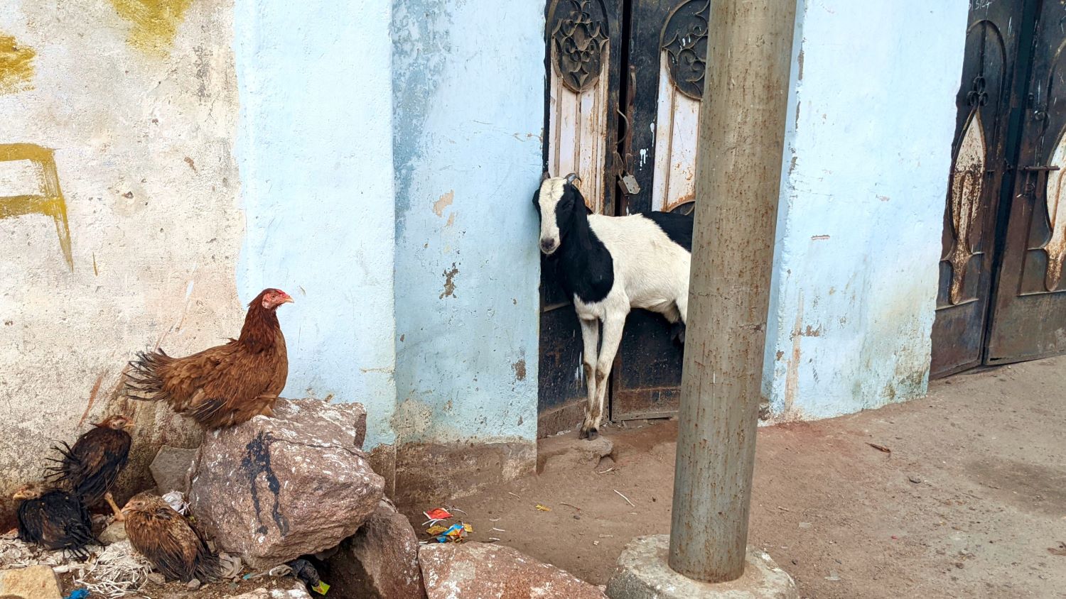Having paid our respects to the tree, we caught a tuk-tuk the rest of the way home, zig-zagging through more of the vibrant neighborhoods of Hyderabad. At one point, we passed by a moto (motorbike) on which a couple of goats were lounging. So of course, we snapped their photo. Later, a friend who’s spent a good amount of time in the country, saw the photo and commented that this was a “very India” sight.