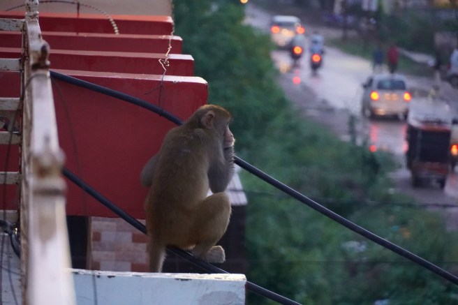 The weekend was rather low-key for us. We were both a bit lethargic, so we just stayed at home and rested and got caught up on chores. We said goodbye to our contact person, an affable young man who we’d known would be departing soon (having once been a student at the school, he was perhaps due for a change of scenery) and said hello to his replacement, an equally affable young woman who would continue to make certain we were well provided for. And then for the rest of the weekend, it was just us, the security guards, and the monkeys.
