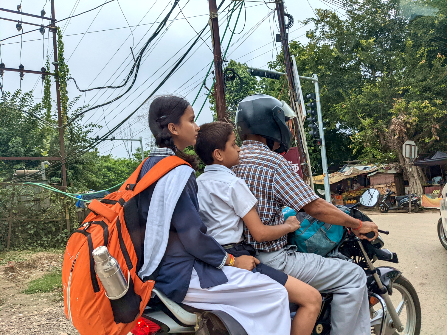Finally, when I was already late for my appointment, a couple of young men on a motorbike stopped to offer their two rupees worth. But all they could do was look at the map and scratch their heads like everyone else. But then a middle-age couple on another motorbike pulled up, and they did know where the dentist was. So they told me to follow them, and they were off.