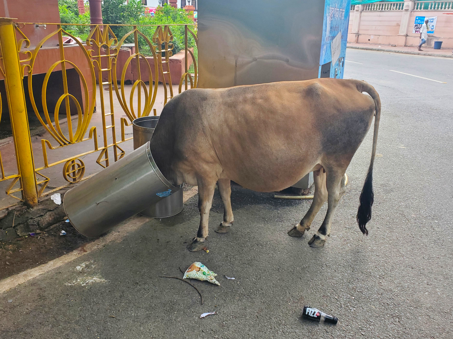 One order of business, of course, was to find a place to shop for groceries, and that was a challenge. Sure, there were plenty of stands to buy produce all over town. But for other things, like coffee, chocolate and oatmeal, we had to do some scouting. There was a “supermarket” called Reliance Mart about a mile away; but when we checked it out, it was not much bigger than a 7-11, and half the shelves were empty. Later, we explored the area in the other direction, toward the heart of town. Eventually, we happened upon a pretty decent option: a very small store, but its shelves were packed with needful things, including (wonder of wonders) the decaf coffee that Dennis thinks he can’t live without.