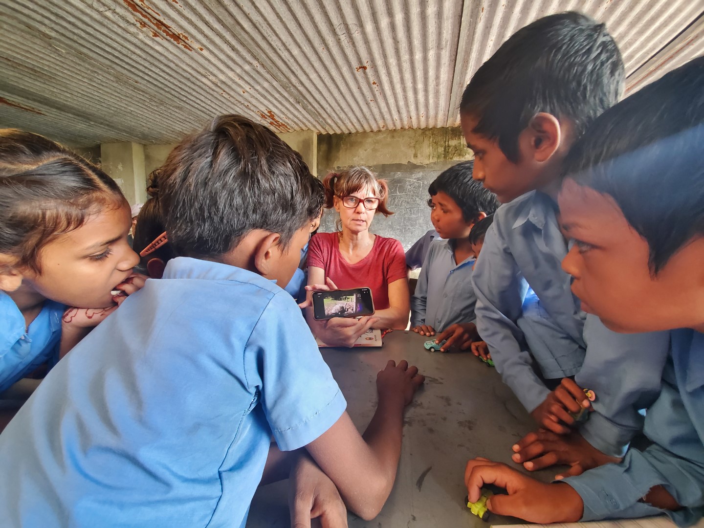 Now we certainly found this prospect intriguing, and we always welcome a chance to brighten the lives of children. But we really wondered how exactly we could be of service. We did not speak Hindi, and we would not be able to communicate with the children through sign language or gestures. And our usual schtick of performing stories would go out the window not only because of the language barrier, but because our performances really must be seen to be appreciated. So we were scratching our heads for a week trying to think of exactly what kind of presentation we could make.