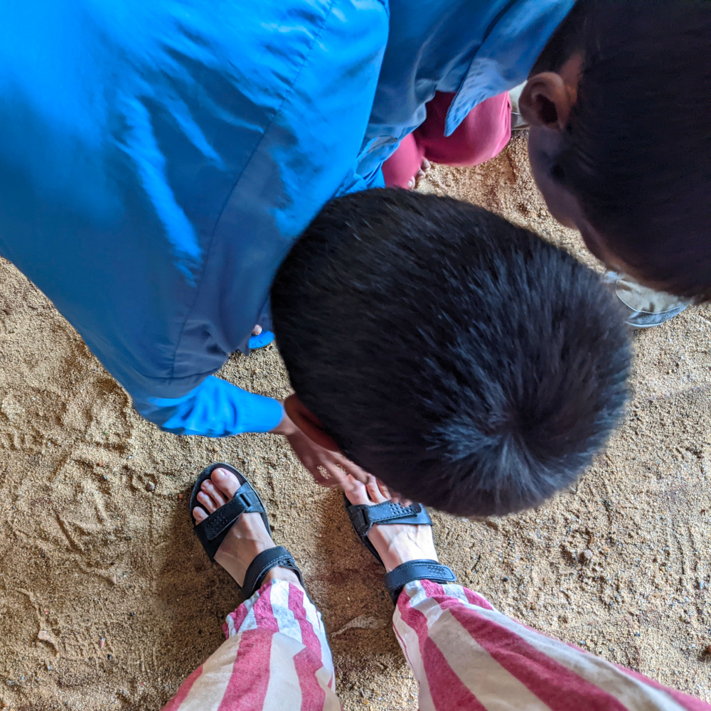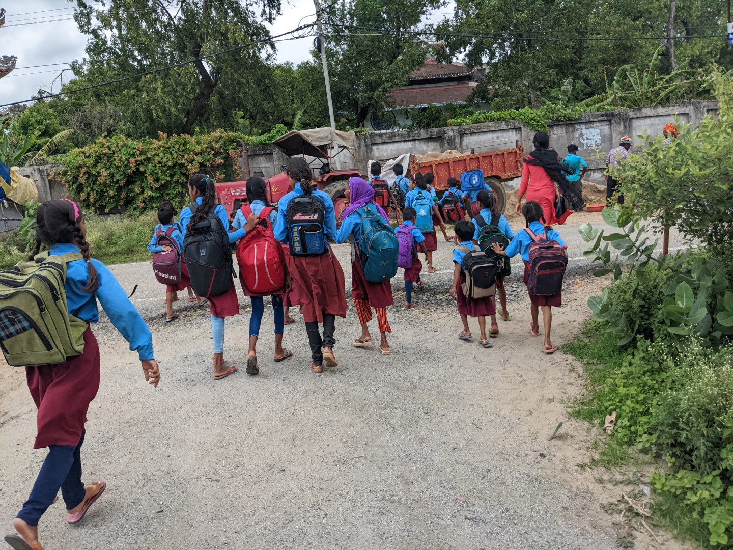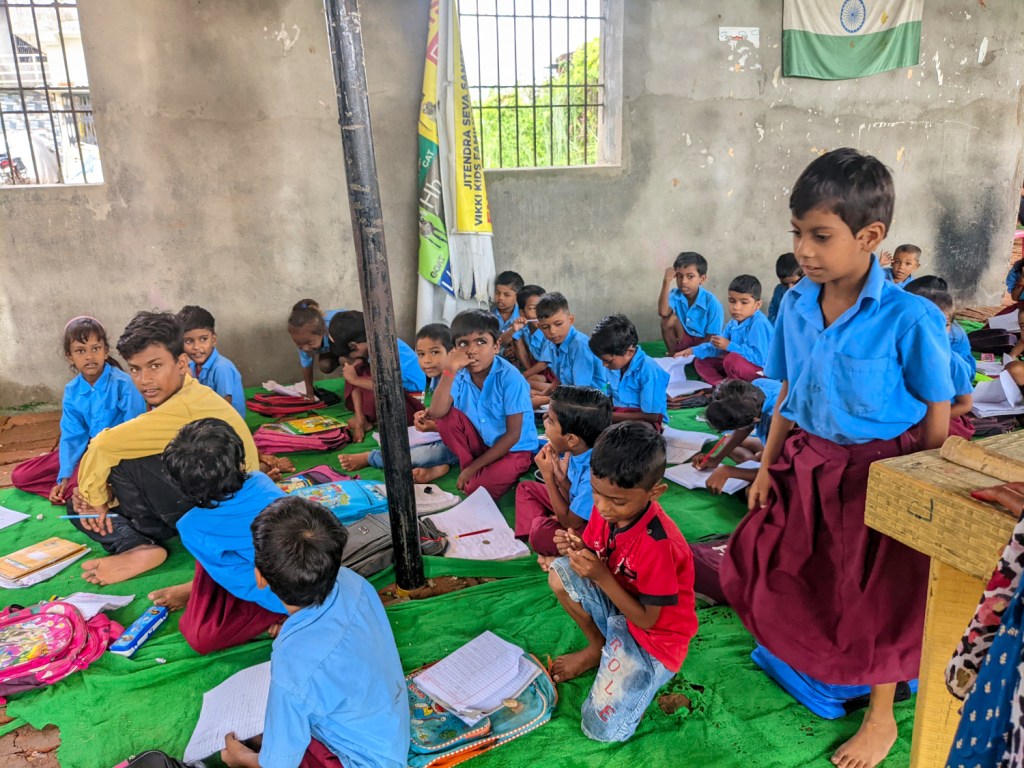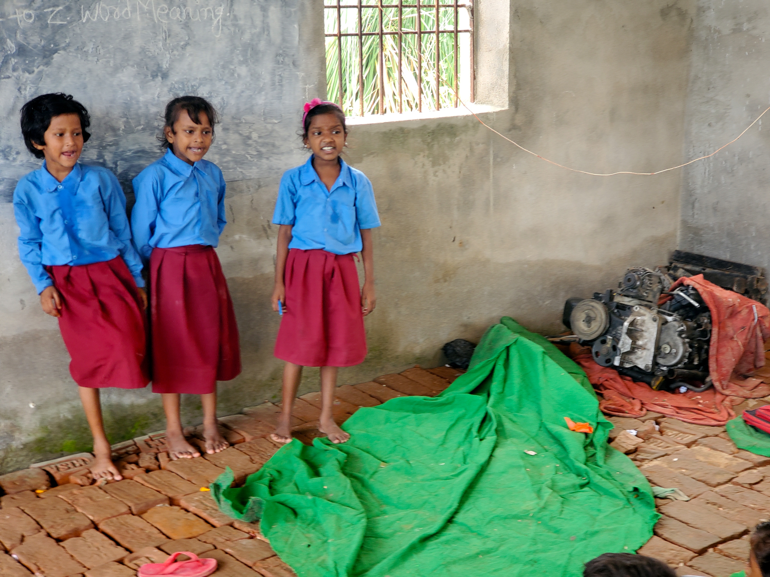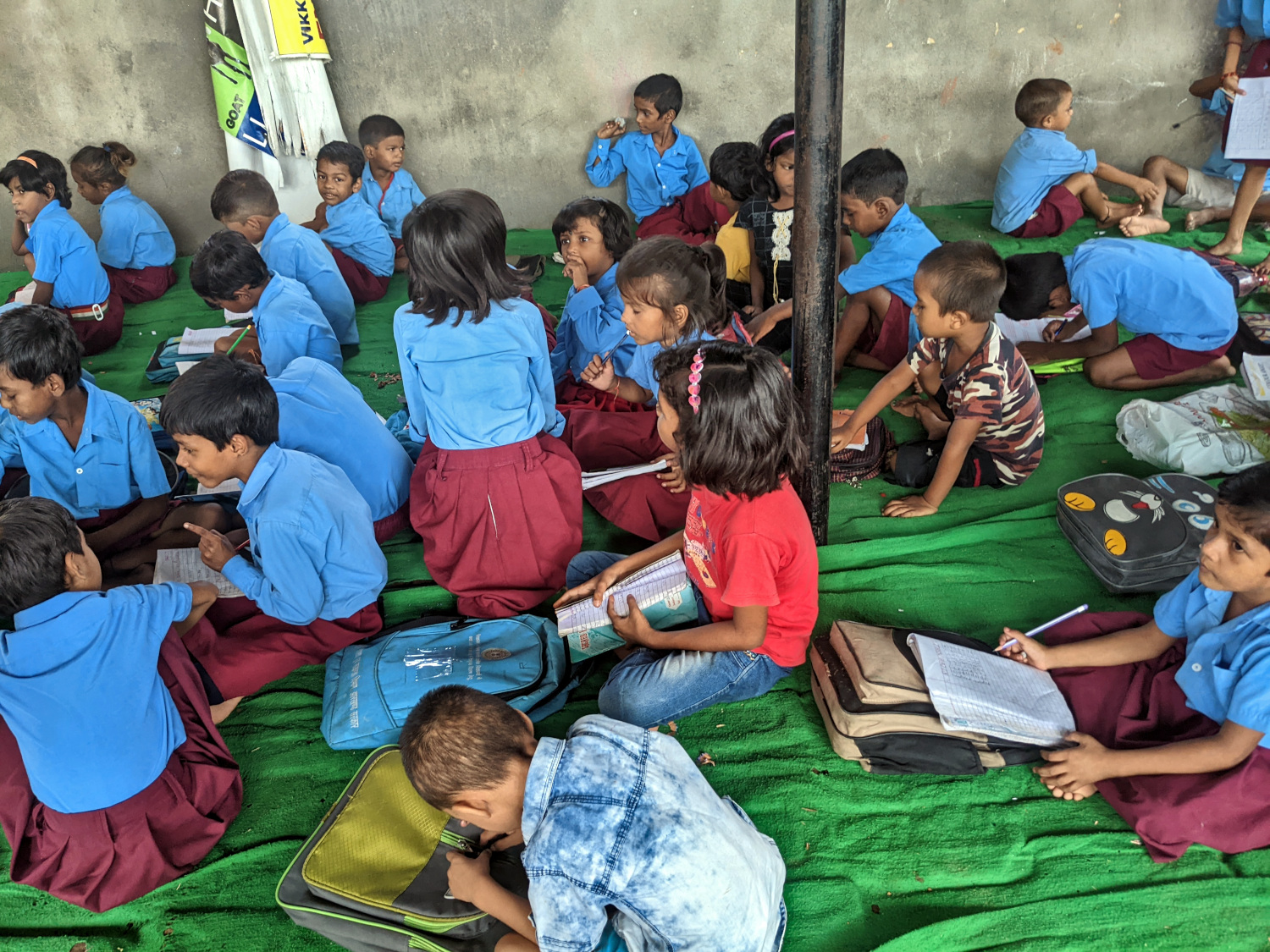 On Monday, August 8, we began our new volunteer teaching position through WorkAway at the school in Bodh Gaya, India. The director gave us a ride to school, even though it was really only a couple of blocks away. Thereafter, we’d be walking every day, with some of the students walking along with us as they would go to and from school. But perhaps on the first day he wanted us to make a grand entrance. In any case, the students who were already at school when we arrived each morning would greet us with the traditional Indian respectful gesture of touching our feet.