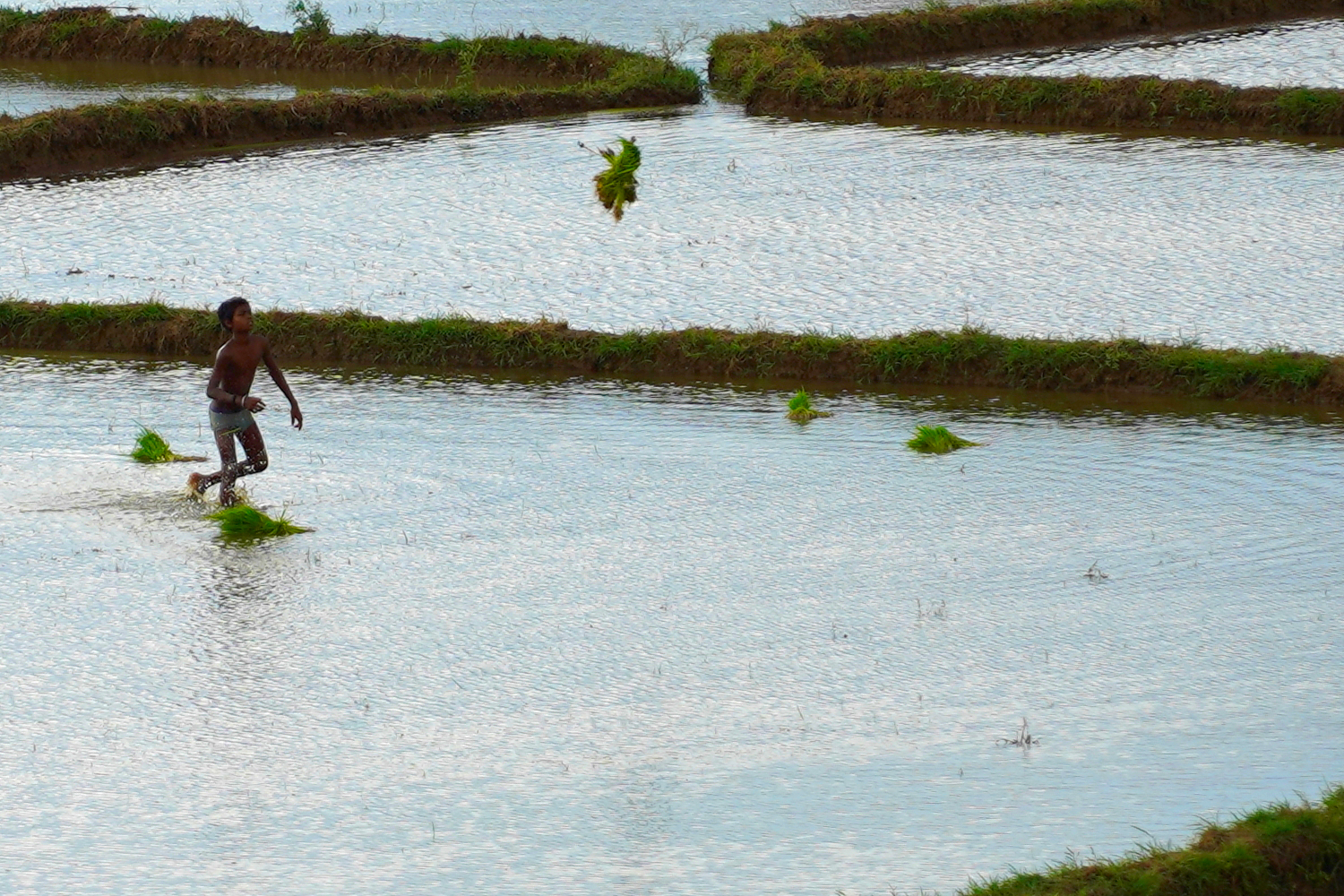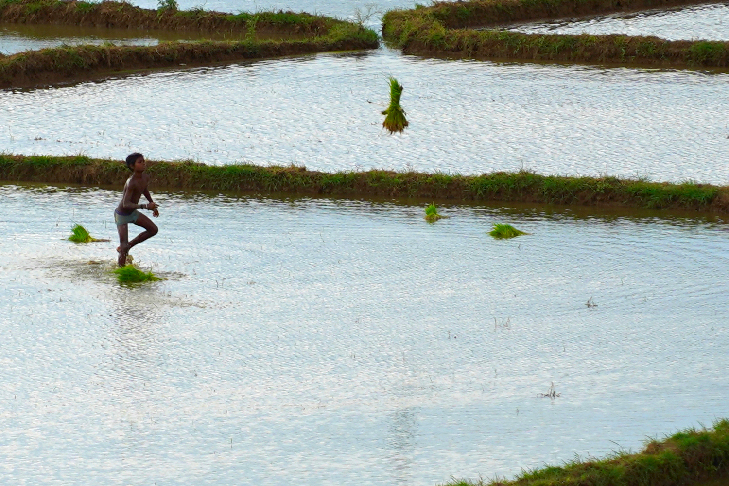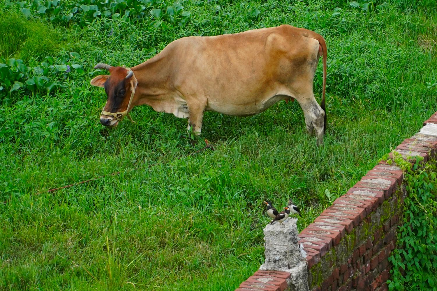 We could see a variety of exotic temples towering on the landscape. We could see workers in the rice fields next to us, the women wearing vibrant attire that looked as if it should be reserved for a wedding. (These workers would begin at the crack of dawn to race the heat.) We could see families ambling by or lounging in front of their homes. We’d see an occasional cow being led past. And of course quite a few unusual birds. All while being serenaded by a flute that seemed to come out of nowhere.