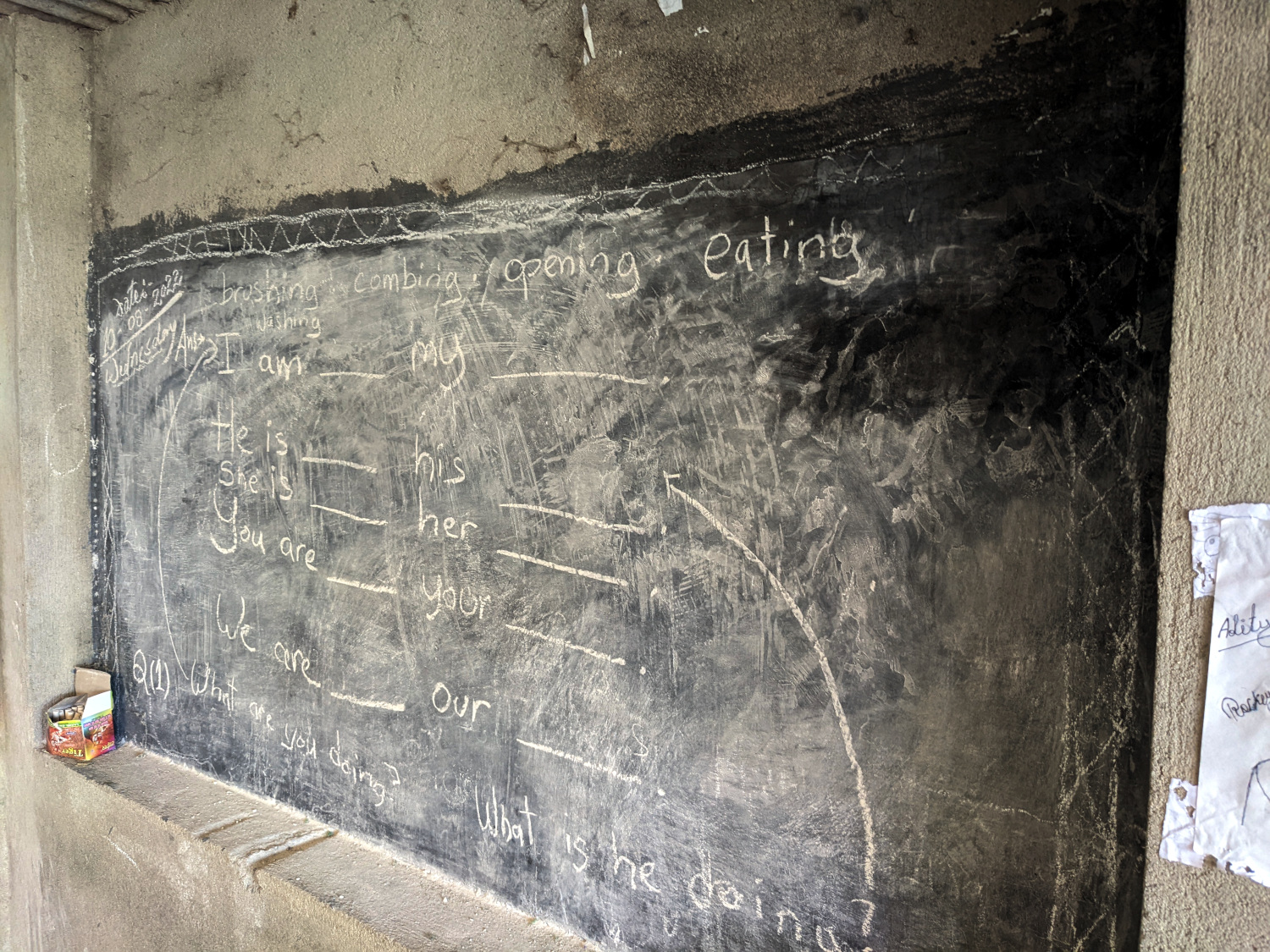 This open-air classroom was divided into two sections. In one, an older male teacher taught the older students, and in the other, a young female teacher taught the younger students. There were virtually no textbooks (some of the older students had workbooks), and the younger students wrote on chalk slates that had seen better days and the students in the upper grades used old, recycled notebooks. The teachers wrote with chalk on what had once been a chalkboard, but now was so worn down that it looked like just part of the wall.