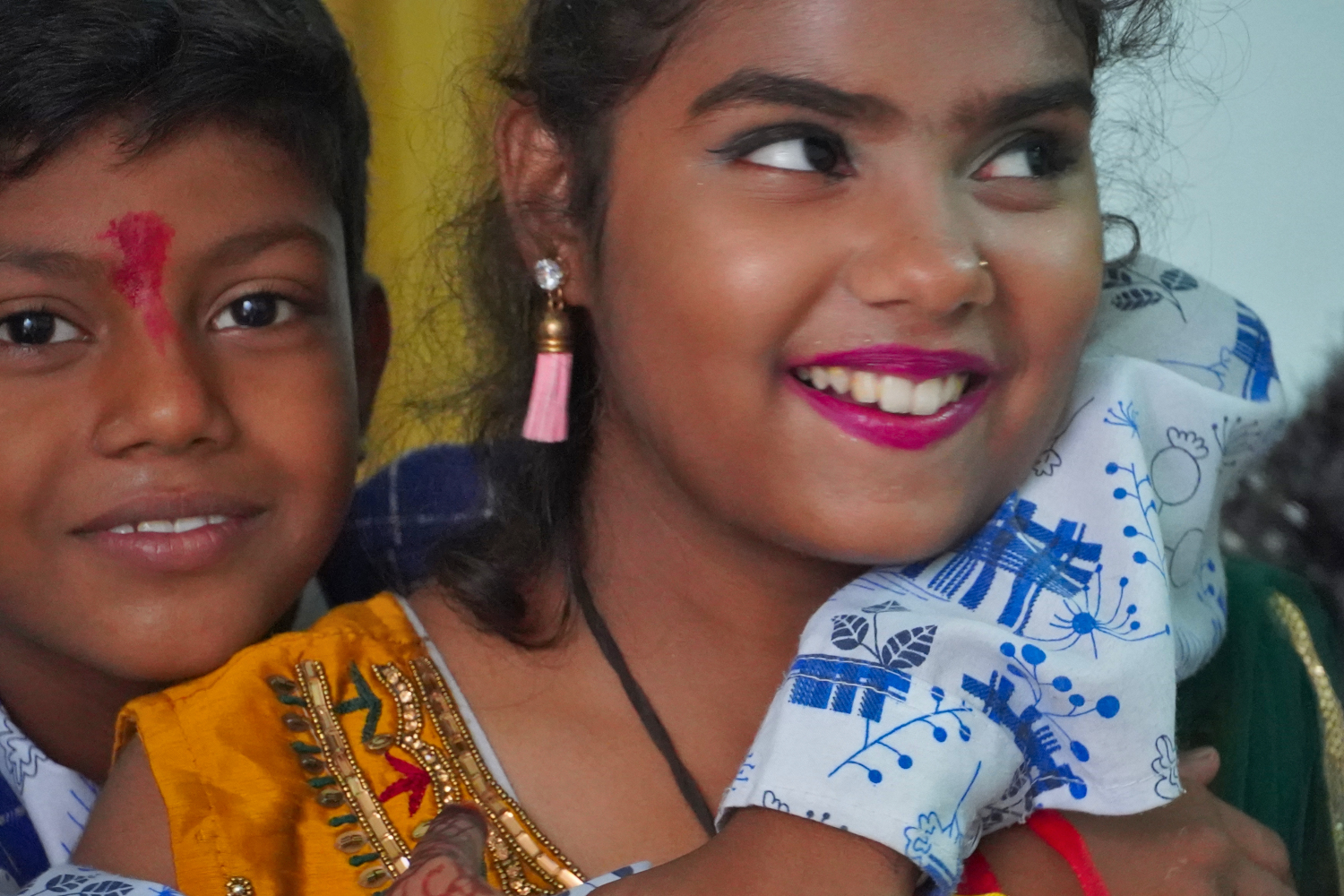 Our third day of volunteer teaching in Bodh Gaya was a short one; school was dismissed early because it was the first day of a two-day Hindu festival called Raksha Bandham, honoring the bond between brothers and sisters. Even though Bodh Gaya appears to be mostly Buddhist, the locals observe this occasion, on which sisters tie a bracelet onto the wrists of their brothers, and quite often the brothers give their sisters gifts. The sisters seem to get the better end of that deal.