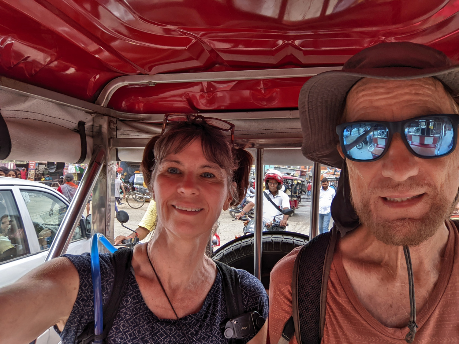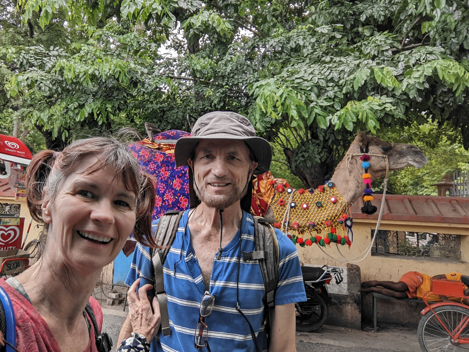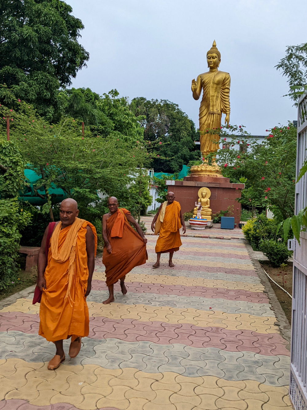 Late in the afternoon, Dennis walked along the main thoroughfare in town to our favorite local produce stand. Along the way, he was approached by a young man who introduced himself and offered to buy him a cup of tea. Nothing unusual about this; Indians tend to be very friendly and hospitable, often stopping us on the street to take a selfie with us, and it’s considered almost mandatory for them to buy or serve tea to guests and even strangers they meet. What Dennis feared was that this guy was trying to hustle him in some way or other, which has been known to happen in Bodh Gaya. But it turned out that the fellow was perfectly sincere and genuine and just wanted to chat with an American.