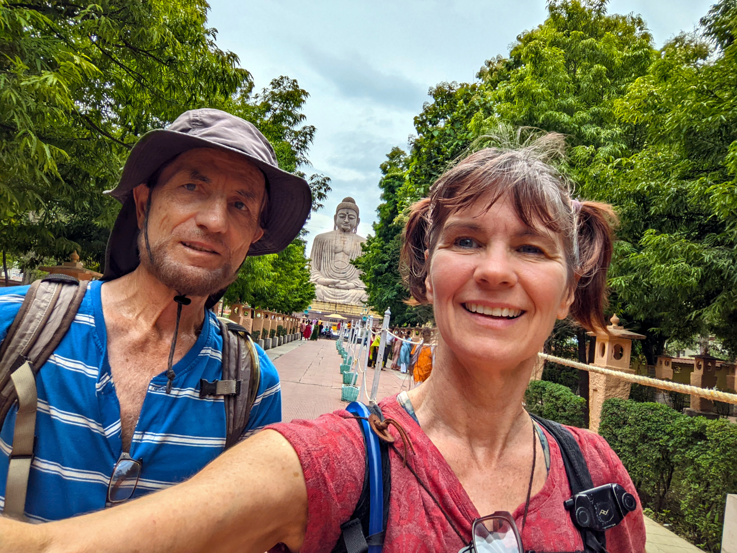 In the afternoon we walked through town, up to the famous Giant Buddha, which stands 64 feet high, even though he’s sitting down. We didn’t go inside it, which would have required investing some time and money, but the view of it is impressive from the street. At least in the front, where all the monks and tourists and vendors mingle. In the rear, some people thought they had found an appropriate place to dump garbage. The contrast was stark and ironic, and interesting enough for Dennis to make notes about for a future poem.