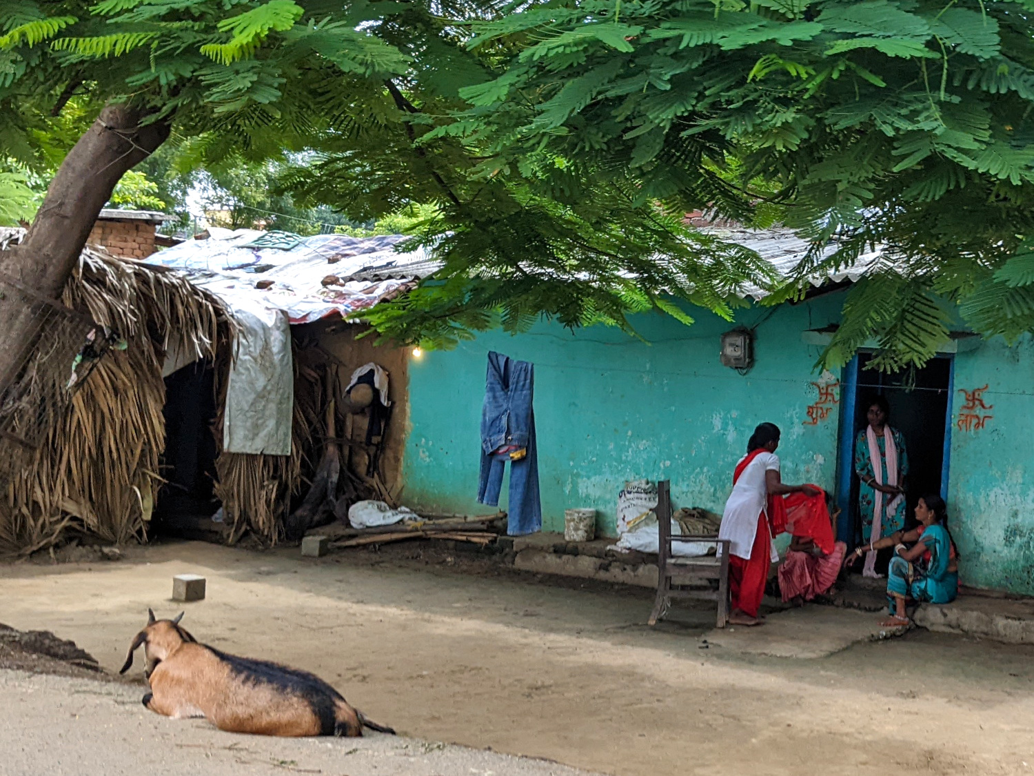 Back at home, we were invited to partake of a festive feast mounted by our host family for a number of relatives who came dressed in their finery, for the occasion of Raksha Bandham; the food, as usual in this country, was outstanding. As usual, some of the guests were amazed to learn that we were American, and as usual we were amazed that they were amazed. There were quite a few kids there, and, whether due to cultural differences or just the typical rambunctiousness of youngsters everywhere in the world, they had no qualms about barging into our room unannounced; so we had to take measures to prevent that from happening.
