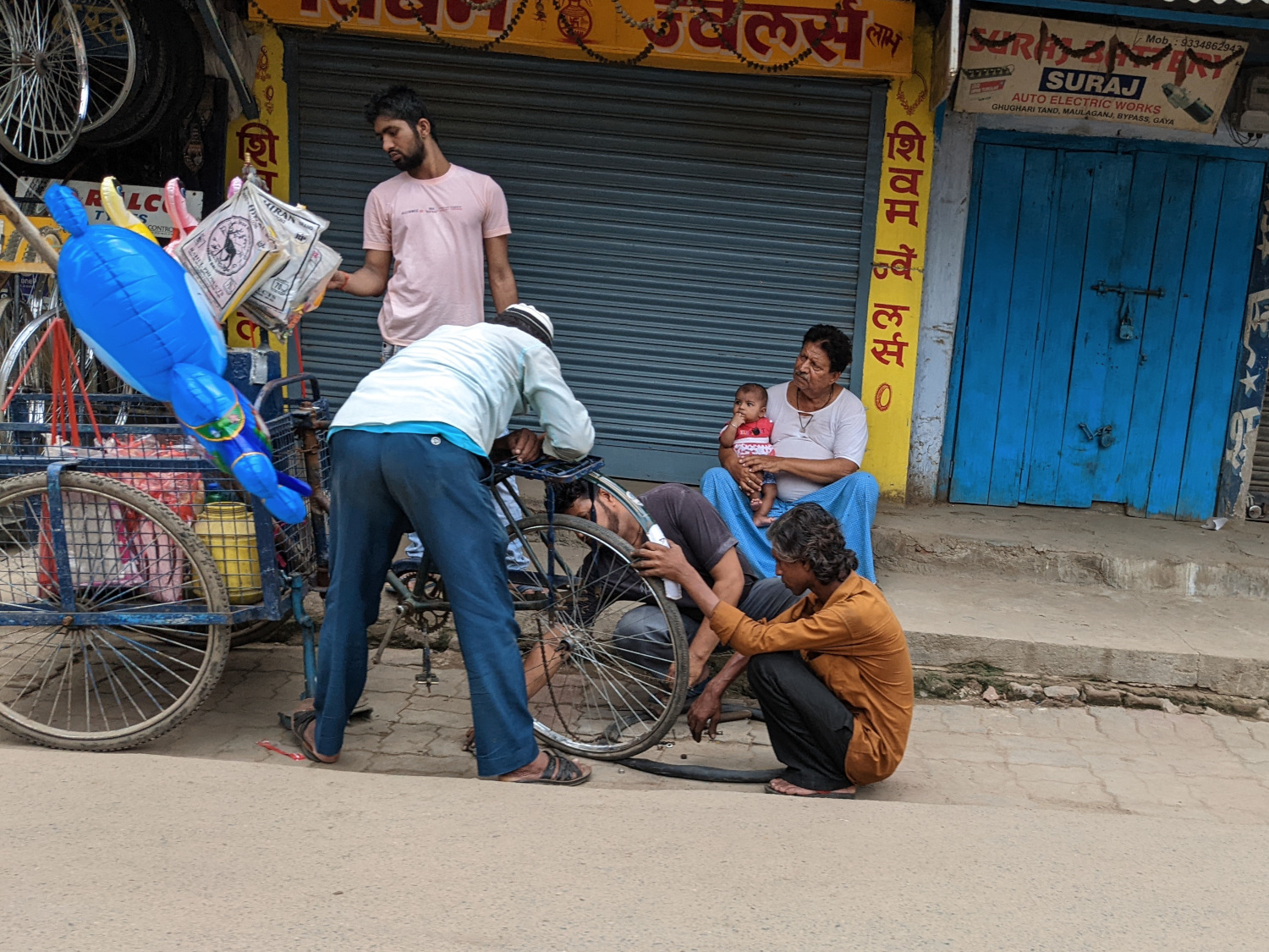 The next day we caught a tuk-tuk into the city of Gaya in hopes of patronizing an actual supermarket and picking up a few things we’d been unable to find at the local markets. We’d searched online and found an outlet called Big Bazaar; it looked like something on the order of a Wal-Mart Supercenter, perhaps minus the cheap stuff from China. But when we arrived at the site, we found that the market was permanently closed. Not only that, but the building was gutted, and a construction crew was preparing the site for the installation of another business.